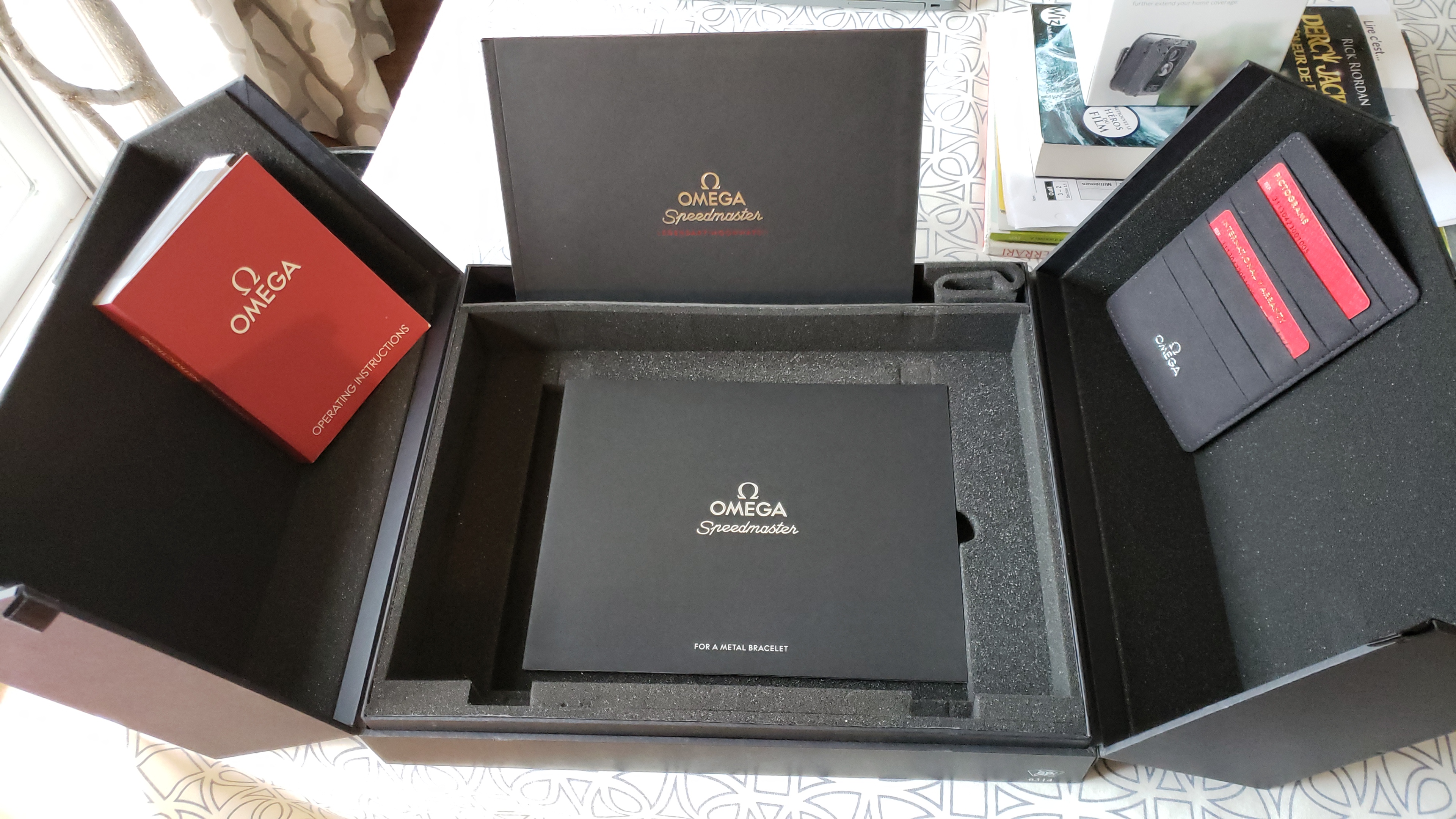 ·New (used) speedy. I've had many watches but never a speedmaster professional. Loving this watch so far. Even though it's not a chronometer, it runs well within cosc specs. Love the whole boxset it comes in. What year would this watch be with a serial number 78xxxxxx? Bought myself a another book "a moon watch story" to add to the set.