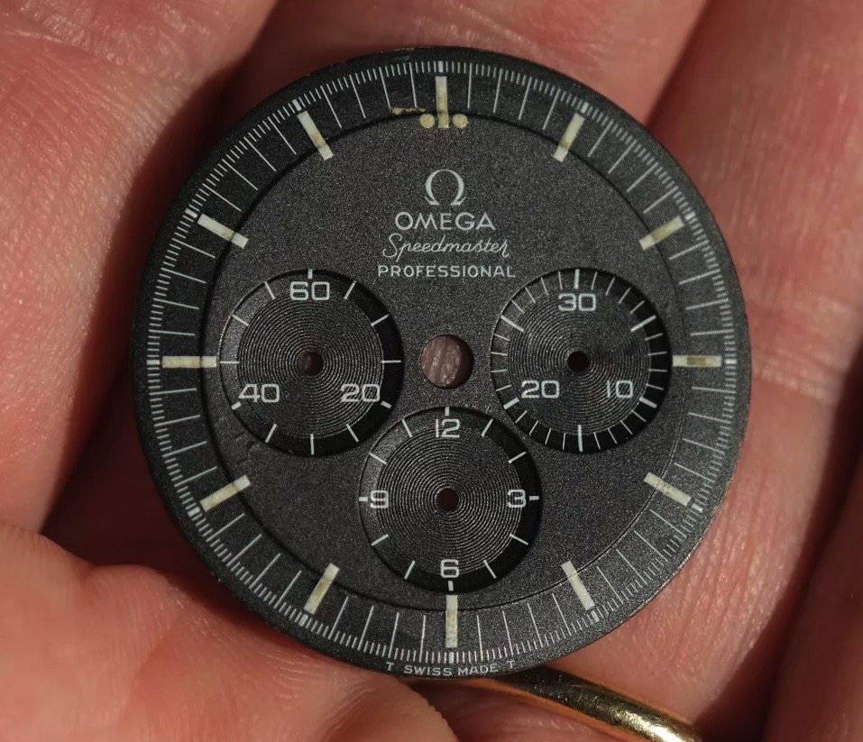 I have an Omega "transitional" Speedmaster (145.022-68ST). I had originally considered selling the watch but have decided to keep it. The original dial simply looks horrible (due to salt water damage from my sailing mishap) I described earlier in this thread), as shown here: