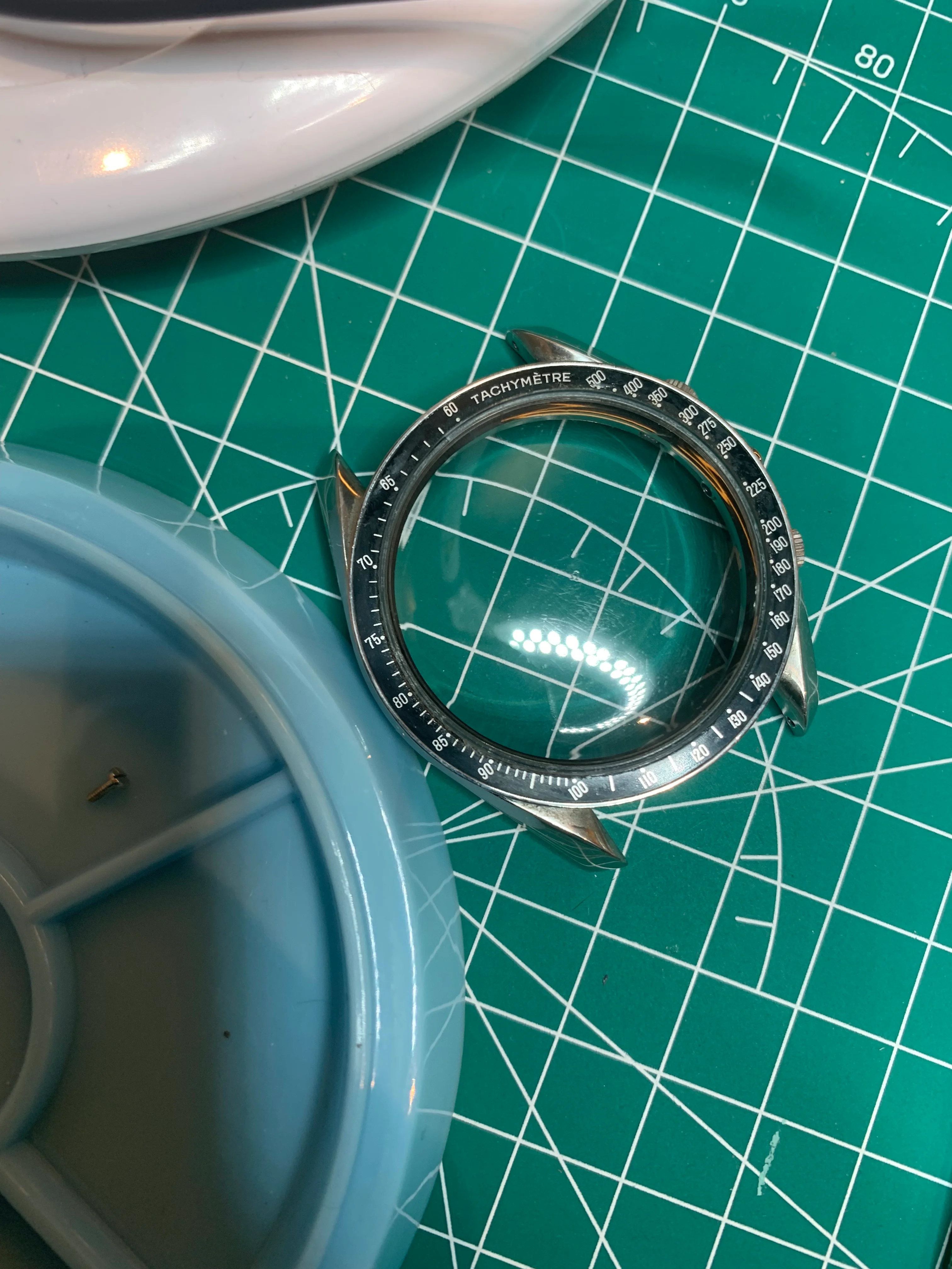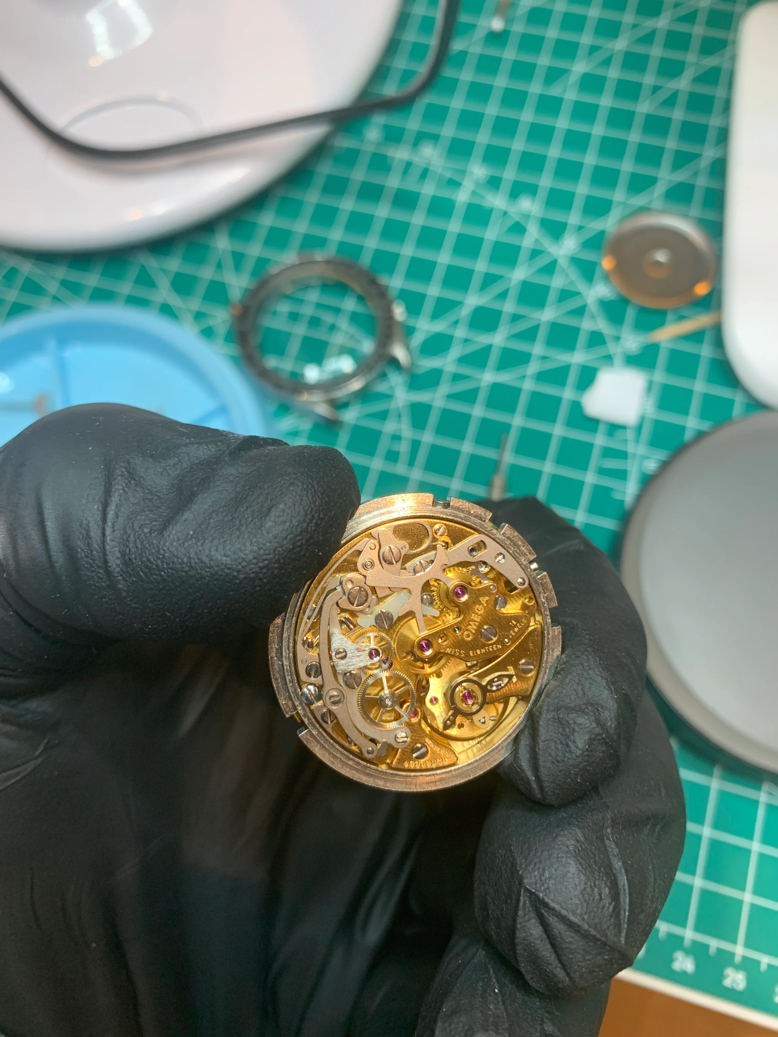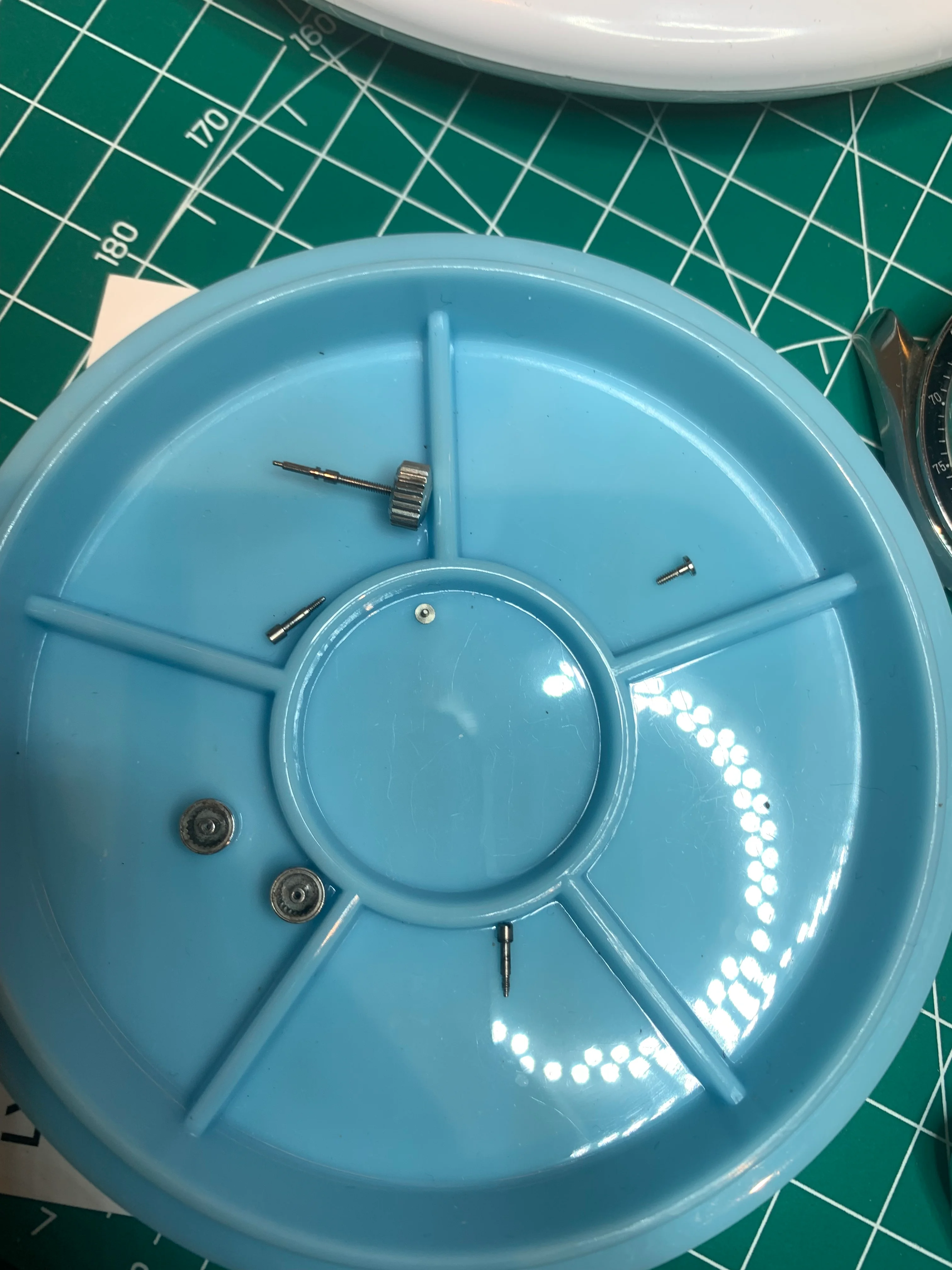 I have a 1996 Speedmaster Professional with 861 movement. I bought it nealry 18 months ago and it was meant to have been serviced. I wear it every day because i love it and I was doing some plumbing work and some water fell on me about 250 ml or enough water to fill in a S-pipe. We are not talking about a lot of water and I certainly did not immerse the watch in any water. I was working in a damp environment and I noticed that my speedmaster had begun to fog up and would continue to fog up over the next couple of days. I put the watch in a bed of rice face down and I opened the crown. I decided to open the case back and remove the dial.