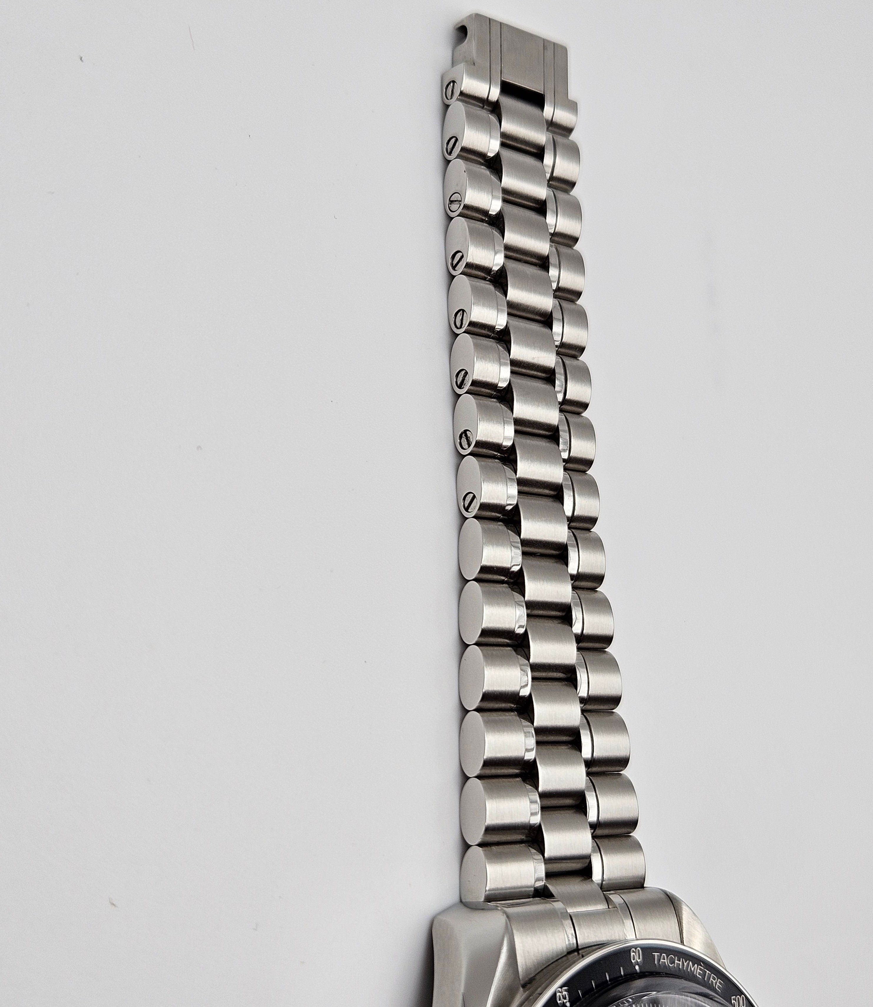 Bracelet: Bracelet comes fully linked and will fit up to an 8" wrist. This has the pre-2023 clasp, so micro adjust is achieved with a pin tool and not the under clasp button.
