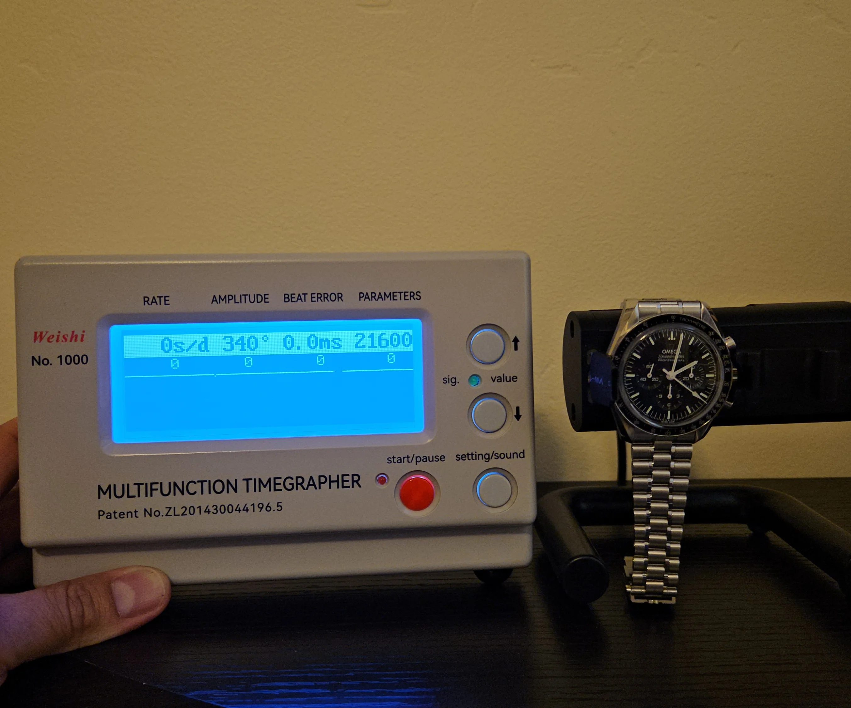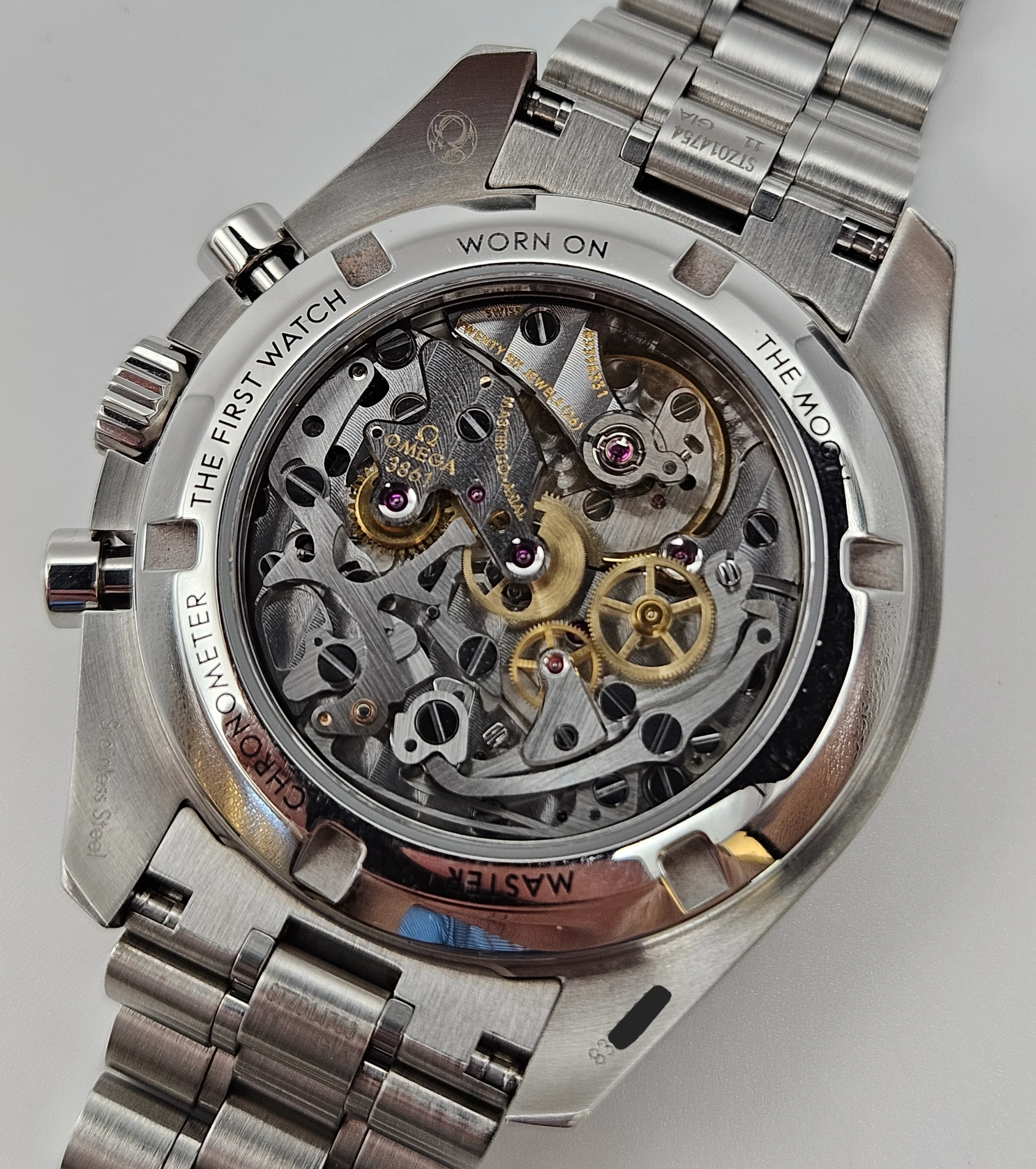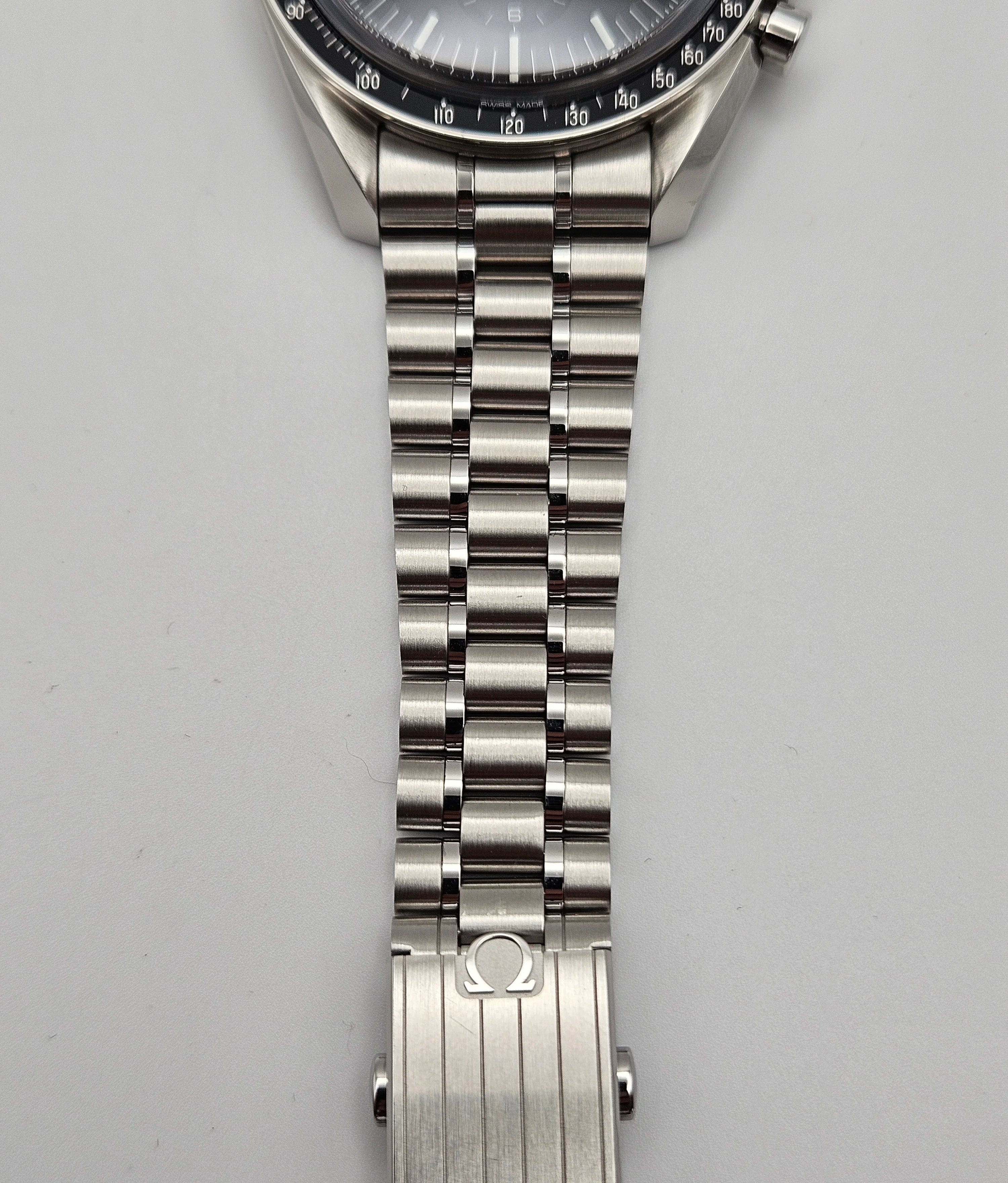 Mechanical Condition: Keeping excellent time, as you would expect from a new generation Speedmaster; zero seconds per day gain/loss. I've included a photo of the watch on a timegrapher, this only meant to show the daily accuracy and is not a representation of the amplitude since the amplitude for a co-axial movement cannot be measured on that type of timegrapher. The chronograph starts, stops, and resets to "0", exactly as it should.