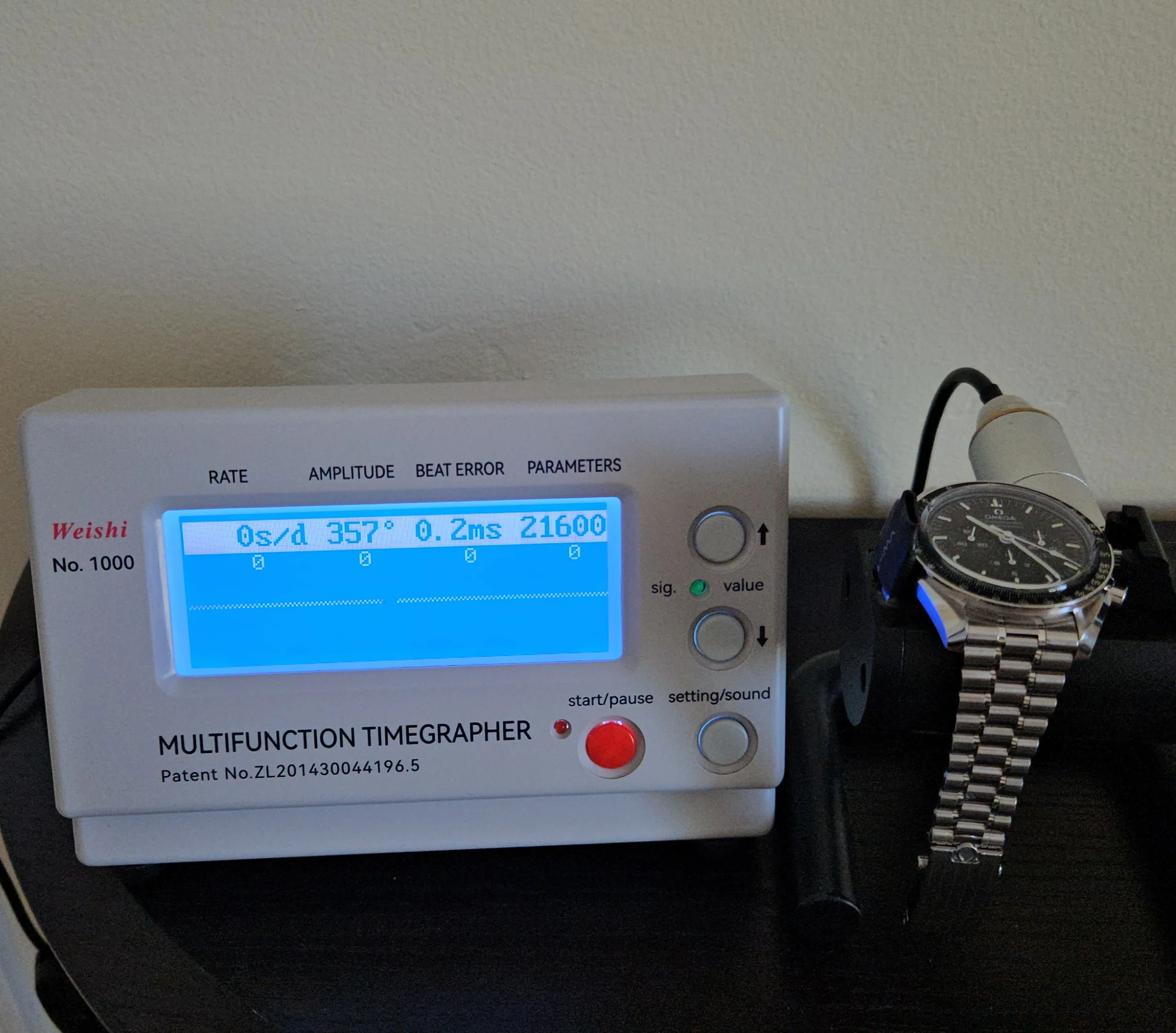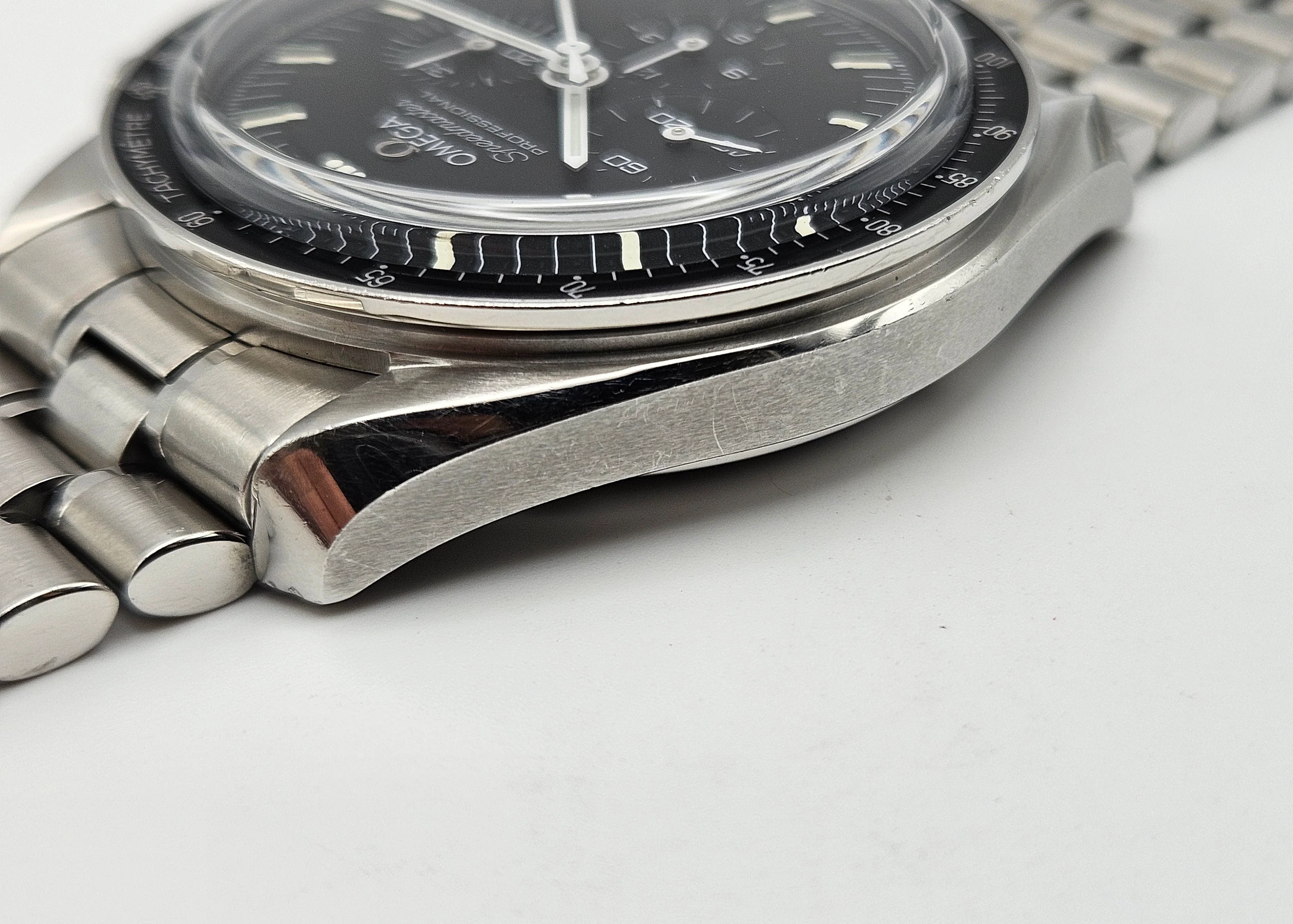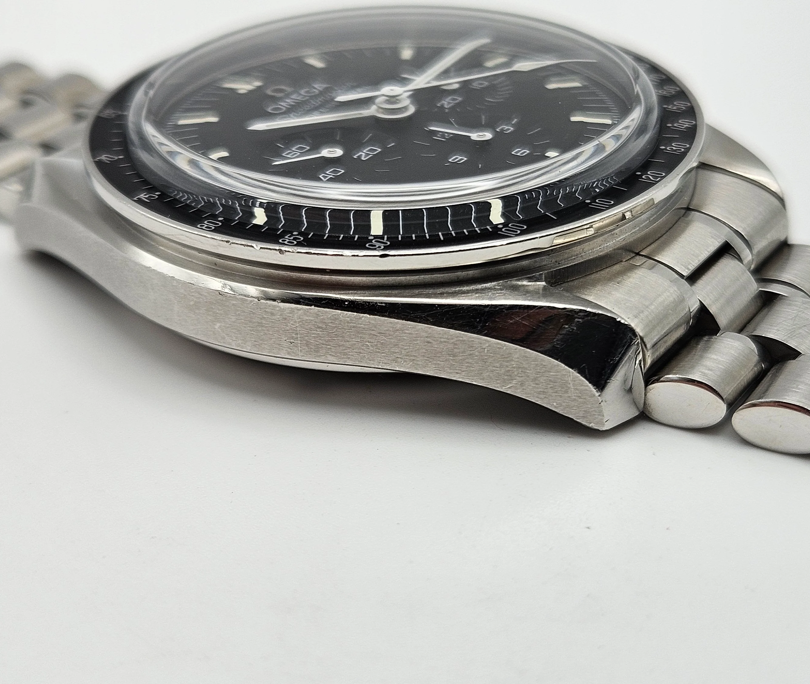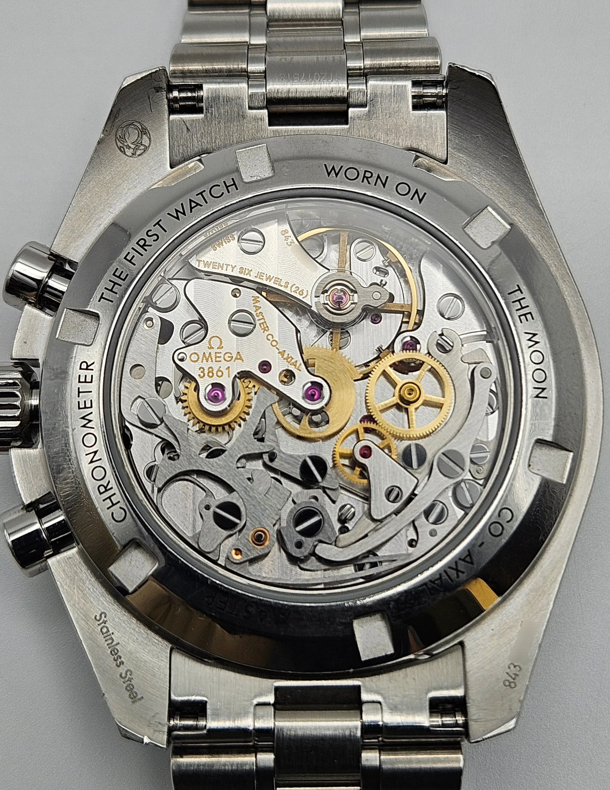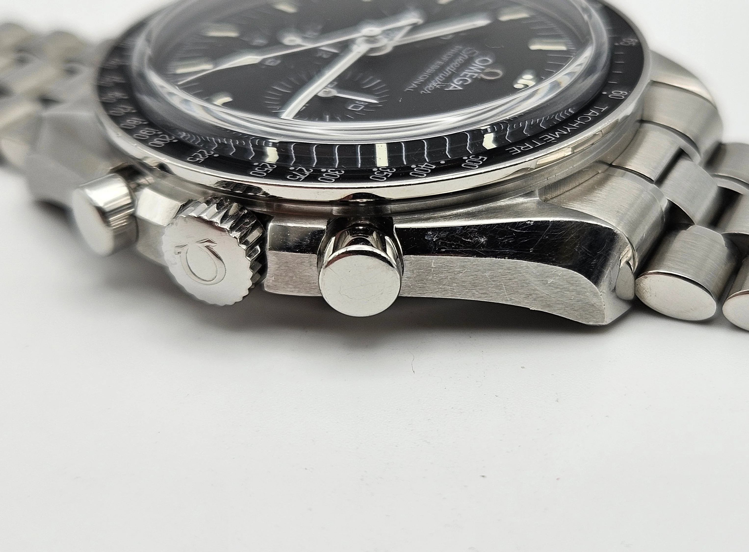 Mechanical Condition: Keeping excellent time, as you would expect from a new generation Speedmaster; zero seconds per day gain/loss. I've included a photo of the watch on a timegrapher, this only meant to show the daily accuracy and is not a representation of the amplitude since the amplitude for a co-axial movement cannot be measured on that type of timegrapher. The chronograph starts, stops, and resets to "0", exactly as it should.