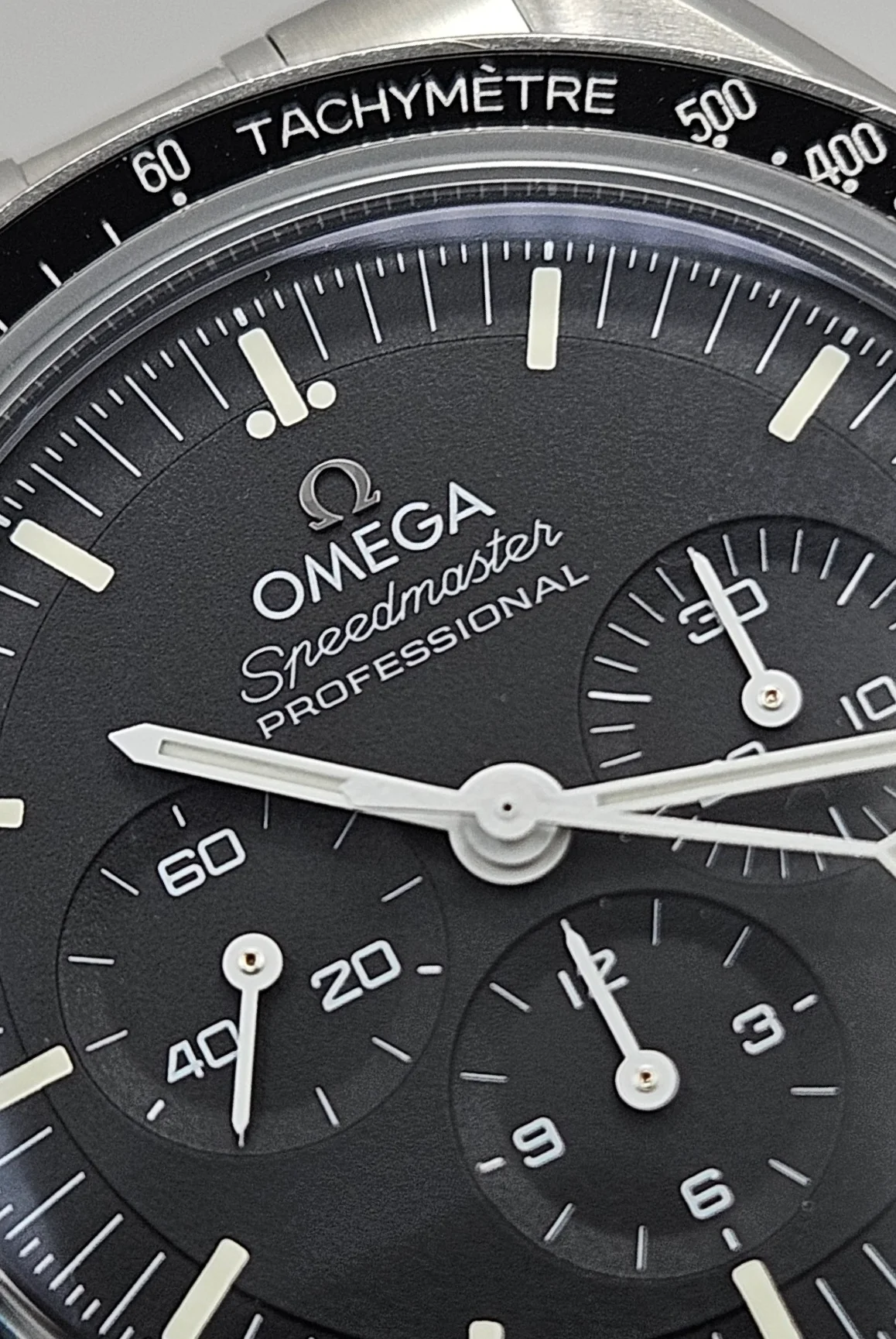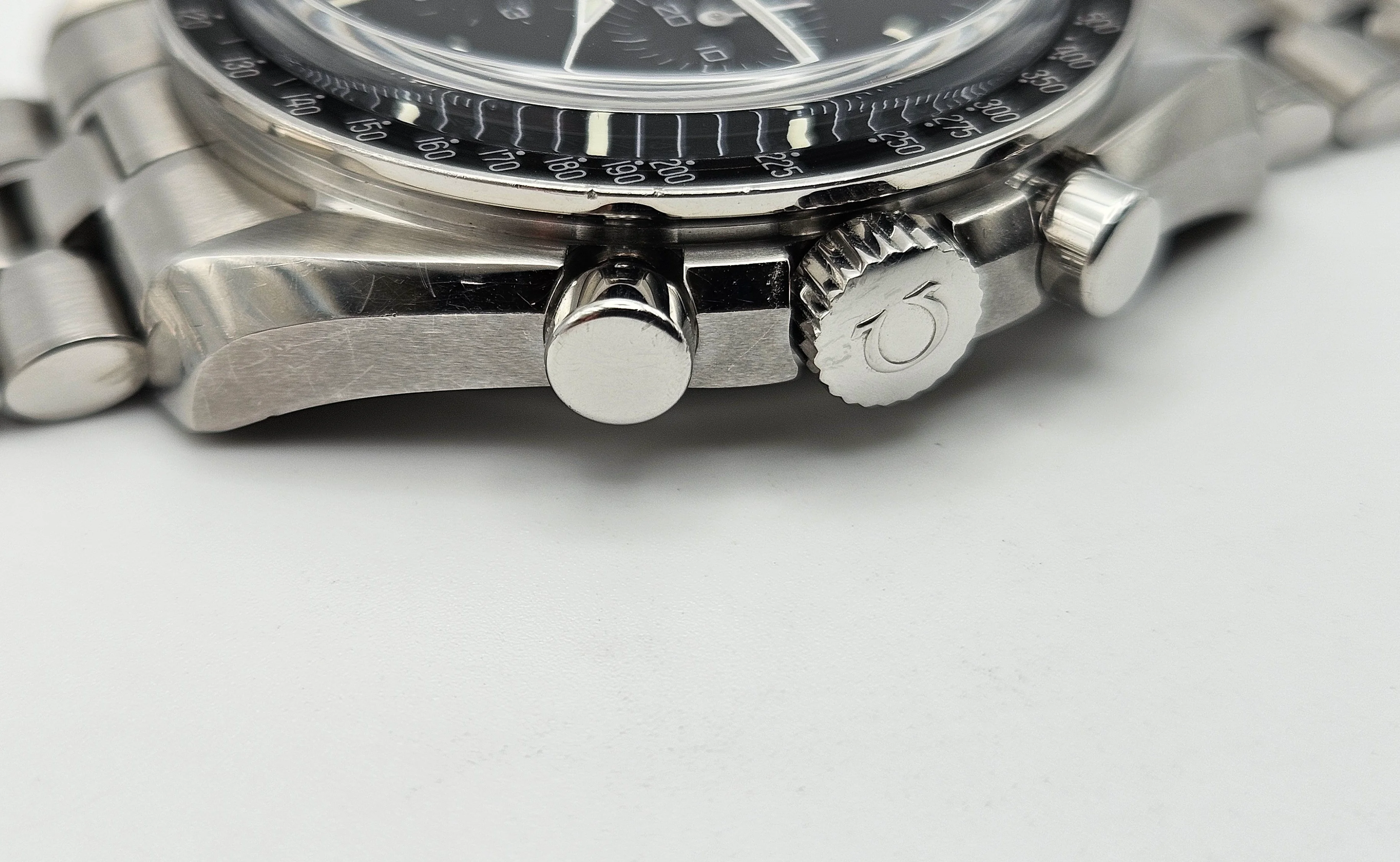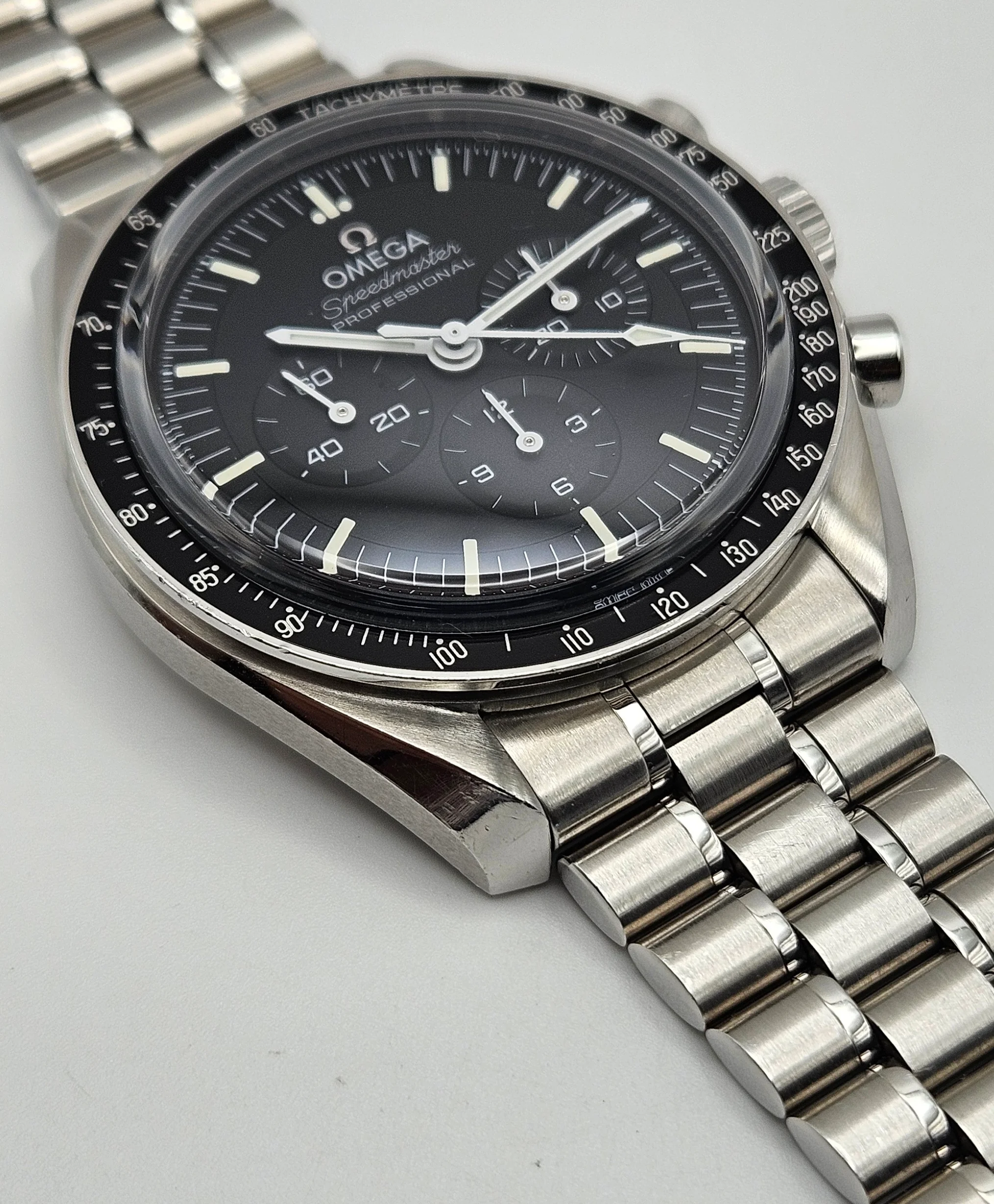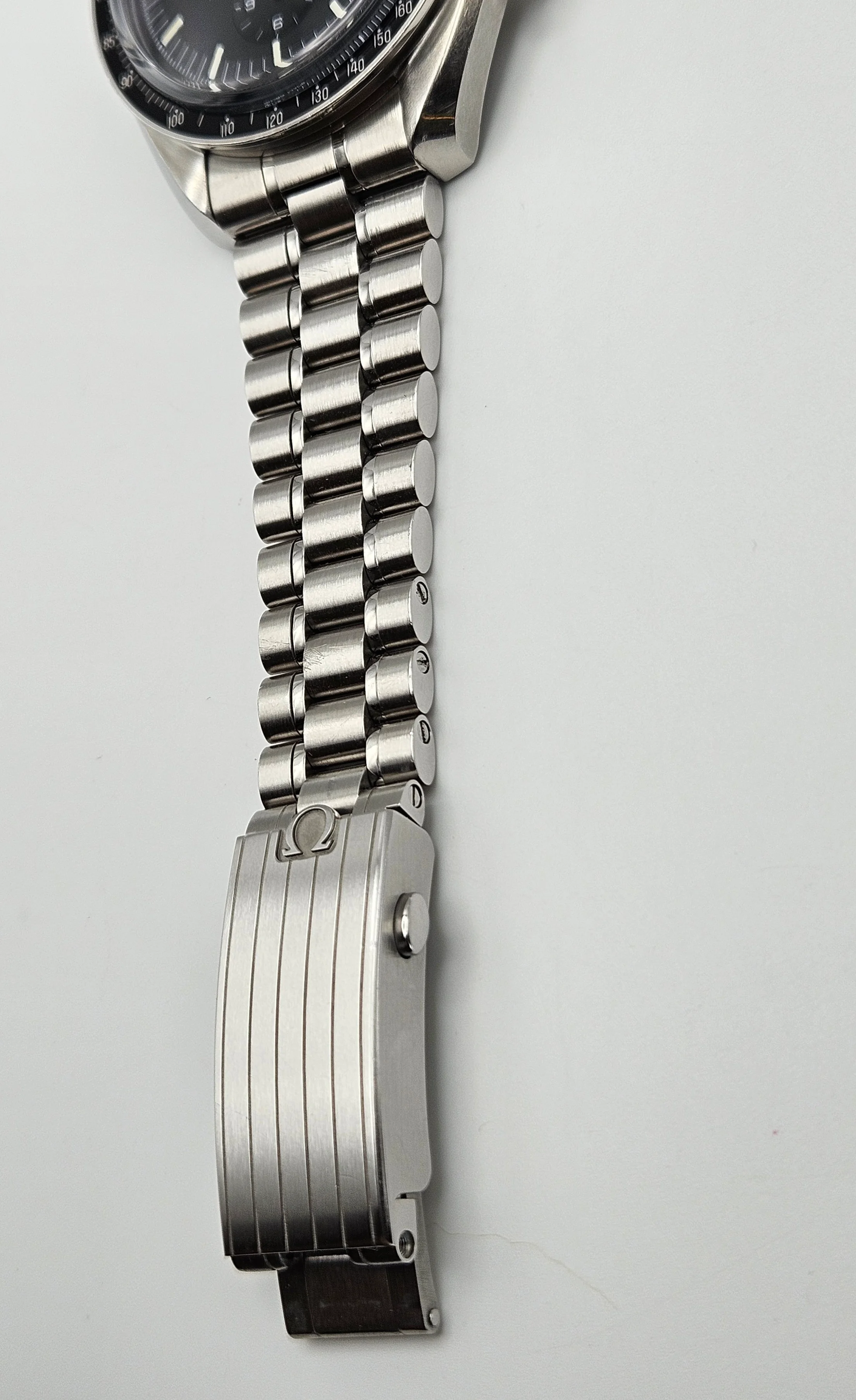Mechanical Condition: Keeping excellent time, as you would expect from a new generation Speedmaster; zero seconds per day gain/loss. I've included a photo of the watch on a timegrapher, this only meant to show the daily accuracy and is not a representation of the amplitude since the amplitude for a co-axial movement cannot be measured on that type of timegrapher. The chronograph starts, stops, and resets to "0", exactly as it should.
