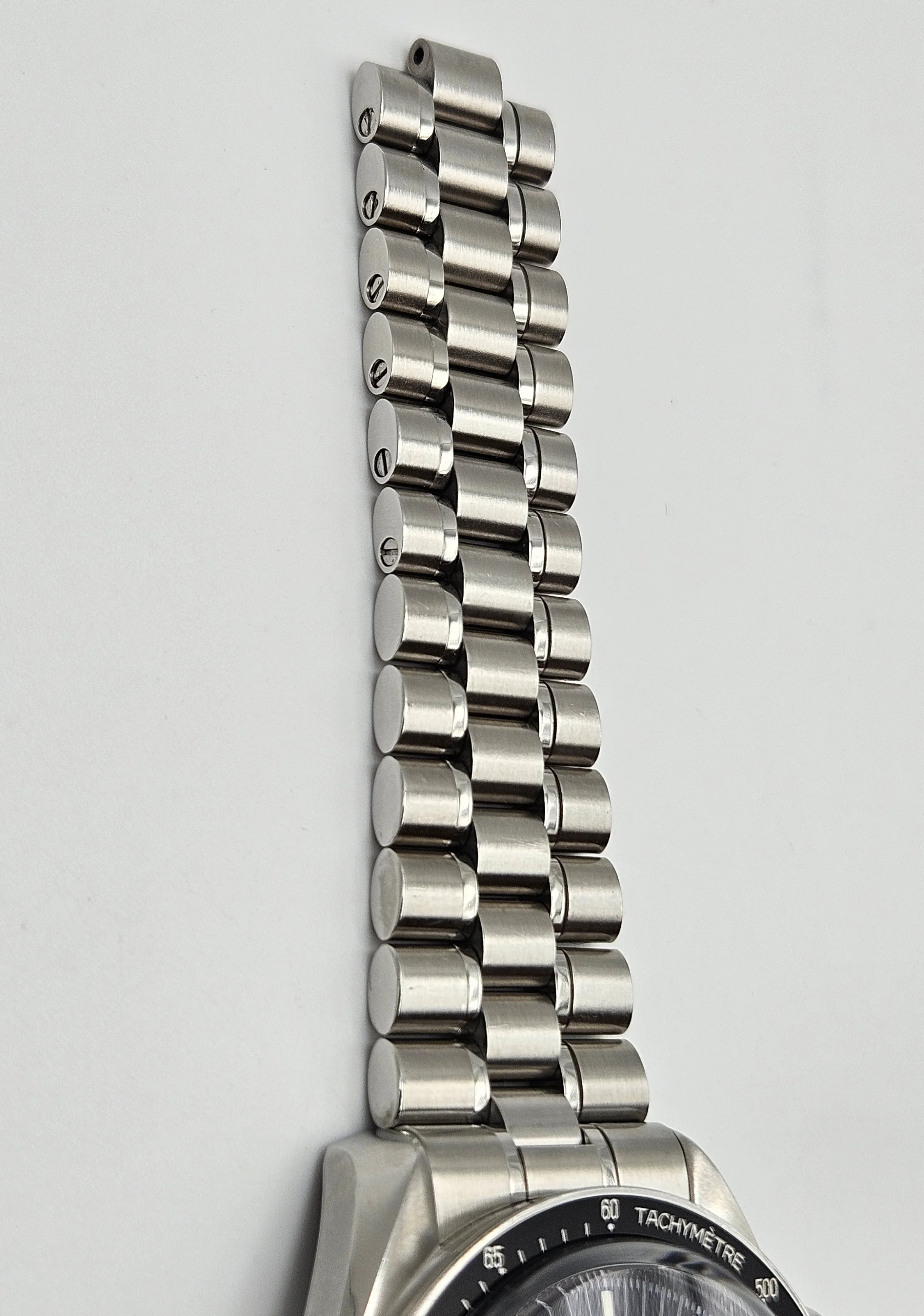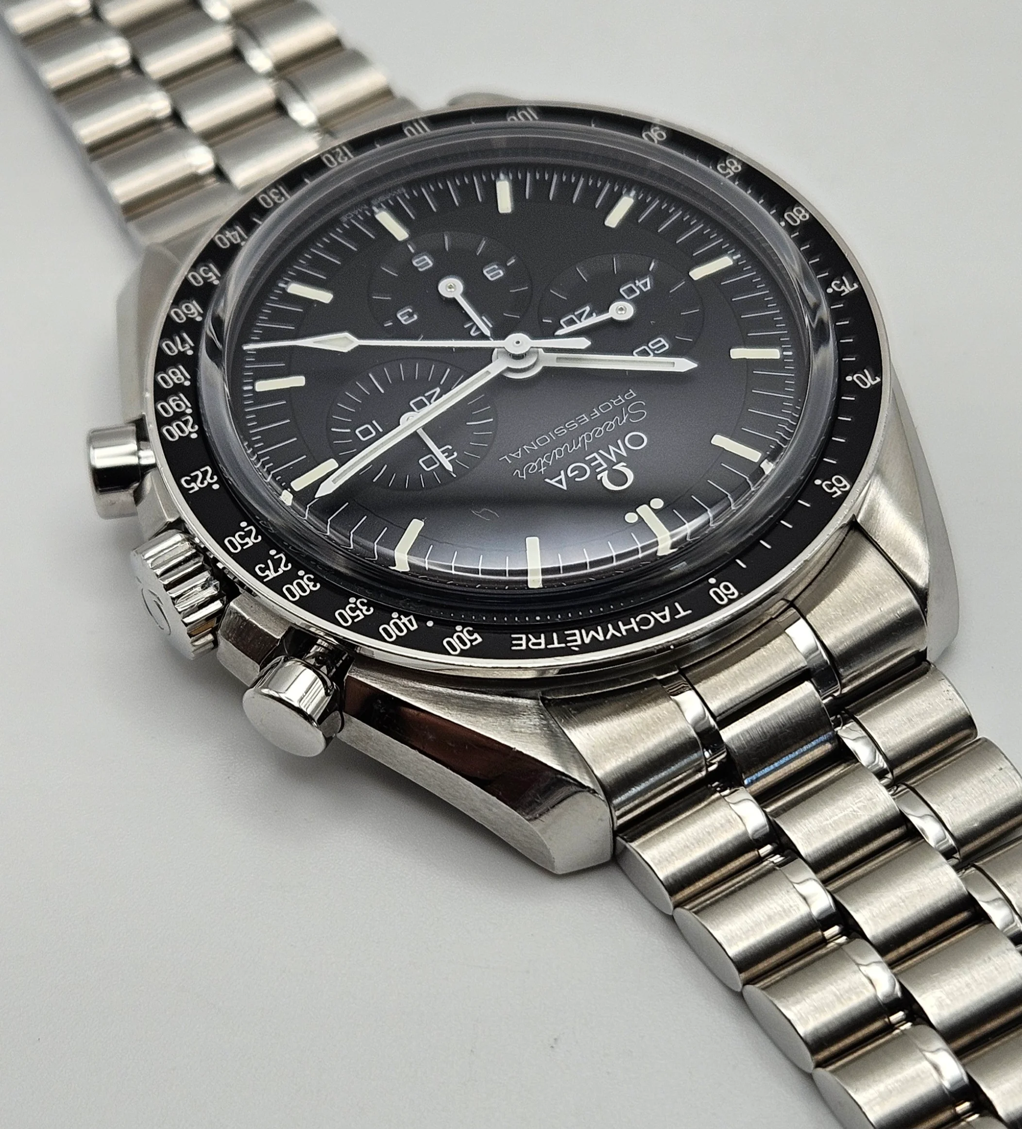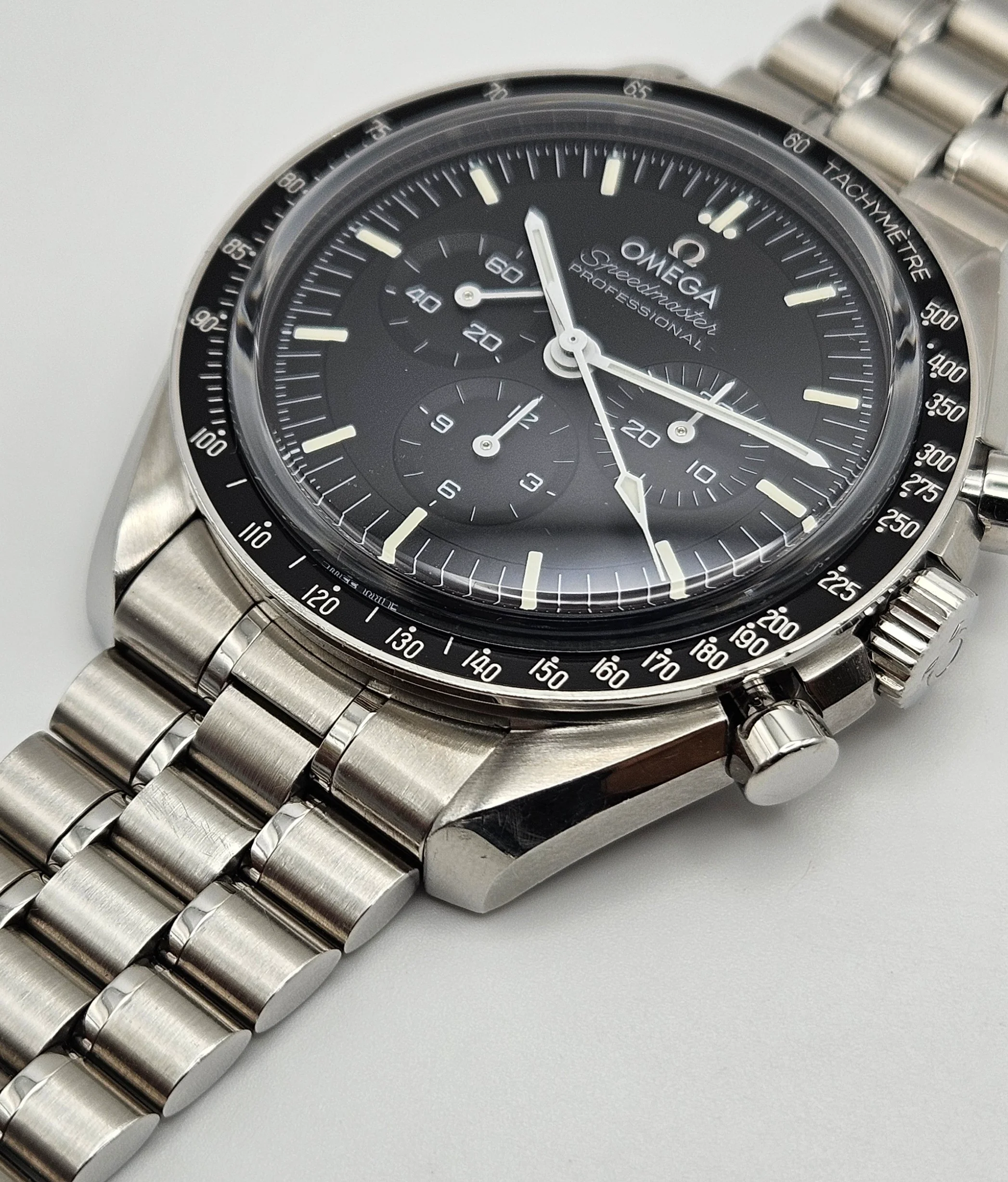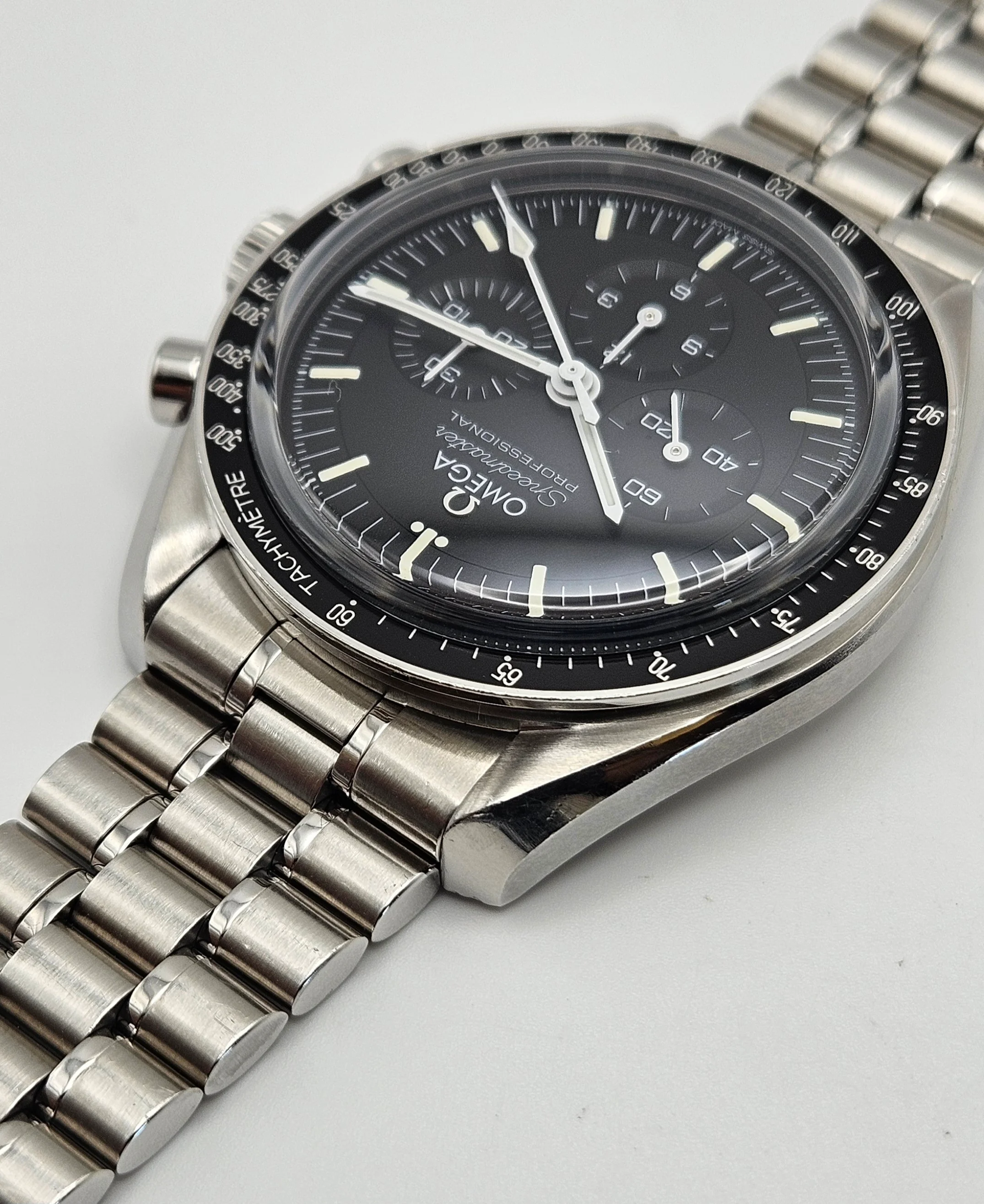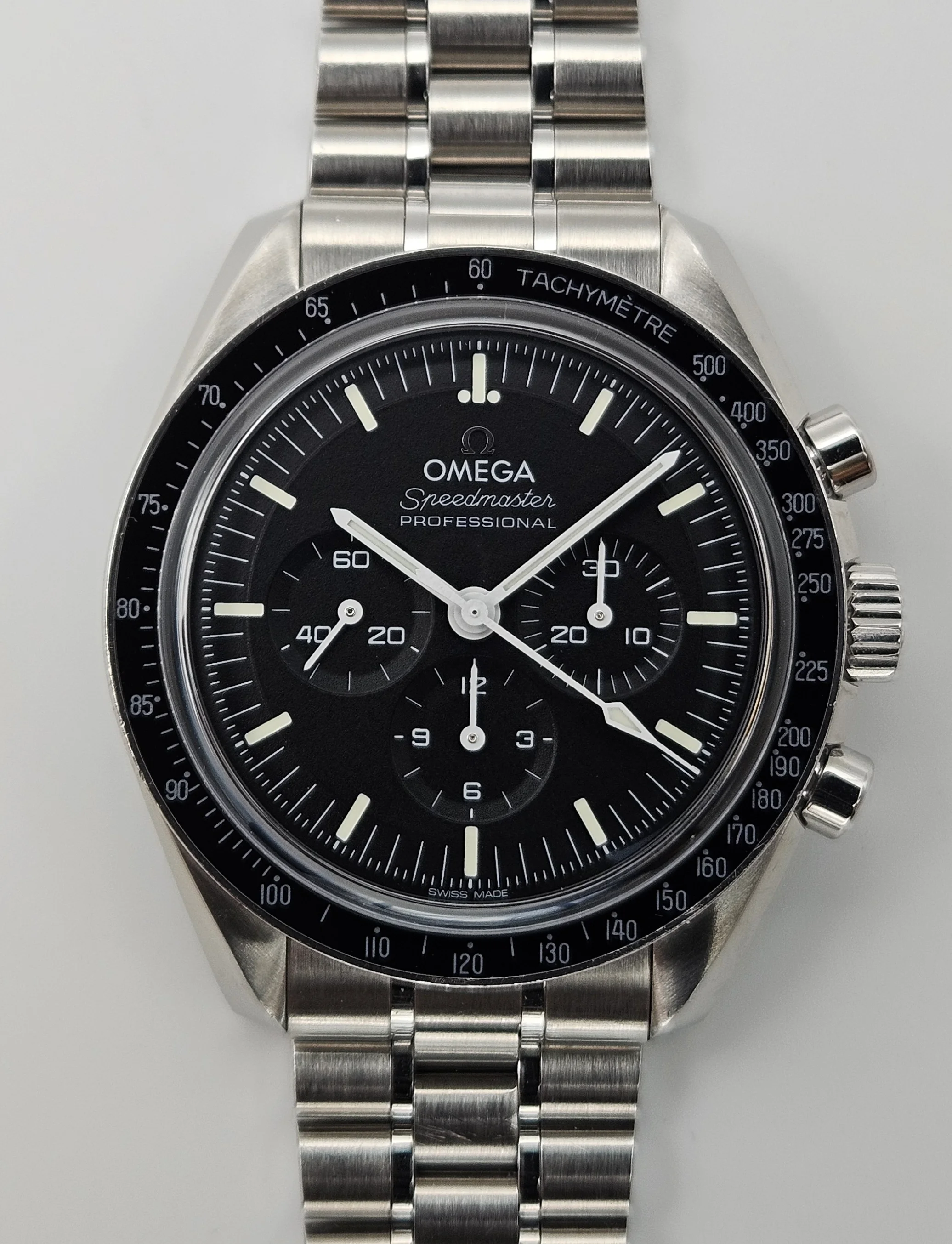 Mechanical Condition: Keeping excellent time, as you would expect from a new generation Speedmaster; zero seconds per day gain/loss. I've included a photo of the watch on a timegrapher, this only meant to show the daily accuracy and is not a representation of the amplitude since the amplitude for a co-axial movement cannot be measured on that type of timegrapher. The chronograph starts, stops, and resets to "0", exactly as it should.
