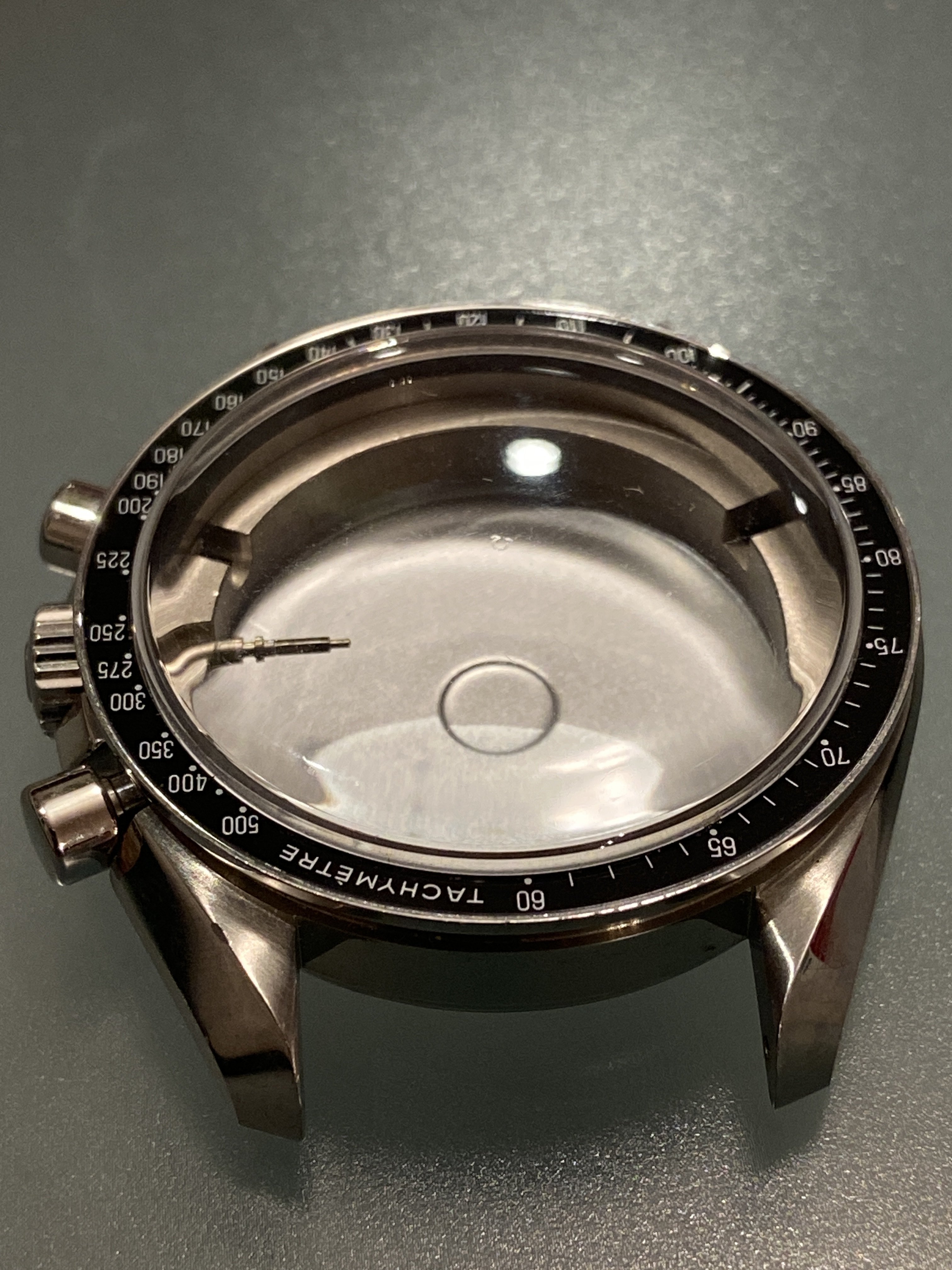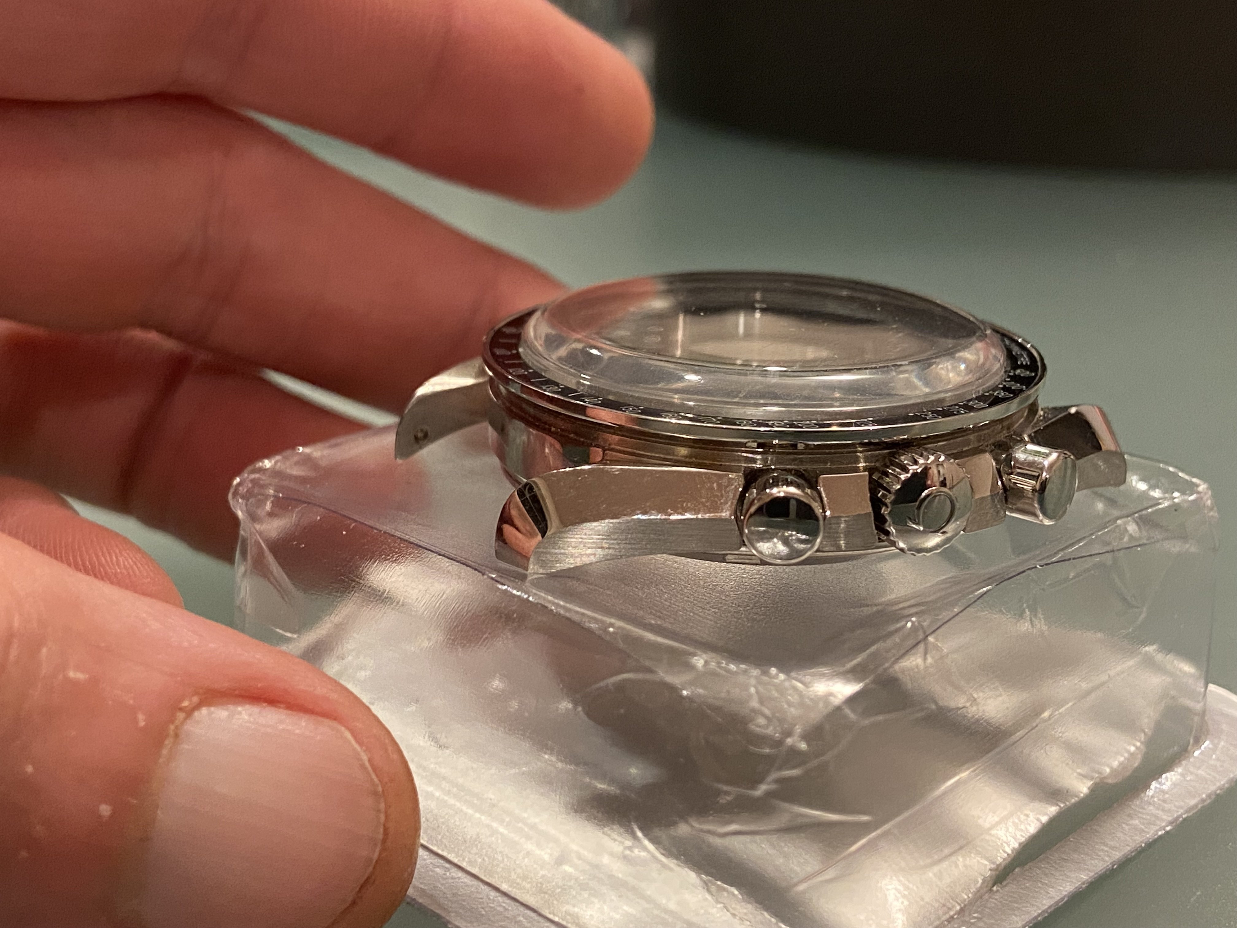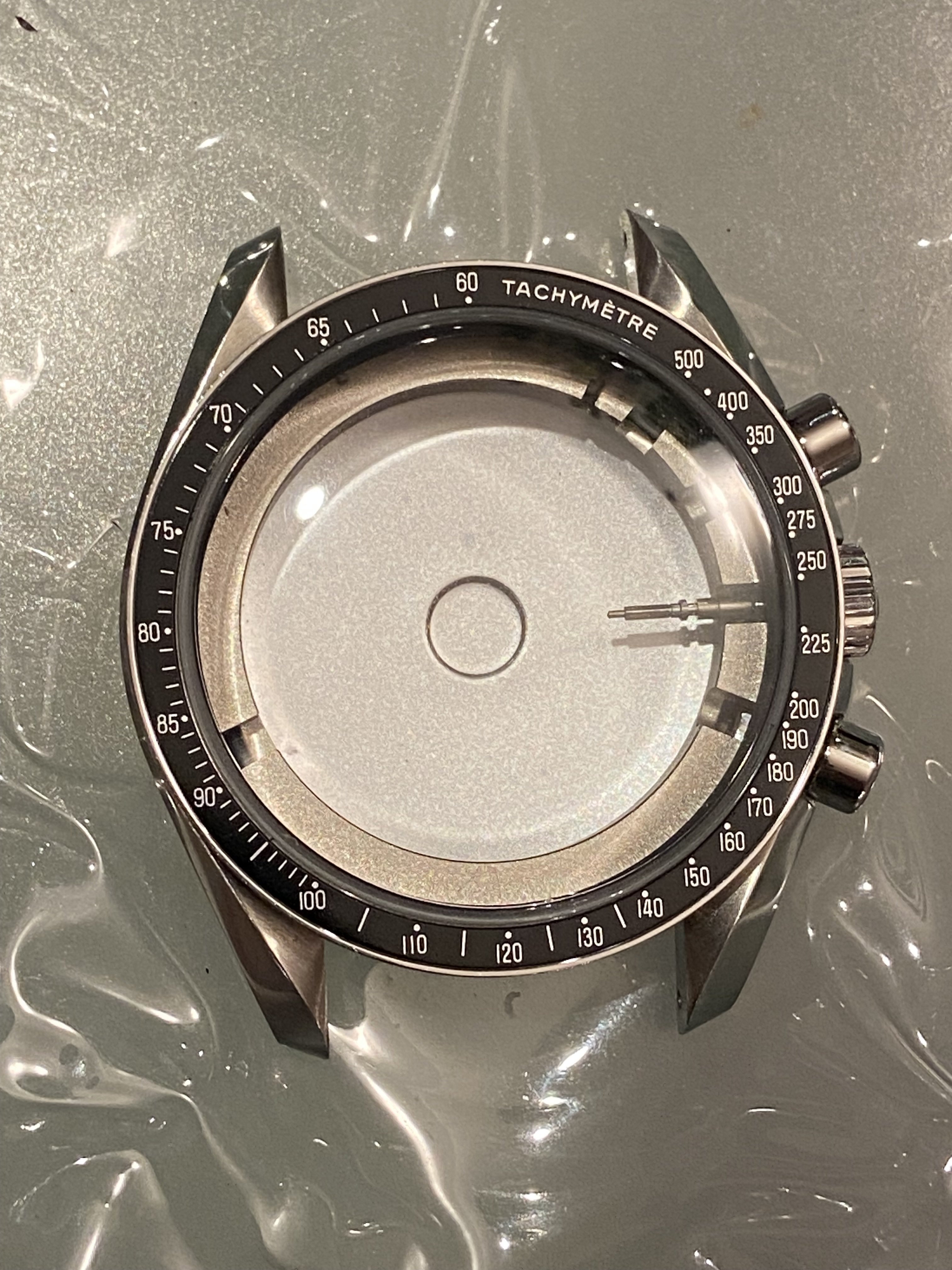 When I say complete I mean complete. Mid case, B6 bezel, A4 crystal, pushers (wide & tall), A3 24 tooth crown & stem, C6 caseback, movement holder ring and even the antimagnetic shield. Everything you need to drop in a MKII racing dial, or whatever you choose.