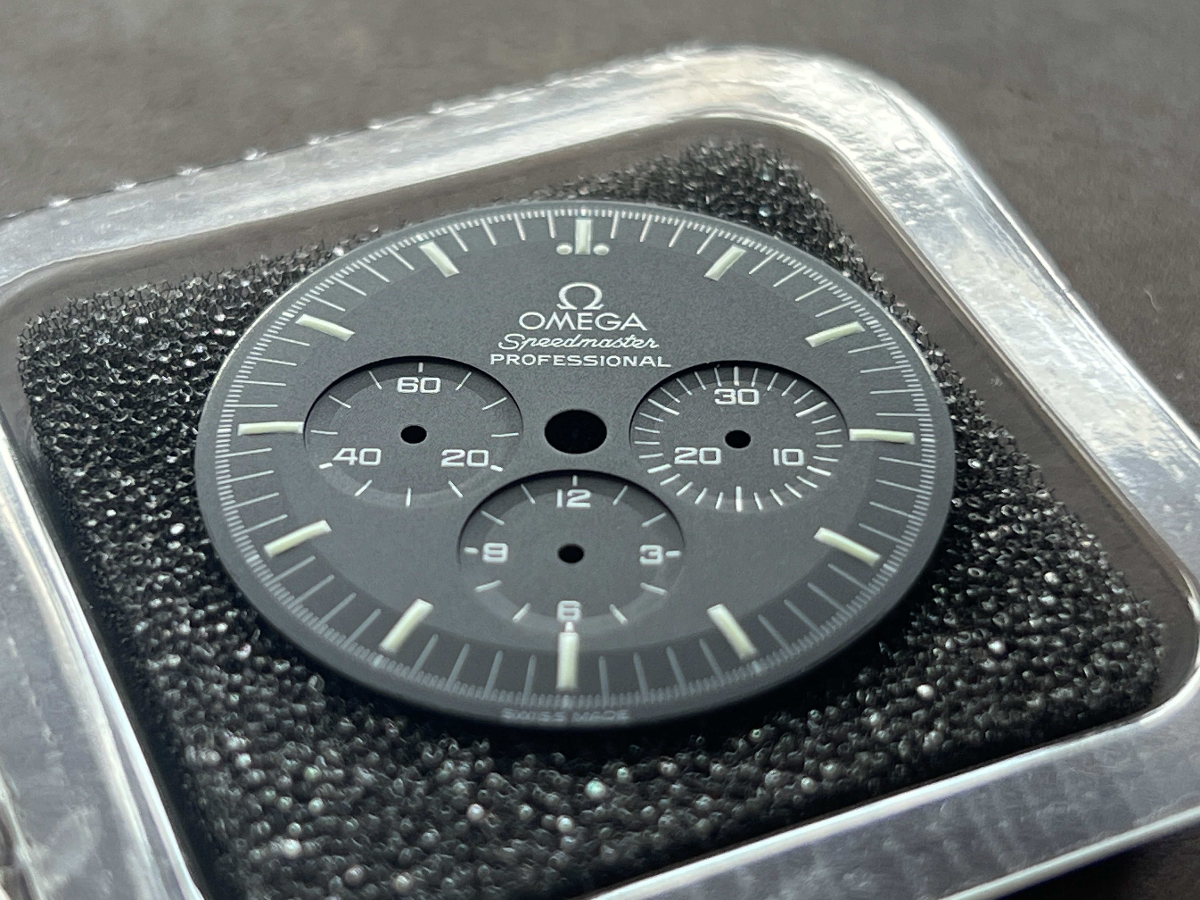 I have this spare Speedy Pro dial here that I don’t have use for. It’s a superluminova dial, so should be late 90s through the early 2000s. Can’t find any damage whatsoever on it, see pictures.