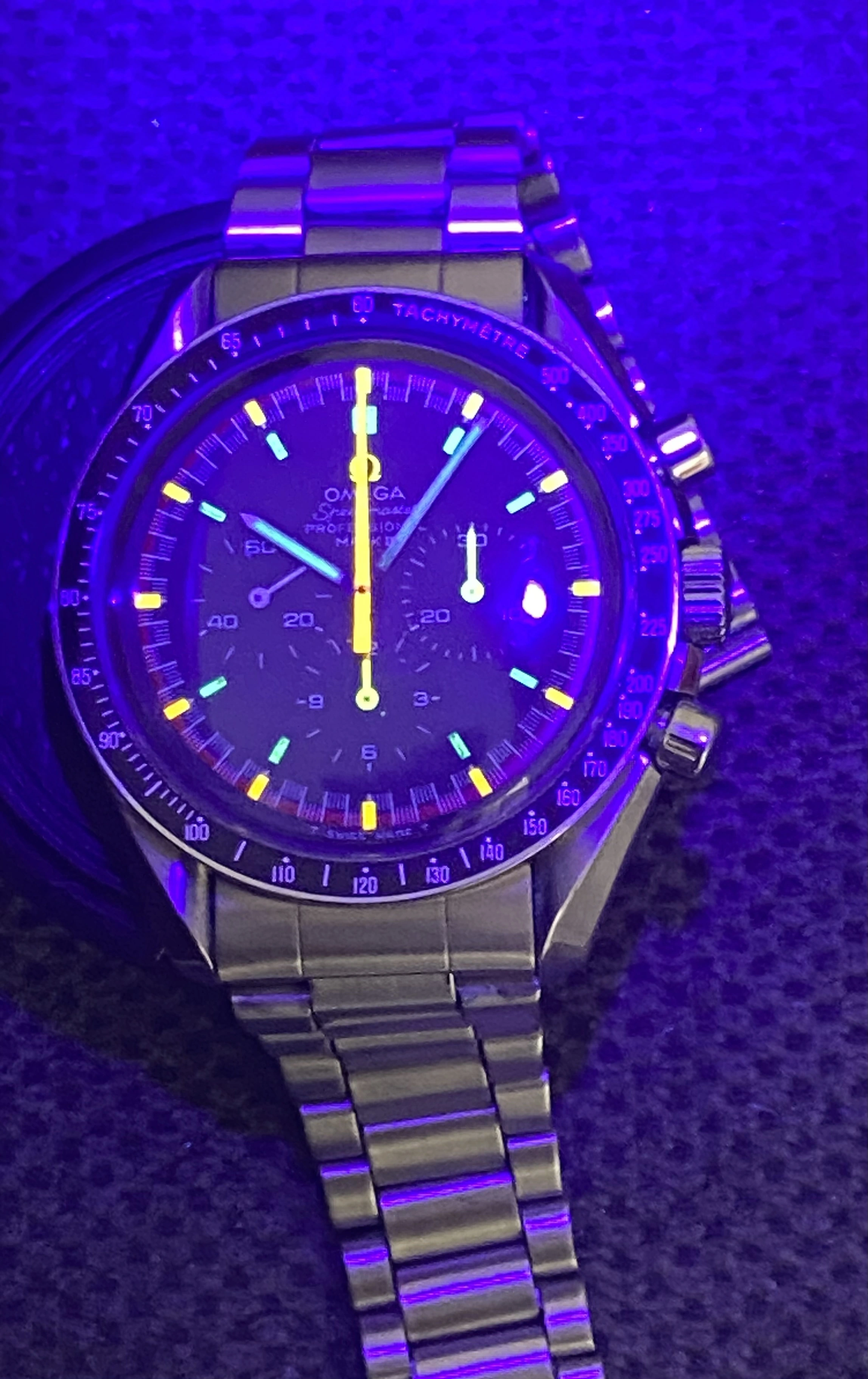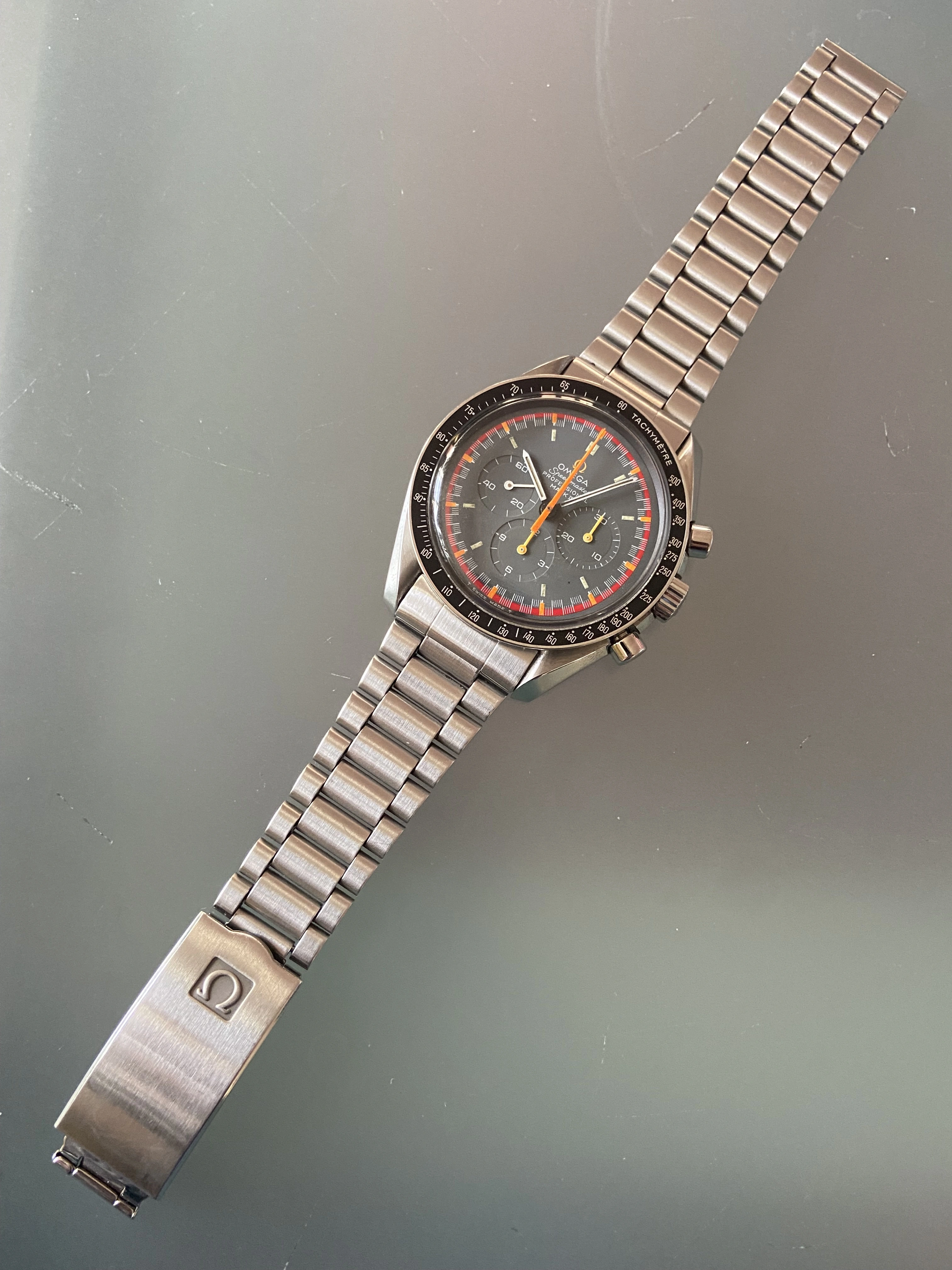 This was assembled and movement was serviced by a watchmaker with full omega parts account, receipt will be included. Movement service was done in 2023 so should be good to go for a few more years. Another fun note; the movement serial number is close to the real grey dial pro racing movement serial number range. MWO says 11 of 15 known are in the 29.60x.xxx range, this one is 29.63x.xxx