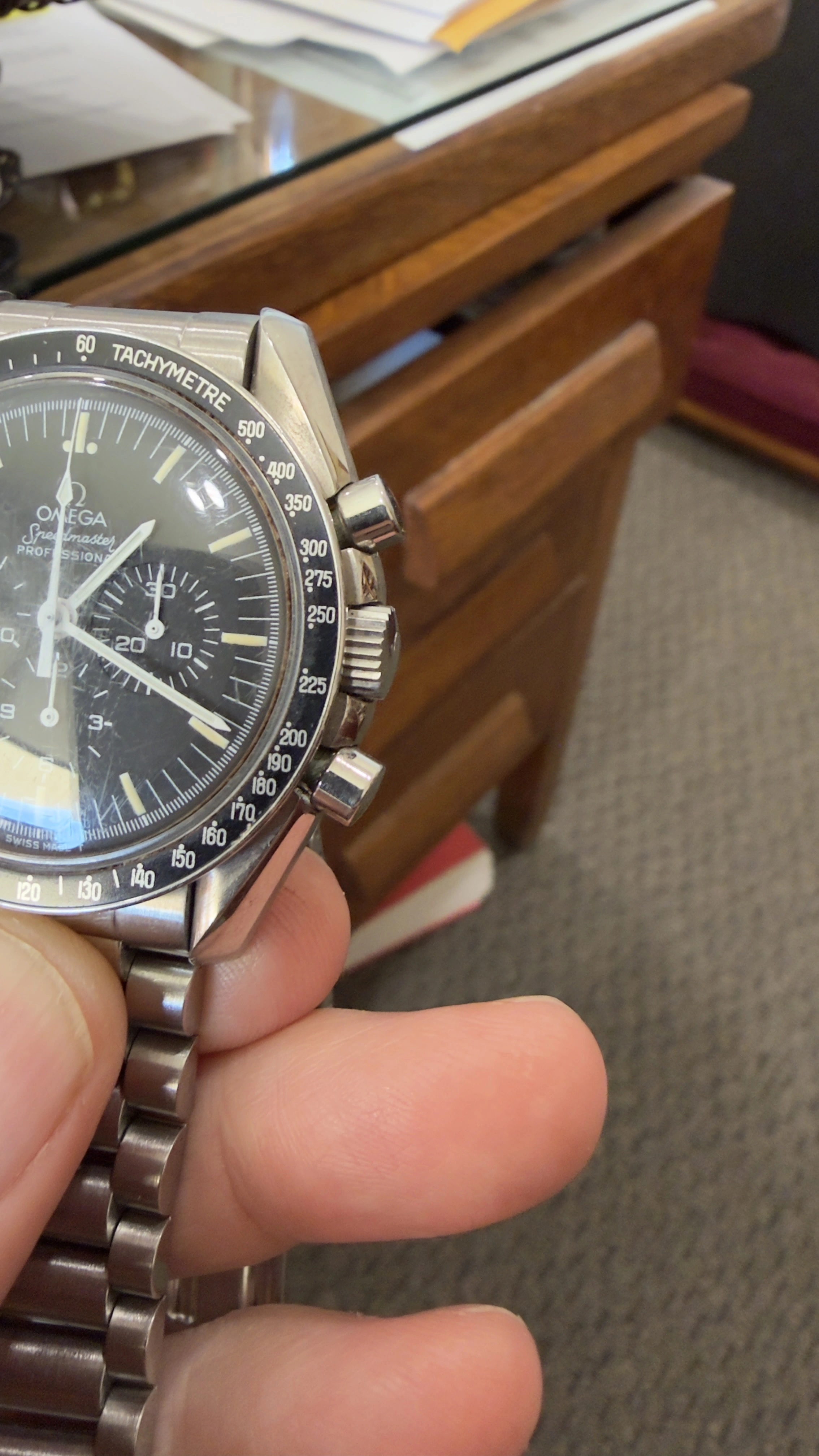 Just purchased a 69 Speedmaster 145.022 with original crown and pushers- no service marks inside case and all indicators and appearance consistent with entirely original specimen- even bezel can be dated as it is a "220" Error example dating to 1970 (with a few unfortunate paint chips). Like idea of maintaining original parts but my understanding is that pusher gaskets are difficult/impossible to replace, and crown gaskets not replaceable at all. Leaning towards replacing pushers and crown, but keeping originals for future reference/ potential resale. Make sense? Watchmakers...