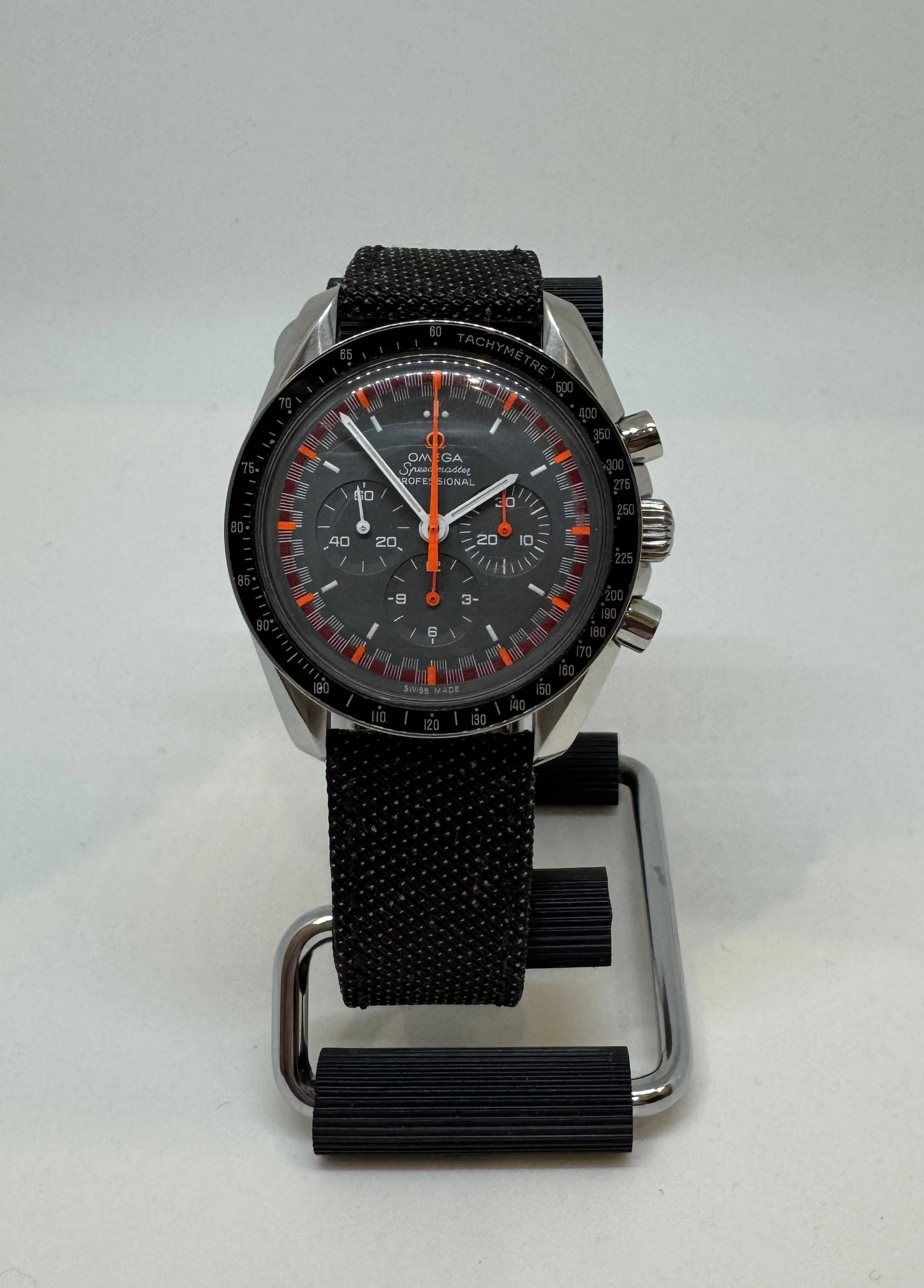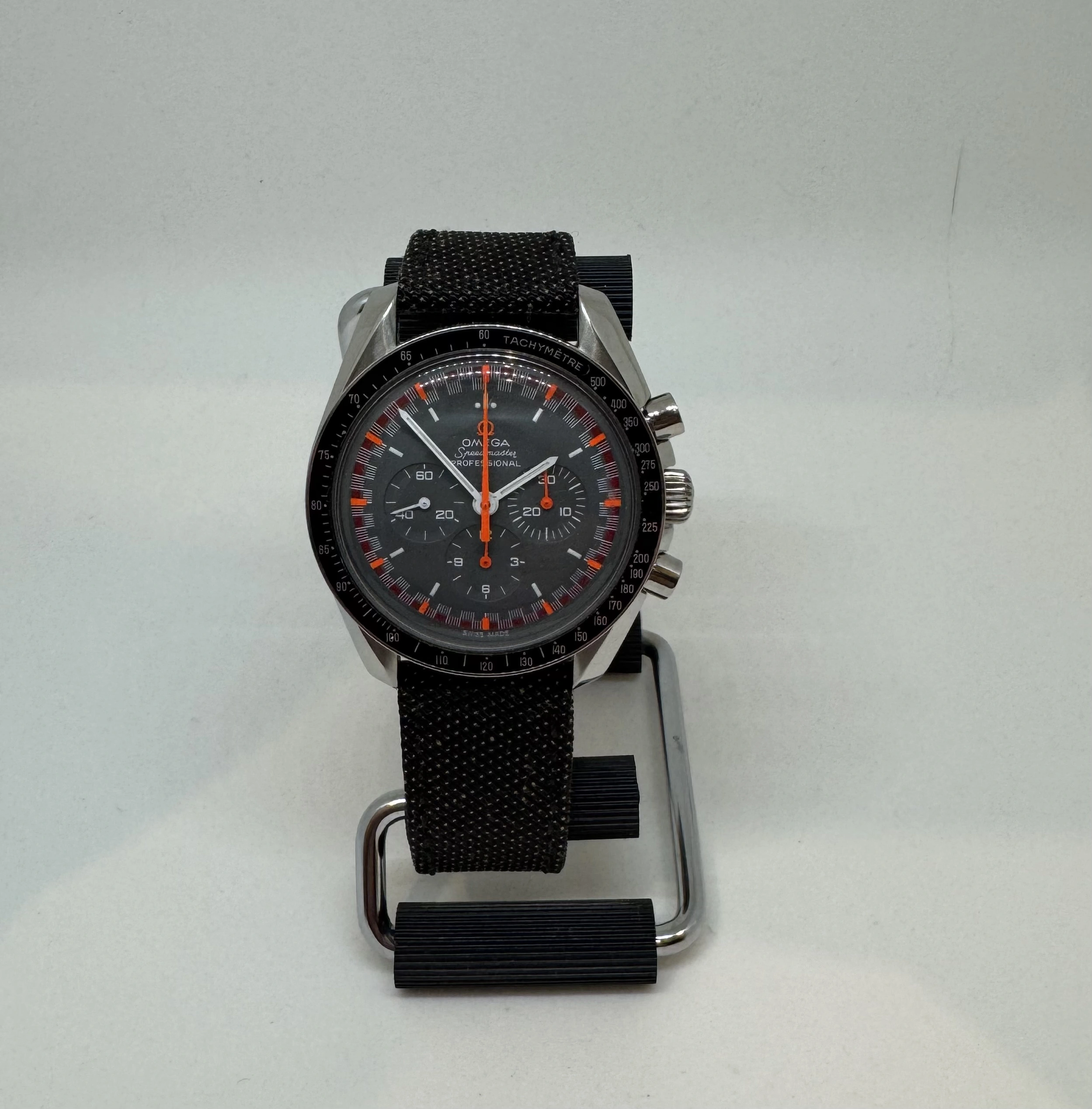 Will send along on its own, with a Kevlar strap as pictured, or with an uncle Seiko bracelet (president/flatlink/holzer) in Omega service box or speedmaster big box. I also have a spiral winder display back that can be factored into the sale.