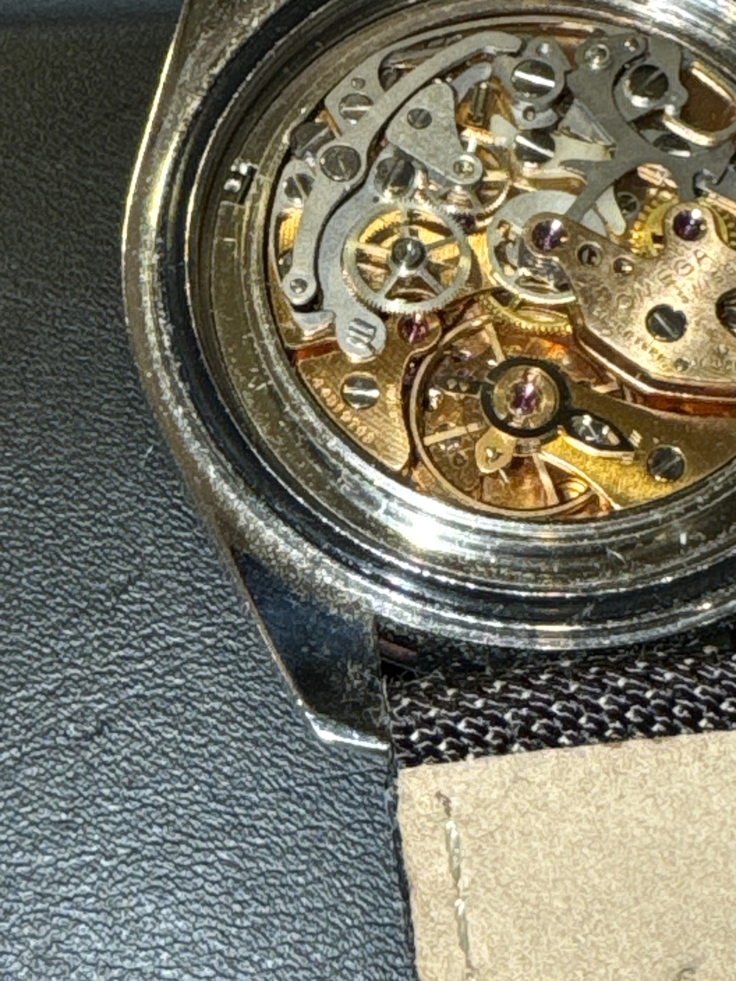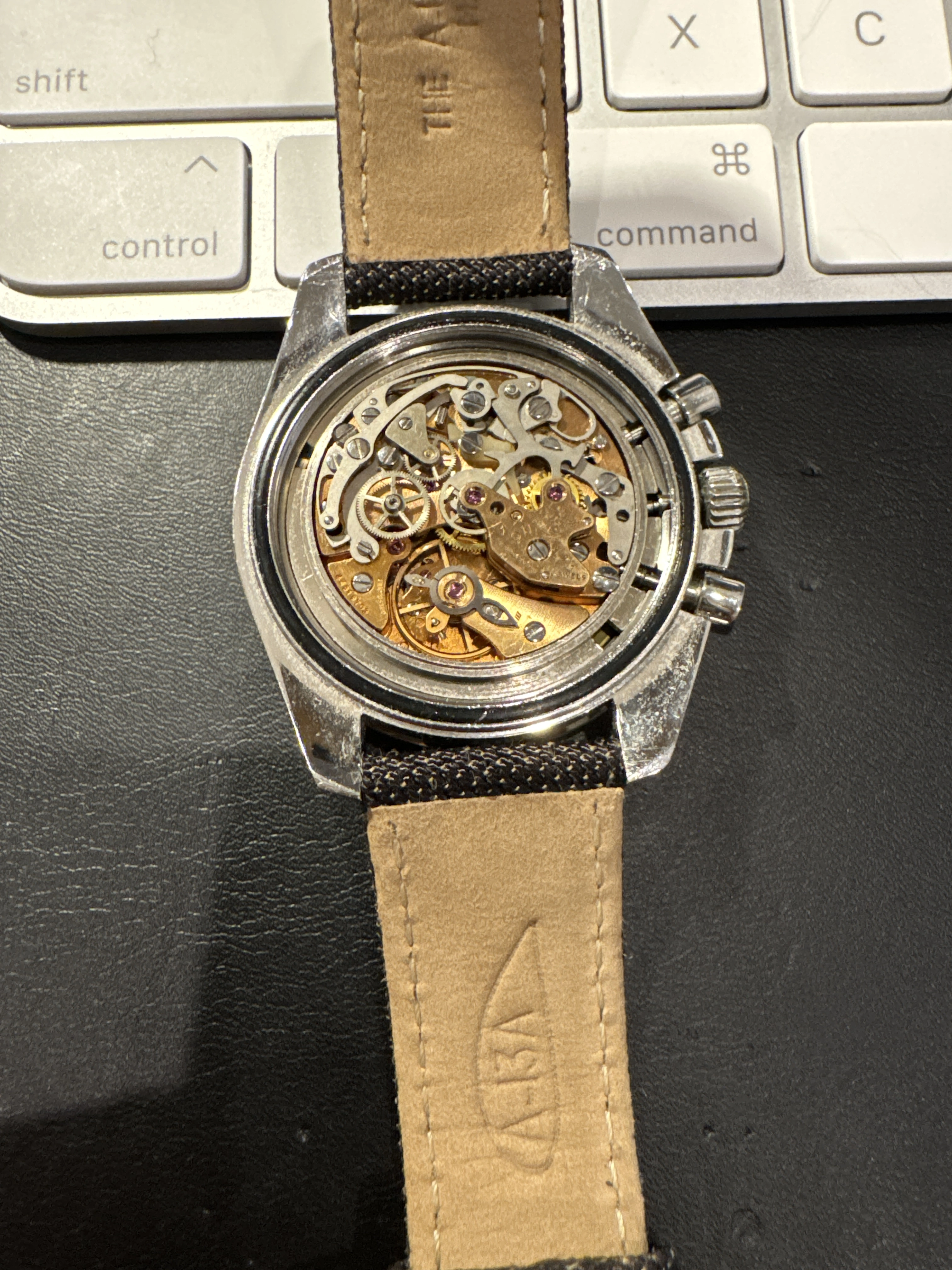 All OEM parts. I had an unused service case from Otto Frei, set of hands and dial from Marcus/watchco, and found a serviced 861 and had it all put together properly during COVID lockdown. Runs well (see timegrapher pic), sets and chrono resets properly.