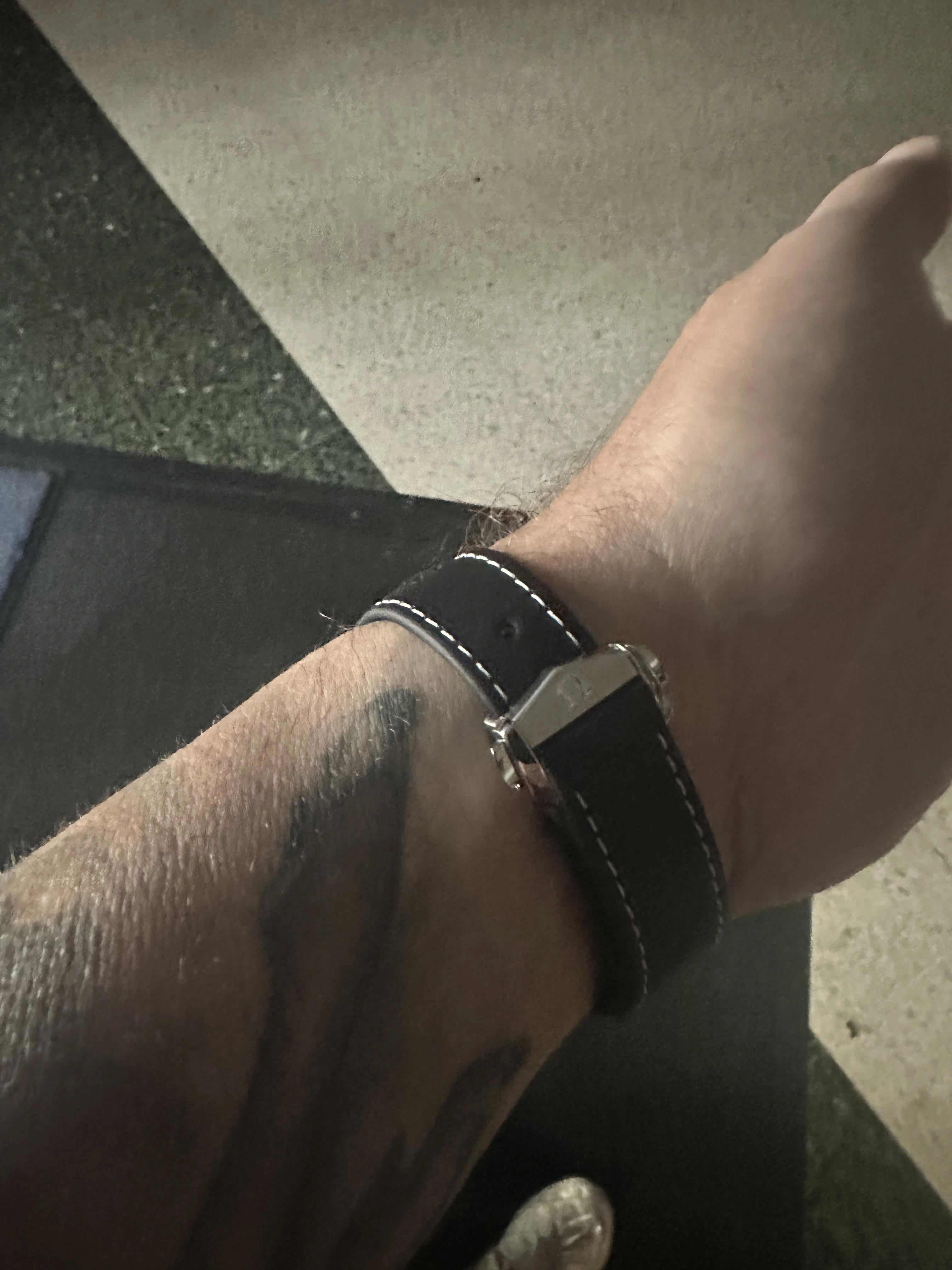 My question is, does this look silly on me? I love the strap, and I love that there isn’t multiple holes showing, and I also like the fact the metal clasp doesn’t drag along my desk, but I can’t get over the fact the foldover clasp is all the way at the end of my wrist.
