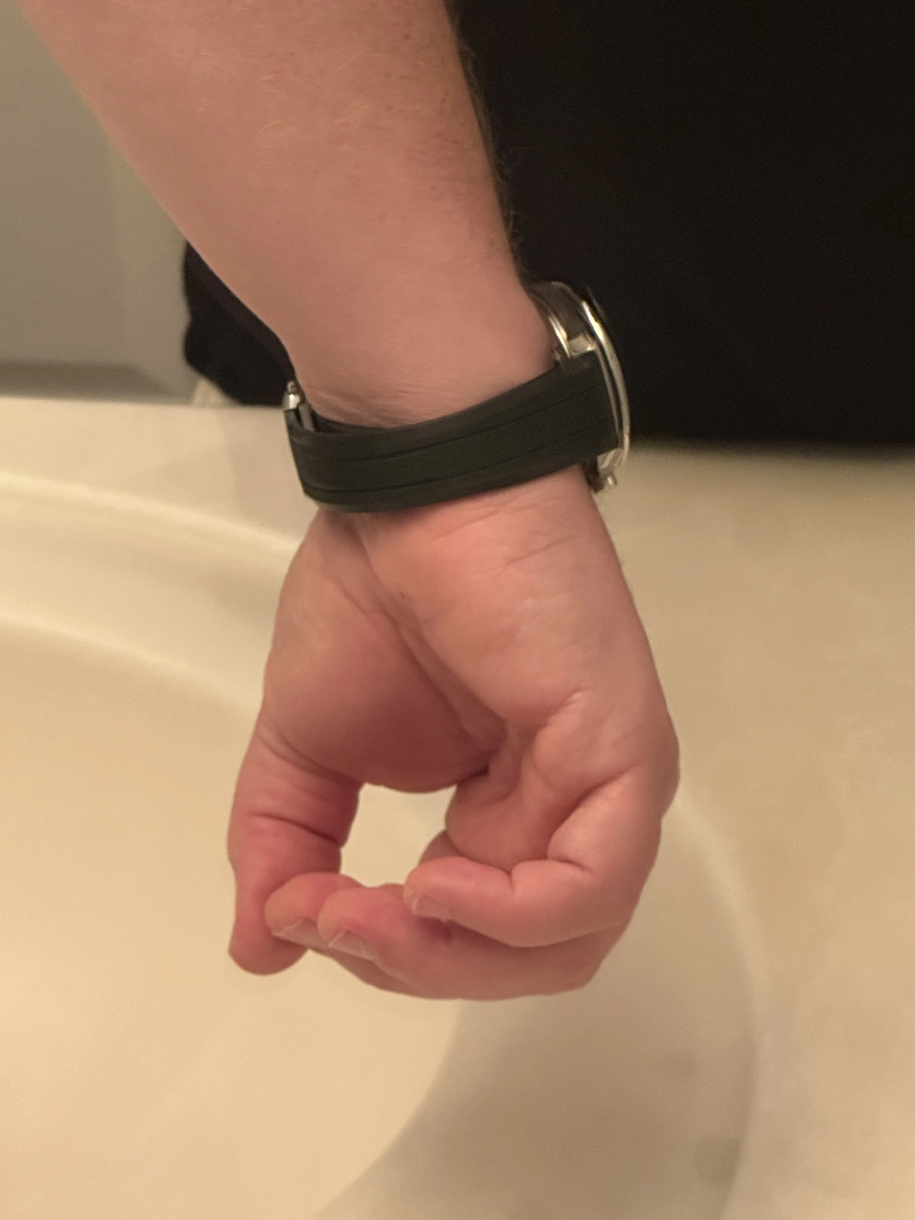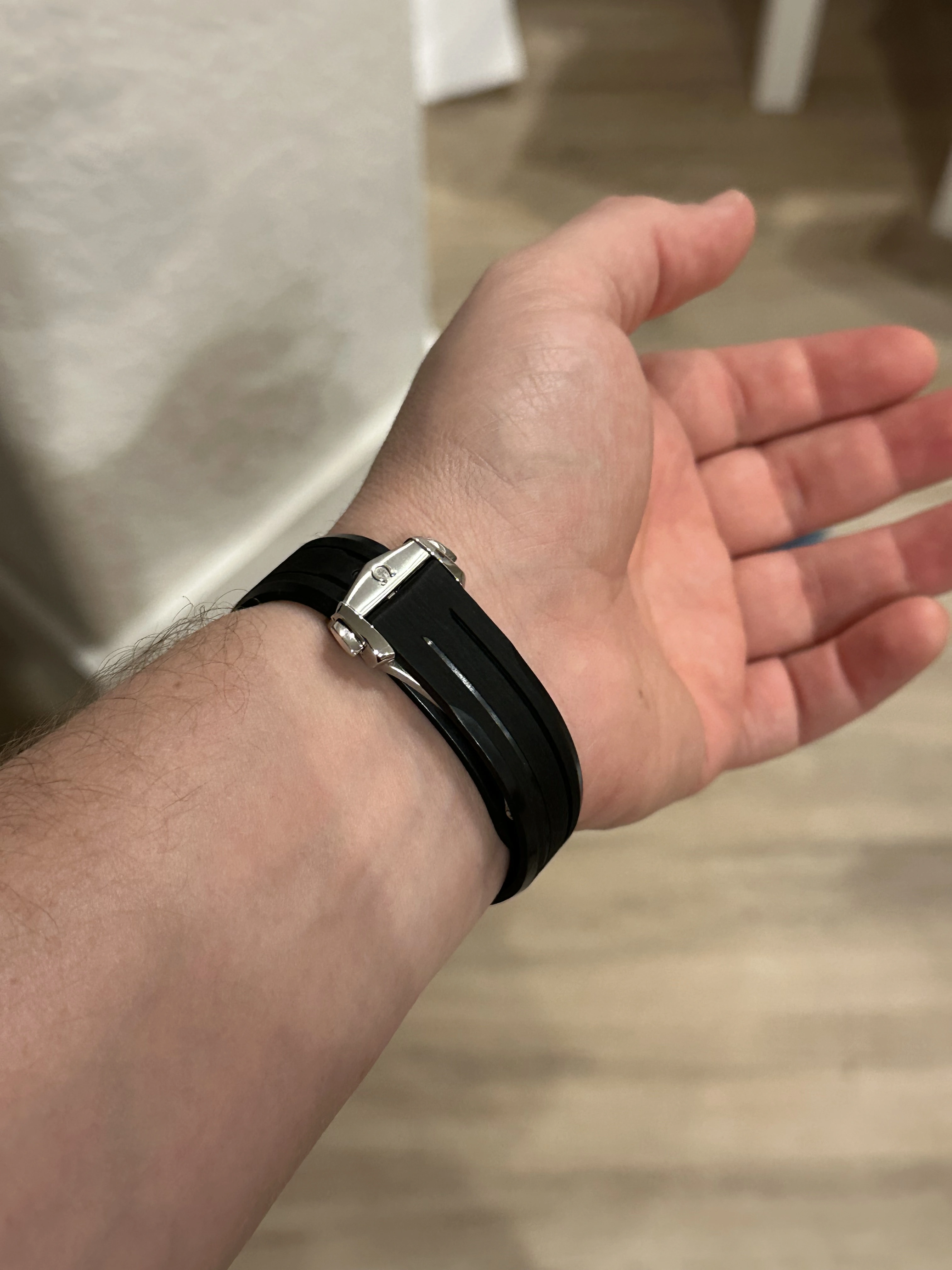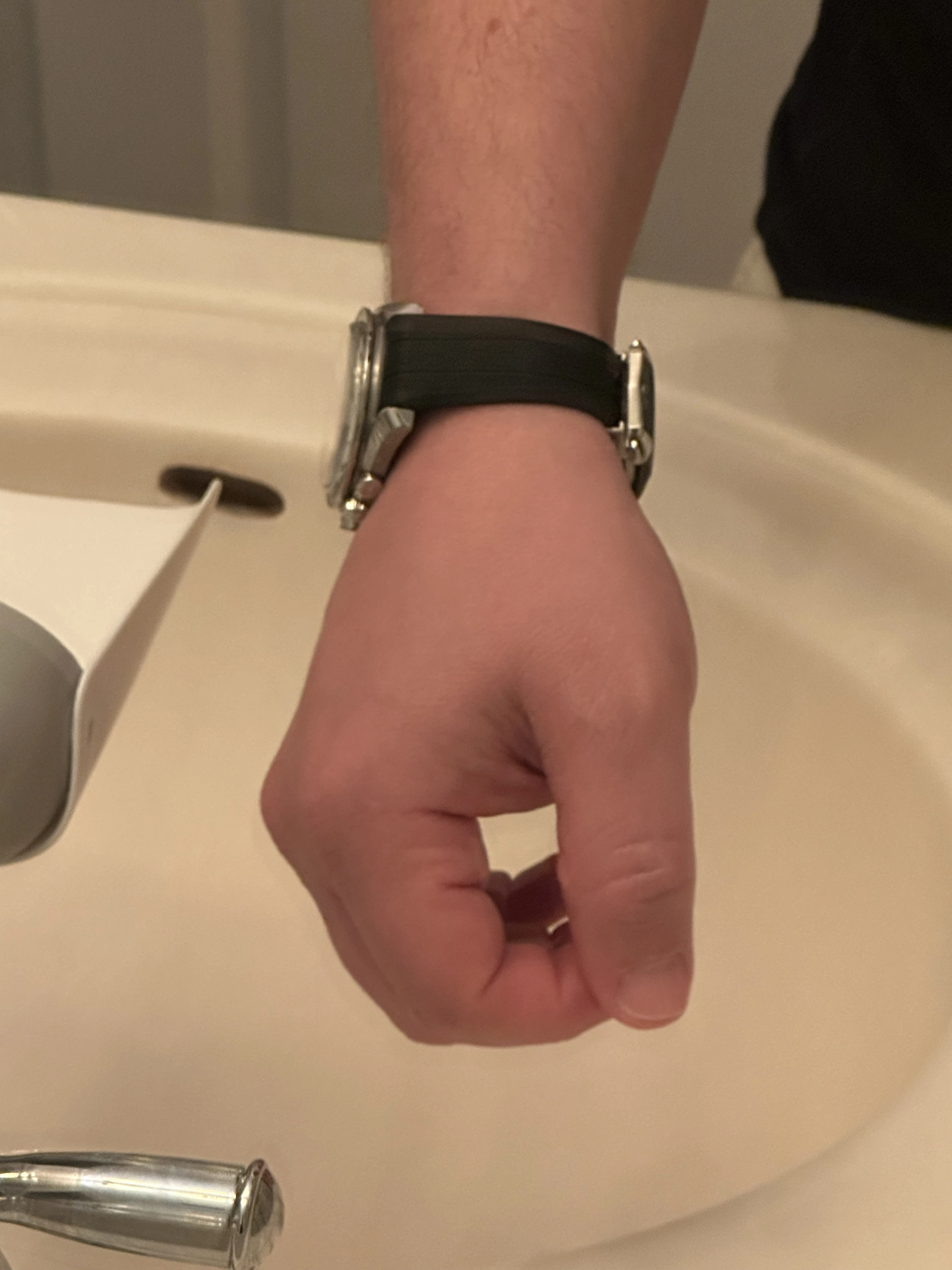I’m considering exchanging for the smaller size, but again I will be doing that without the opportunity to try it on. The issue is, this one fits my wrist perfectly and is super super comfortable. Just wondering if it looks absurd with the clasp in its current position.