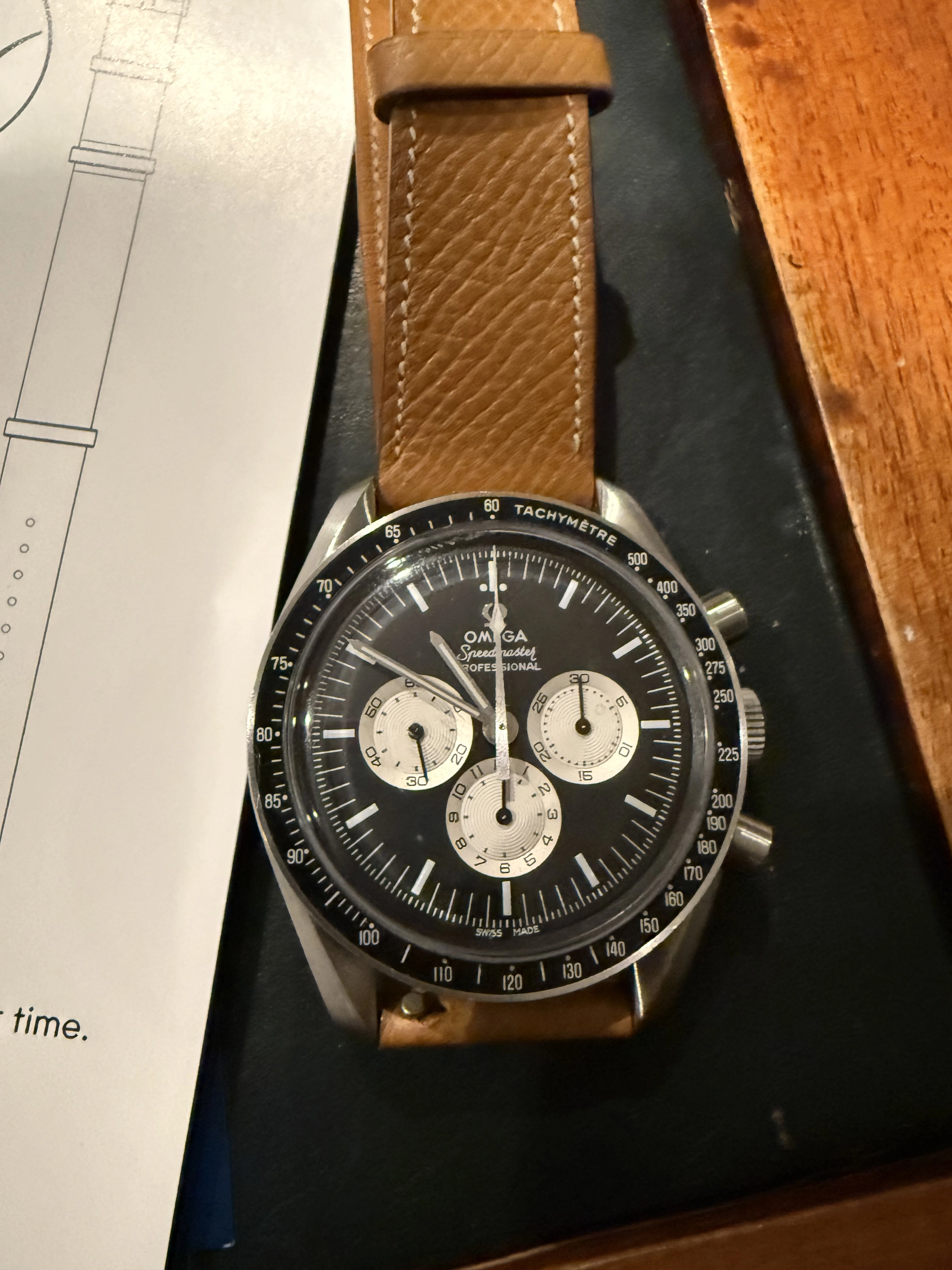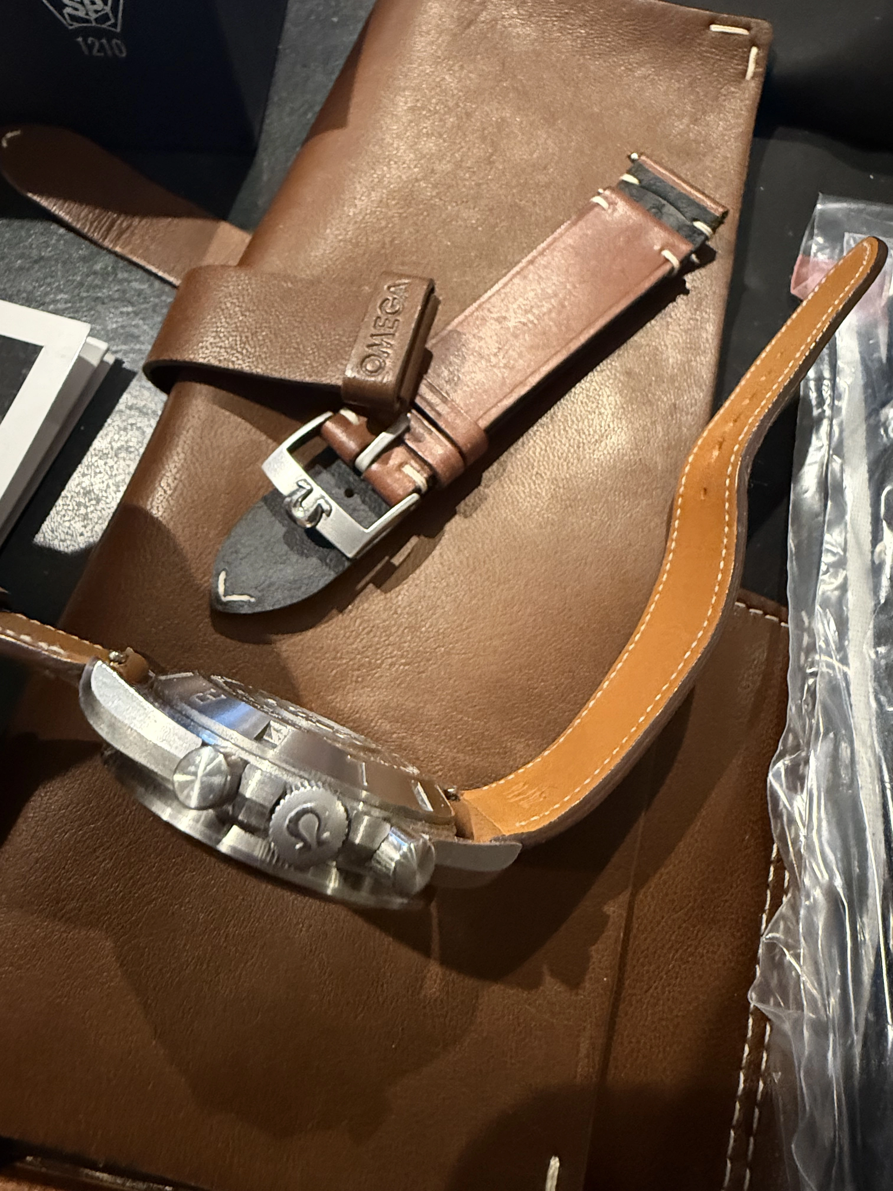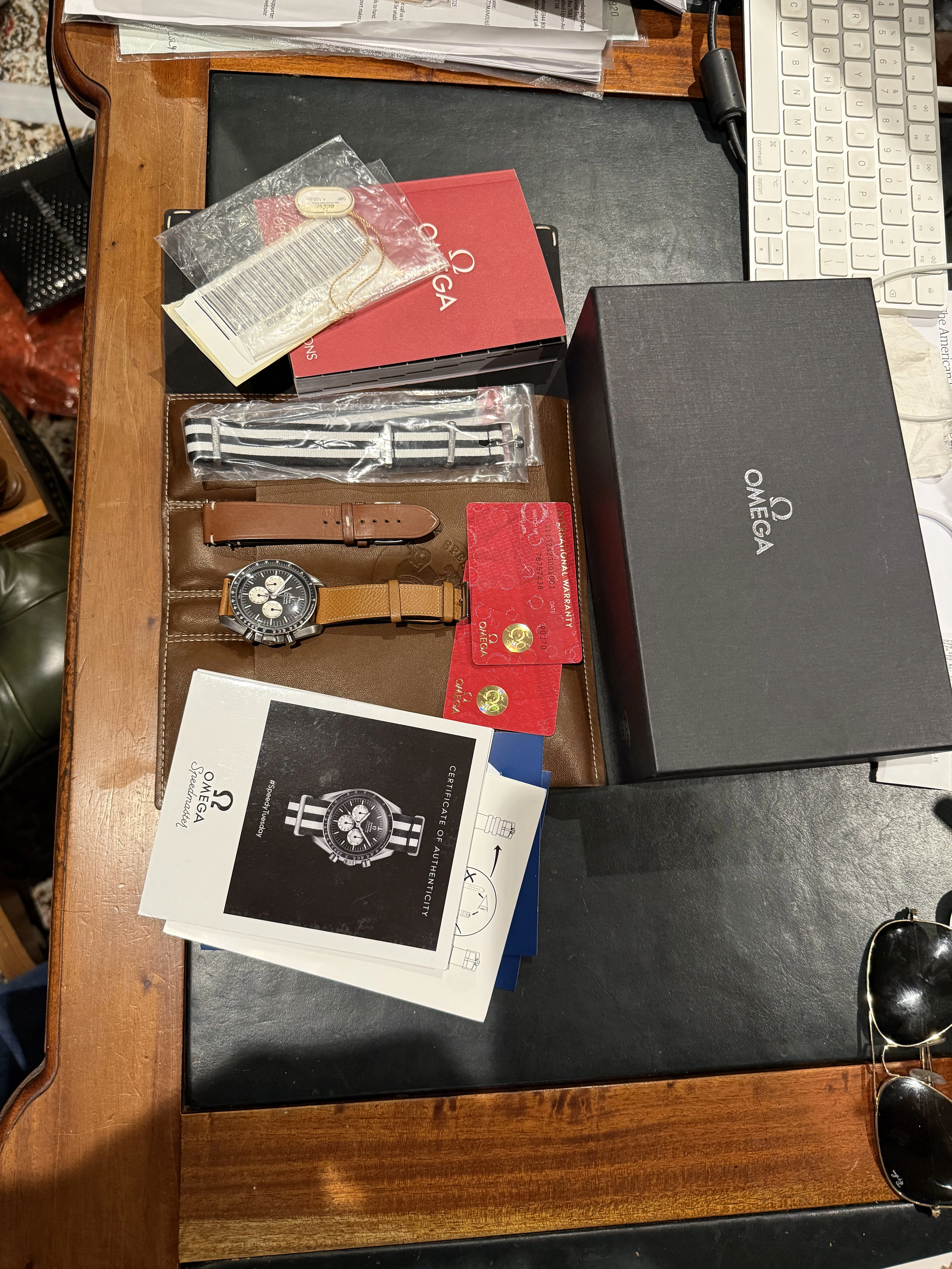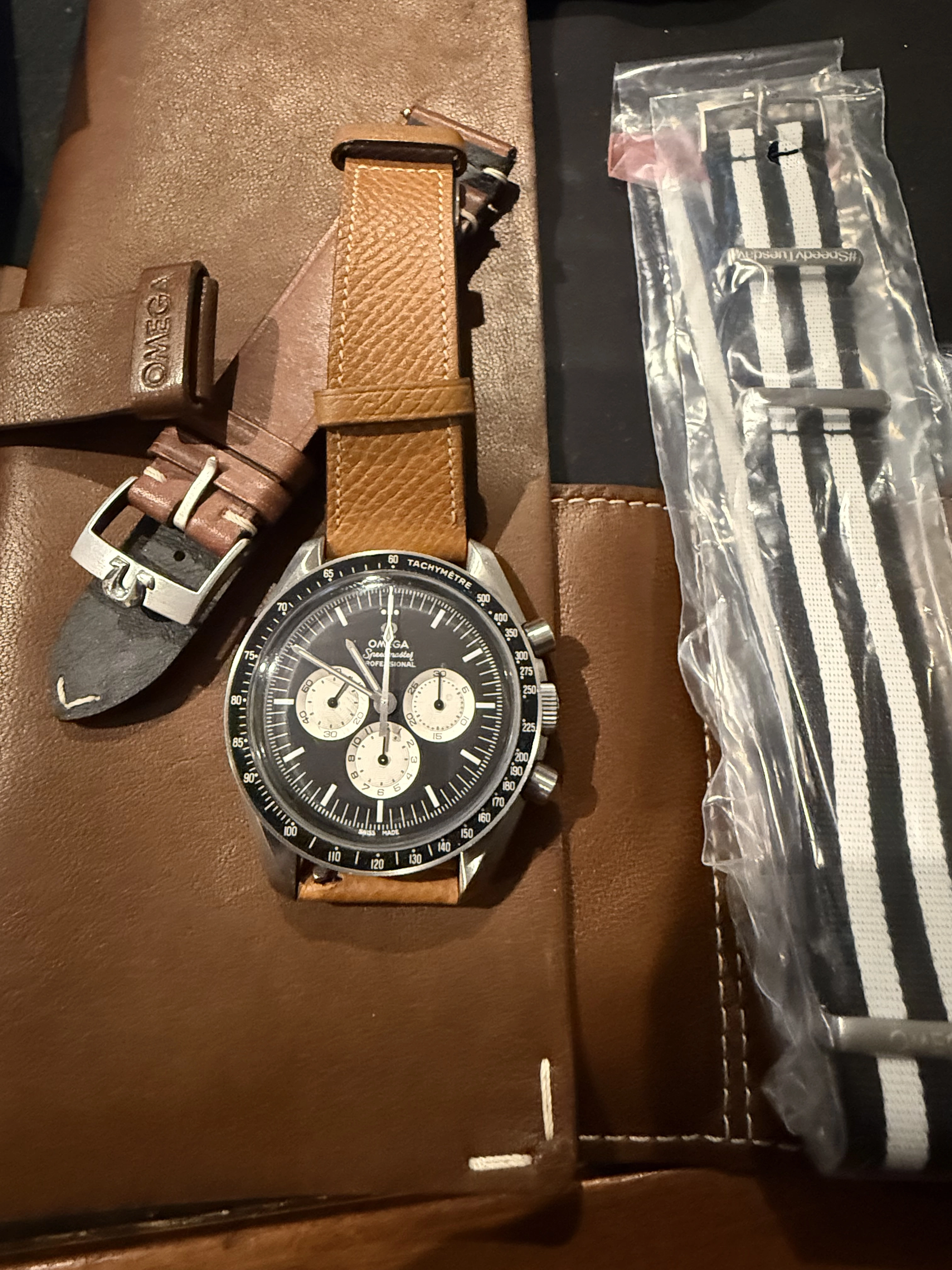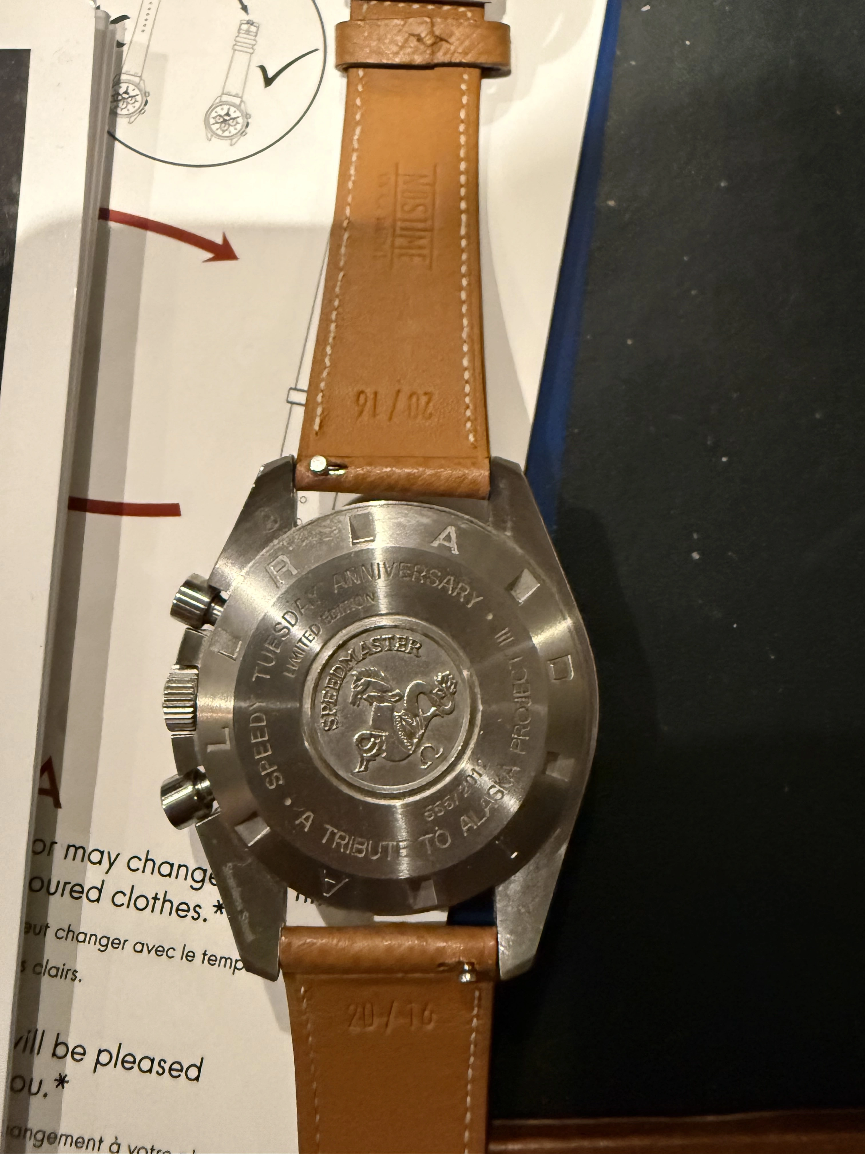 ·For sale is my full set Omega Speedmaster Speedy Tuesday. It has all cards, pouches etc and unworn original leather strap and NATO strap (it’s currently on a nice leather nostime release strap which is included. In very good condition, minor wear but no big scratches or dings.