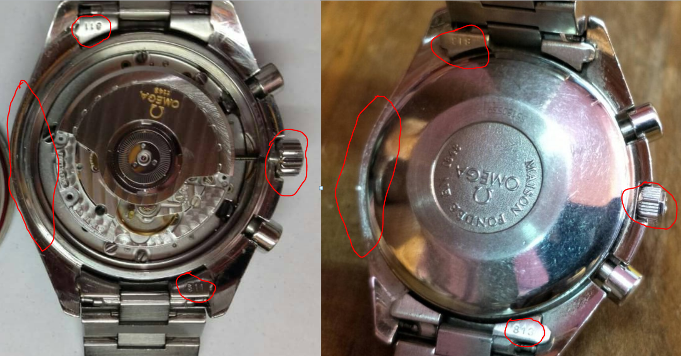 Totally agree. Everything is different. Shape of crown, bracelet end-links, shape of pusher caps, shape of the case indentation around crown ... You can also see more wear on the lug edges in one case.
