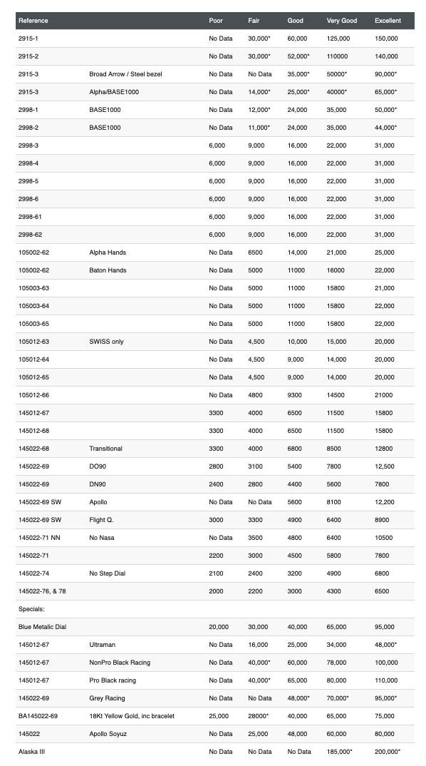 ·Our Dear William, AKA @Spacefruit has updated his price chart on Speedmaster101!