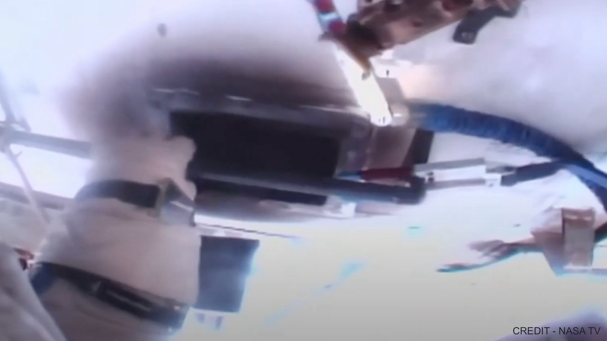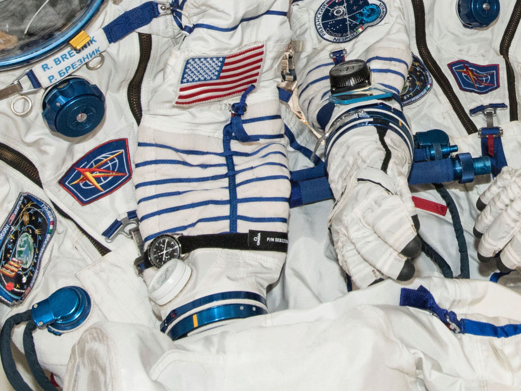 First time I've seen the long Omega OEM Velcro strap used on an EVA. The Omega Velcro straps have occasionally been seen on the watches during launch on the exterior of the Sokol suit but typically during EVAs the watches are on black elastic straps.