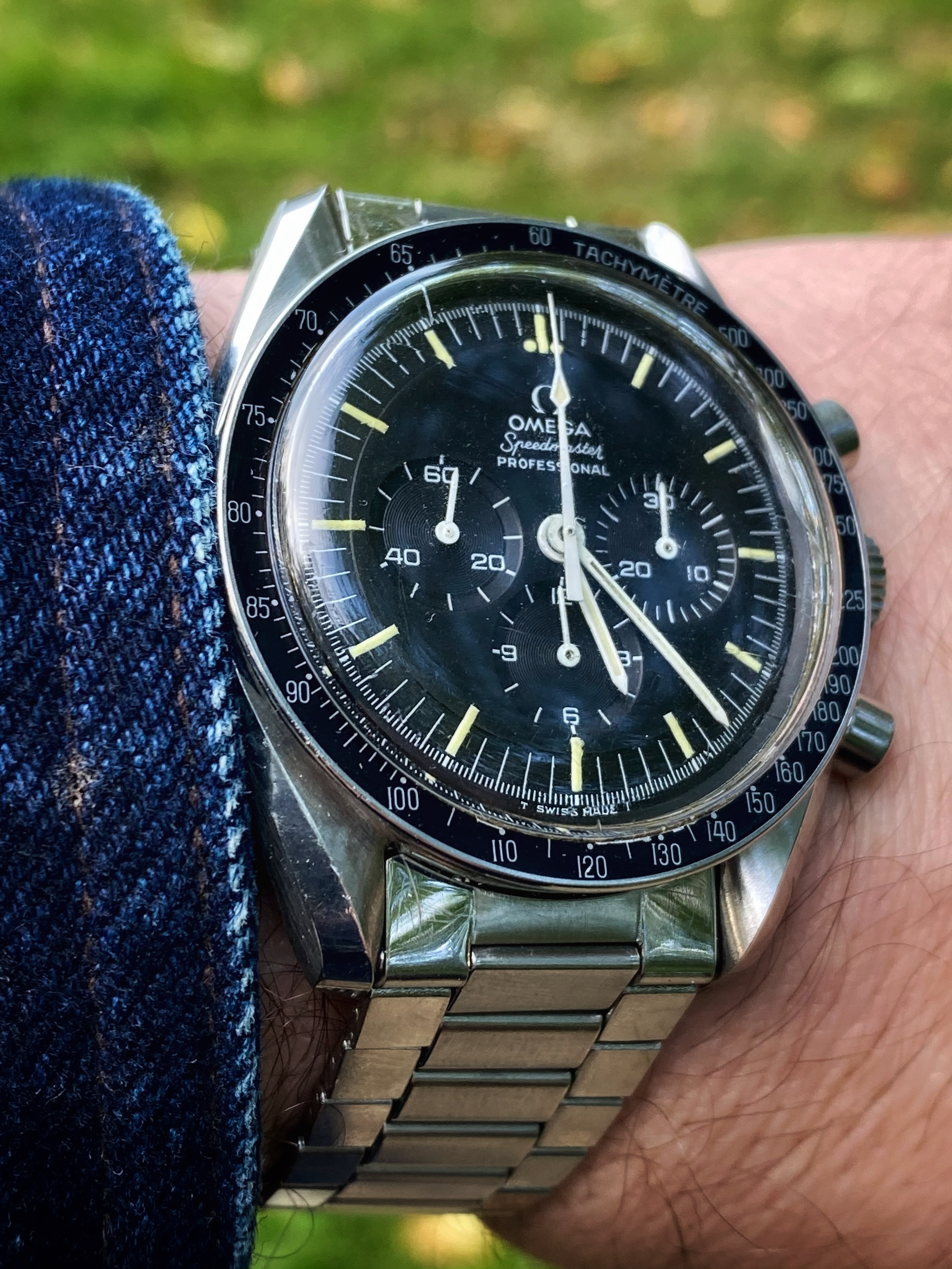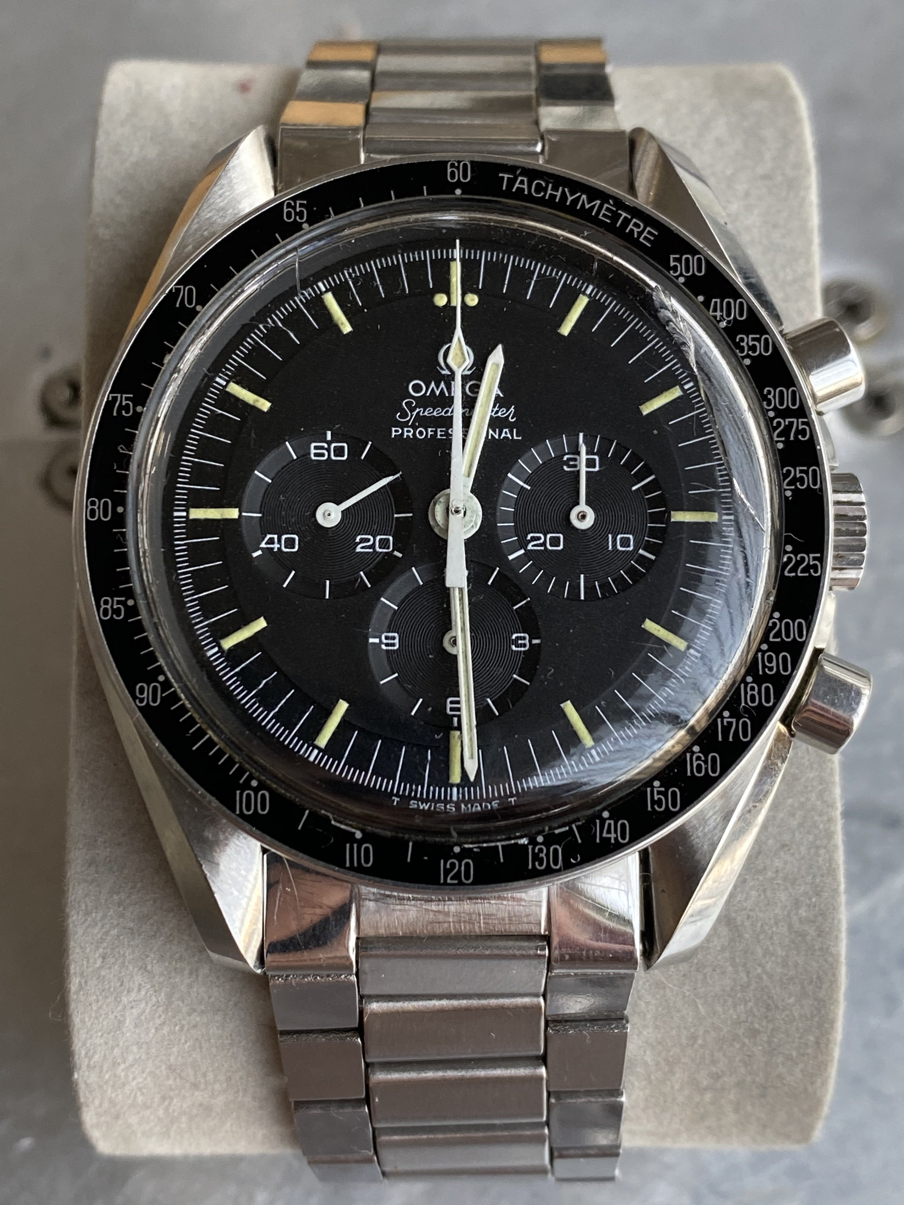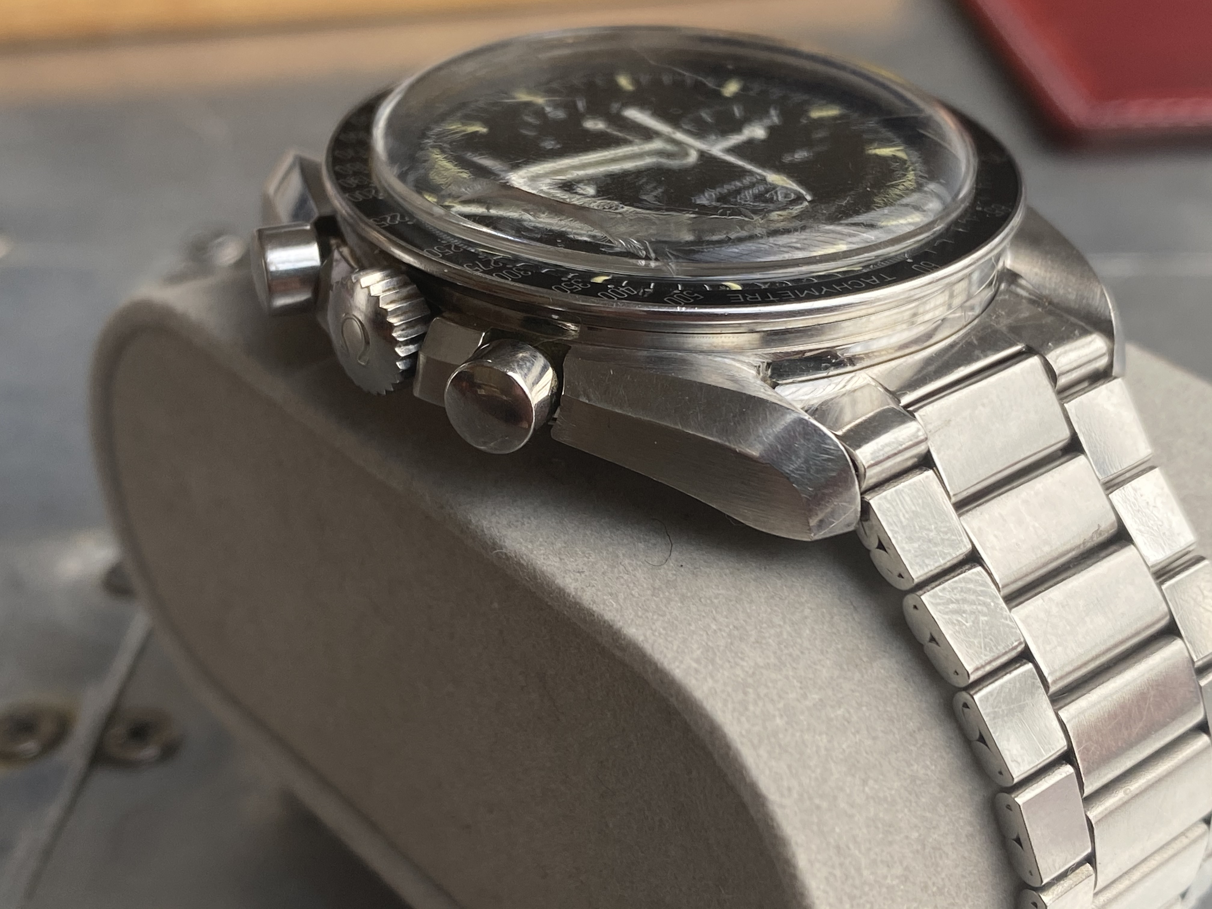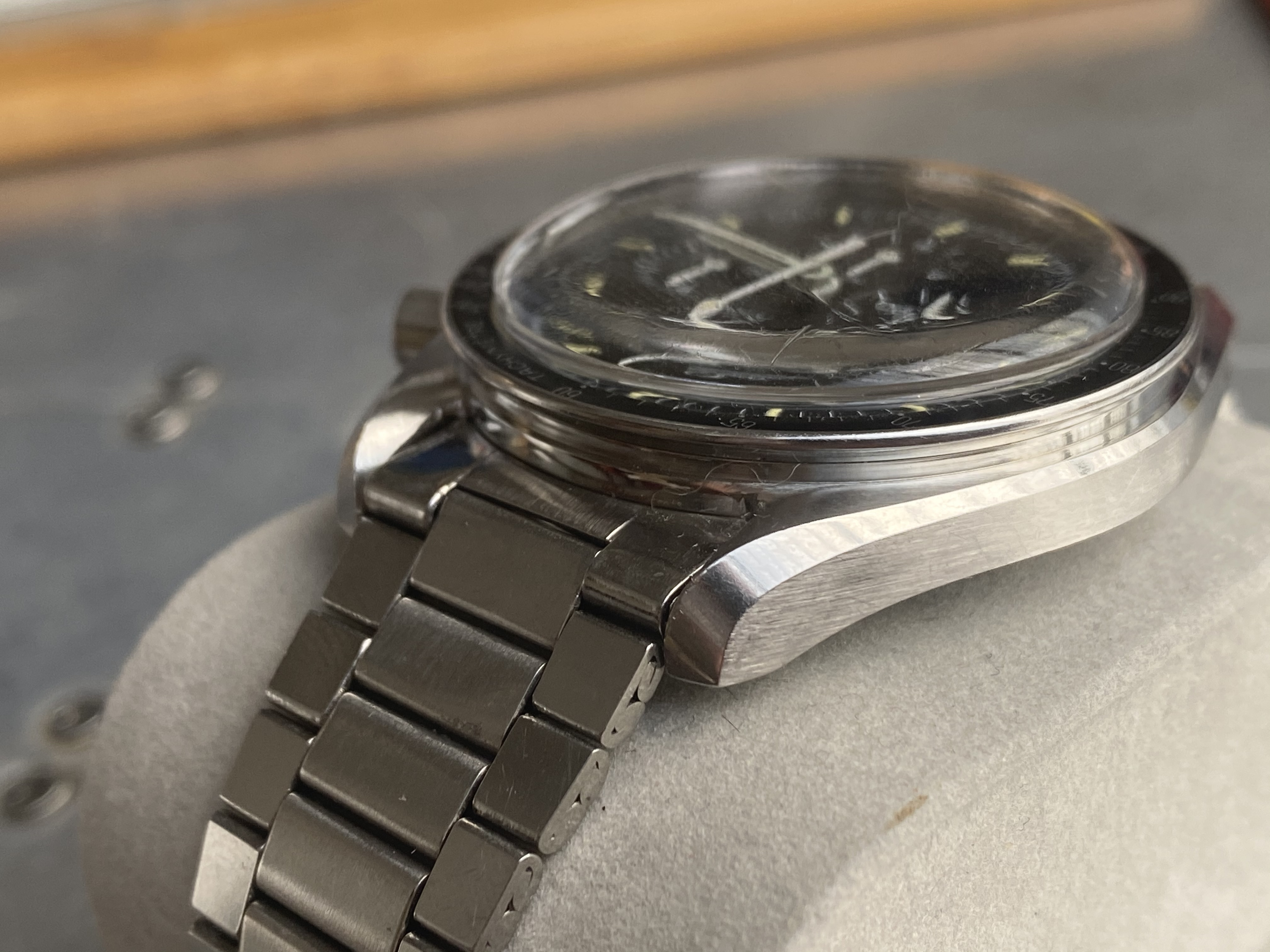 I have been spending more time than I should on trying to learn all the intricacies of the Speedmaster and have the sacred Moonwatch Only bible. When I saw this example I thought it ticked all the boxes, but I am sure that there is indeed potential for disappointment hidden in every golden cloud. I tried to really focus on condition this time around.