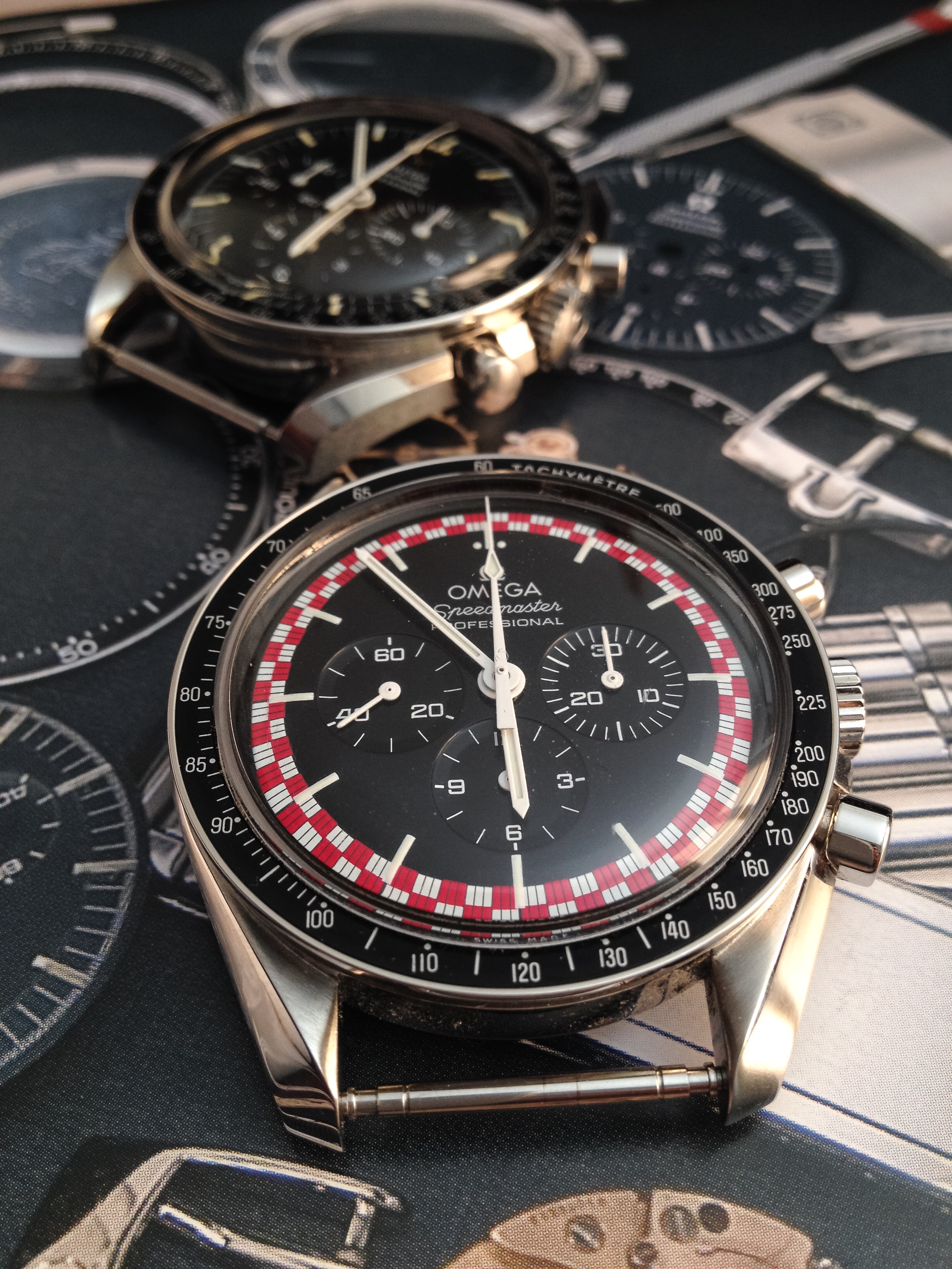 路Noticed the special effect the dial has compared to the modern Speedmaster. When you look at it from a certain angle in some light, boom eye candy! 馃グ Glitter in different colours appear. And I think I see a bit more grain on the dial as well.馃憤 Maybe a different coating is used for the tintin dial?! This dial seems more glossy to the eye. (Maybe one who actually owns the piece can confirm this?)