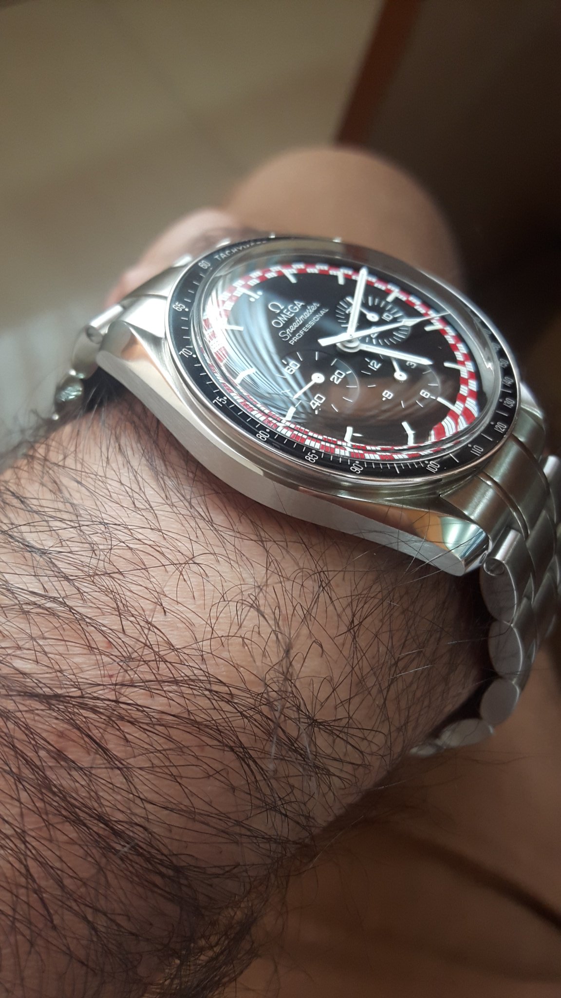 Numbers as small as 400, and as large as 5000 have been tossed around (ok, I'm tossing out the 5000 number here for the first time, I figured we need an upper bound and that's as good a number as any). Personally, I think the real number is between those two extreme's. 400 is so small that I don't really think Omega would have commissioned a new project for it, without coming right out saying "limited edition", and thus driving up the price point. We know Omega is fond of LE's being 2k or more, why would they knowingly make ~500 without the LE tag? Further, it seems reasonable to me there had to have been more movements allocated for this project, than could have just been dumped into making more standard Speedy Pro's. Why go through the hassle of special dial production for just a few hundred pieces? What makes the really low figure plausible, is the collapse of the deal with Moulinsart.. it could be Omega responded by stopping production, modifying what had already been made and just pushing those out.