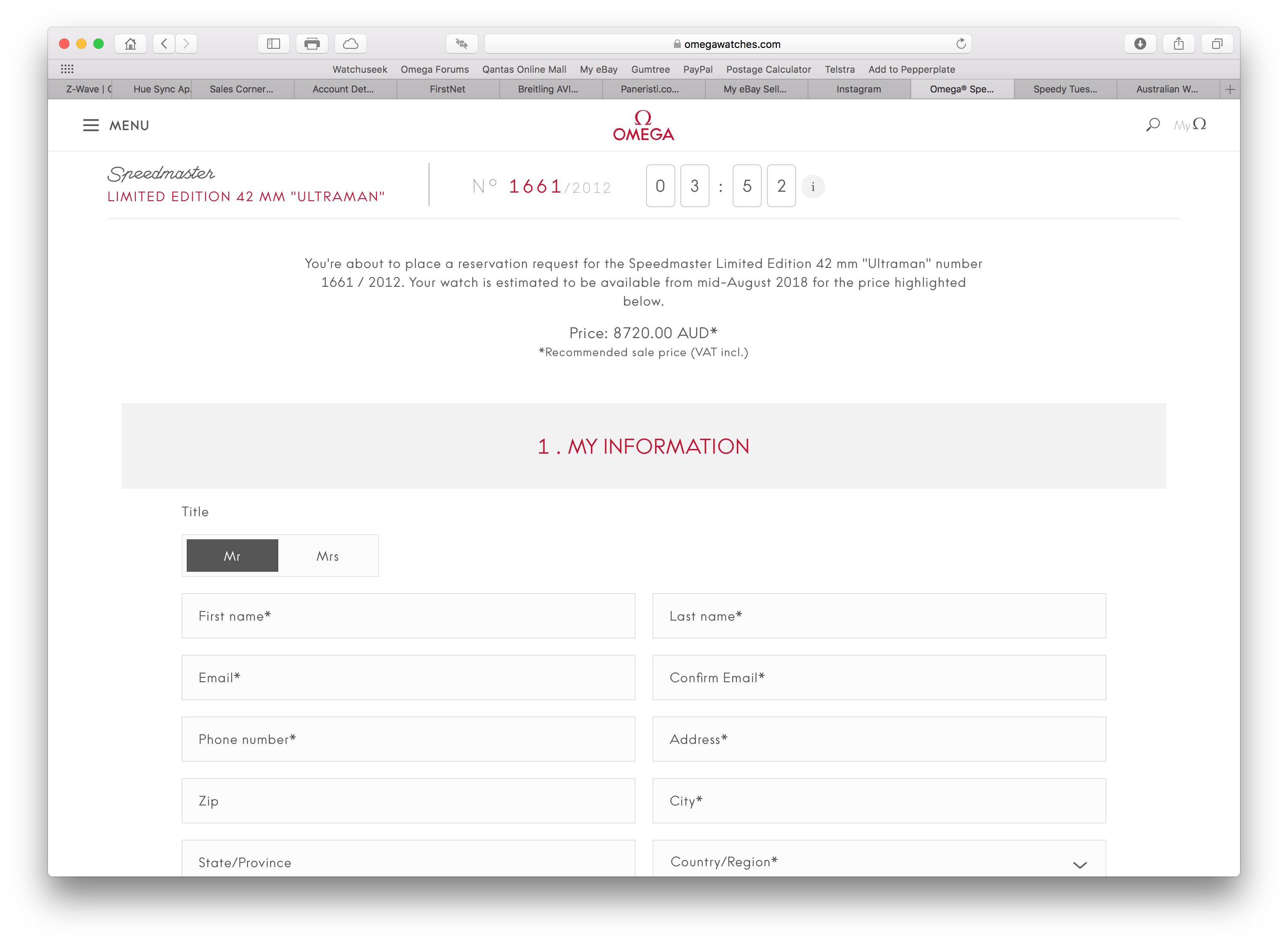 Have to say that Omega should sort out it's system for this sort of release. Not sure what the answer is, but the release time is really early for people get in on this depending on where they live. I also think they should require payment in full.