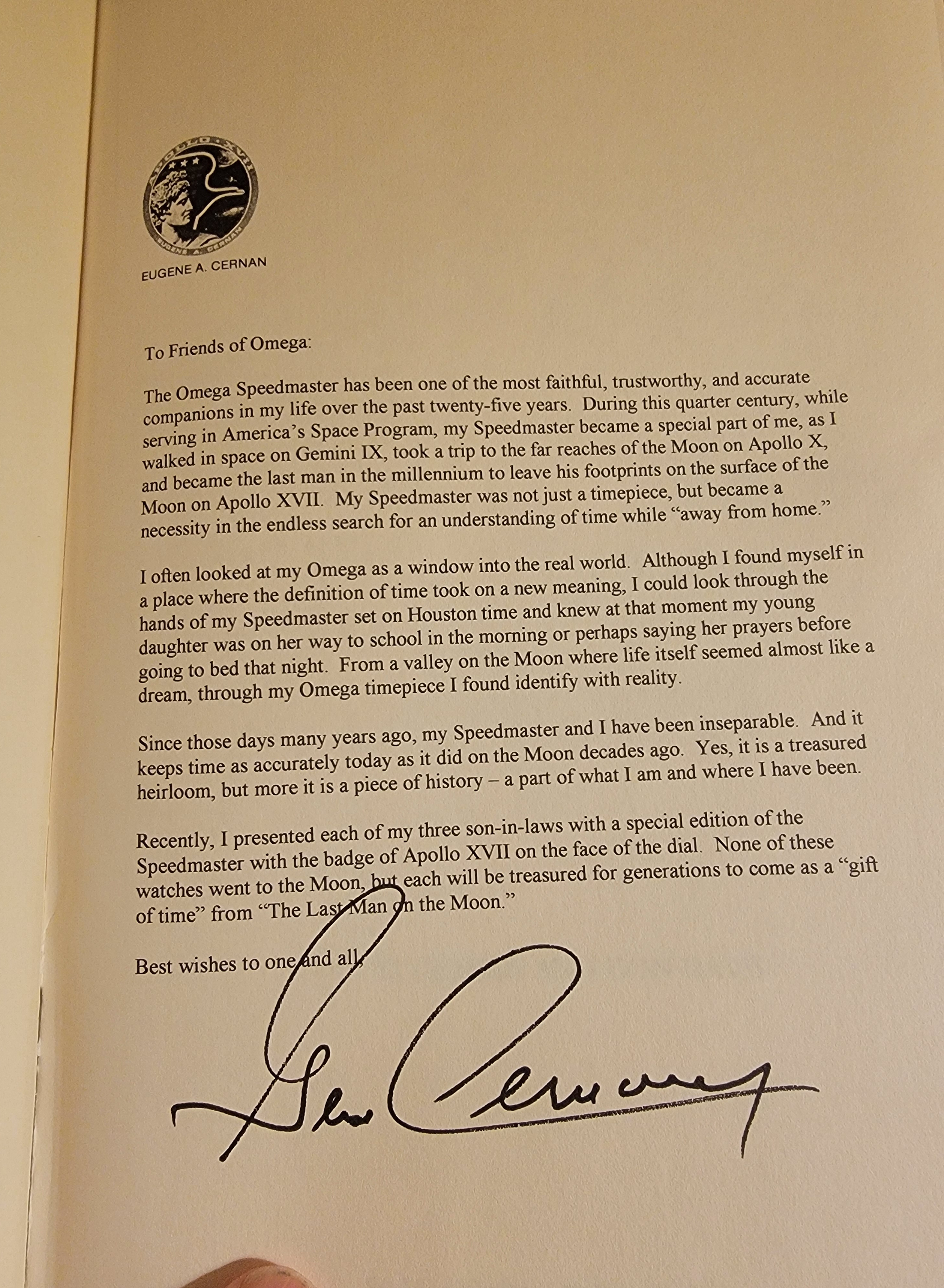 You have to remember that Gene Cernan was a Omega ambassador and was closely tied with them if I recall properly.