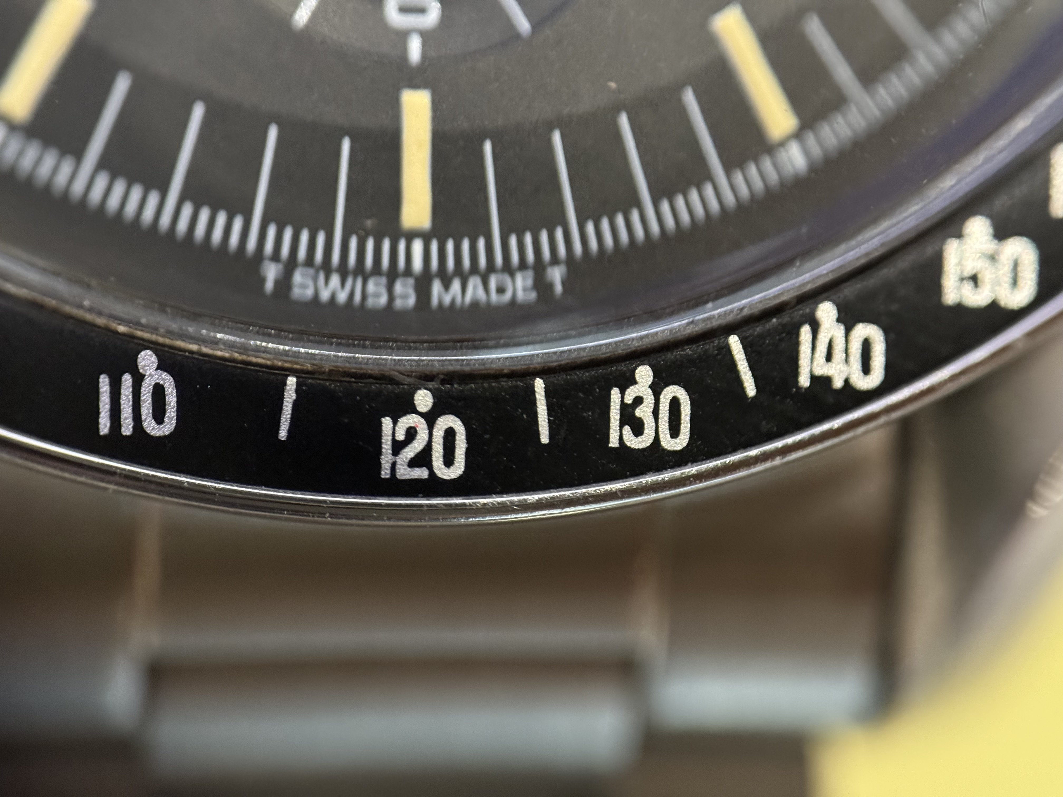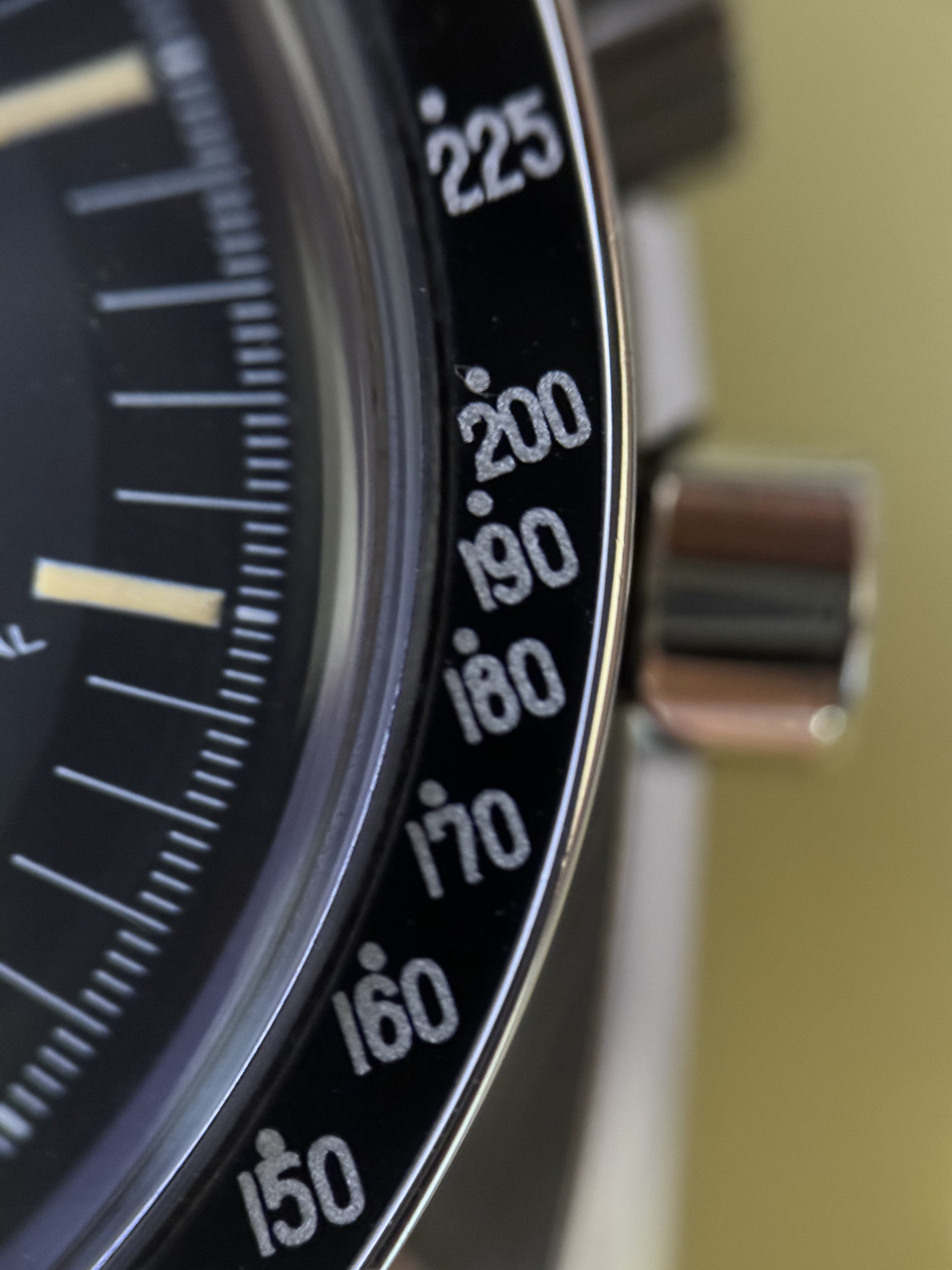 I havent seen enough of these bezels to help- but I must say that the bezel and hands look very much like the photo of Speedy Moon in MWO page 361- so I would say that you have a very nice example looks original to me! Bracelet looks original too.