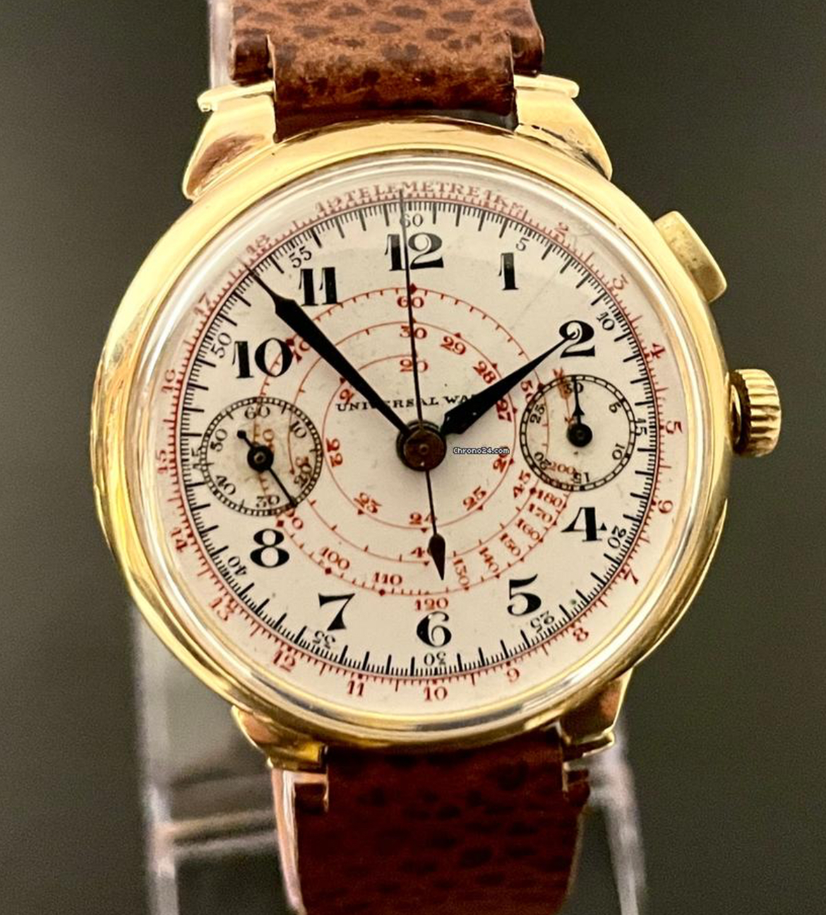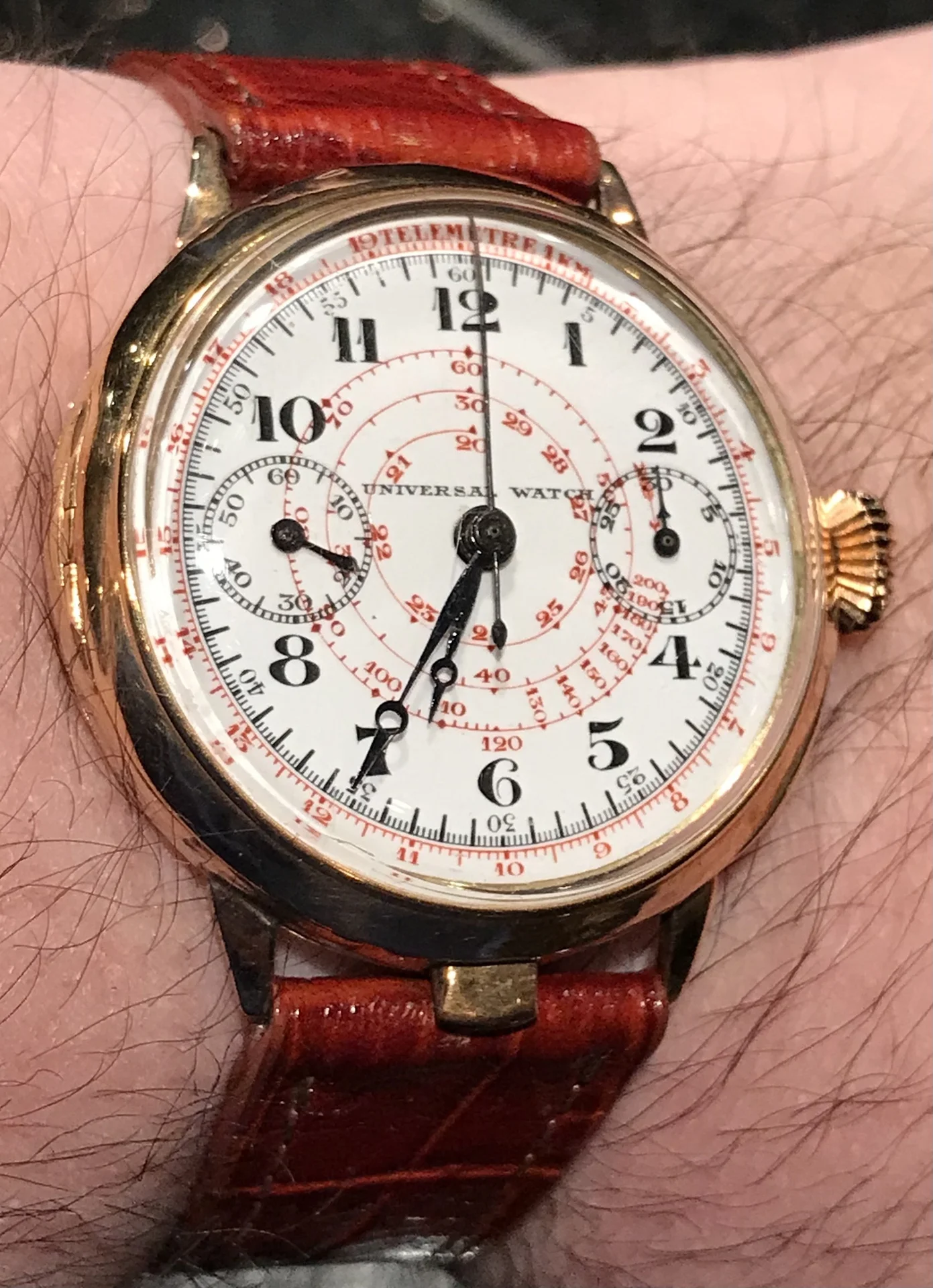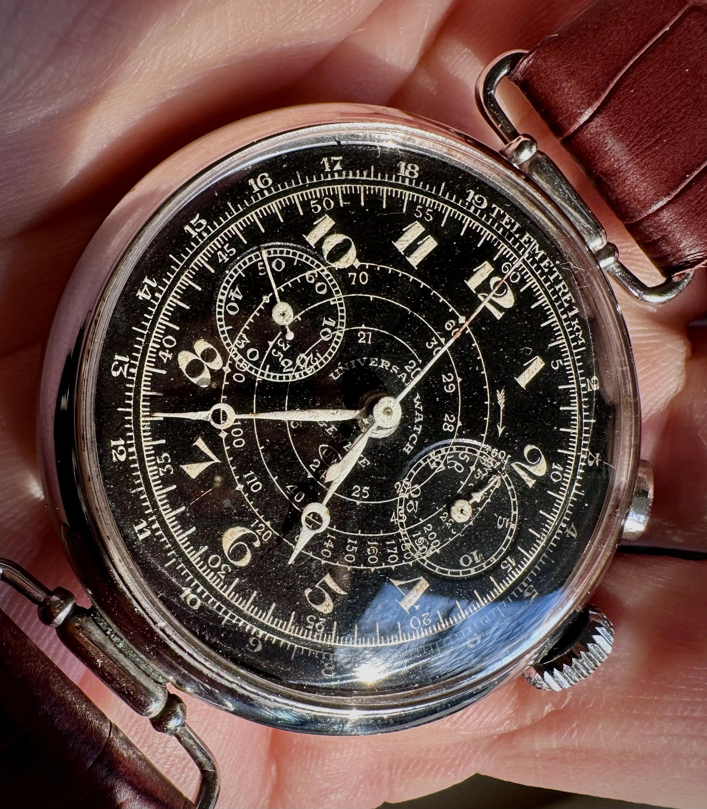 I fell in love with those 1930s and 1940s monopusher chronographs with snail-style tachymeters. I can’t explain it, but there is a consistent design across many different brands (UG, Longines, Landeron…). Yet, in a single brand, I can’t find two watches that are 100% identical as there will always be a more or less obvious difference: case size/style, typo, logo size or style, watch hands…