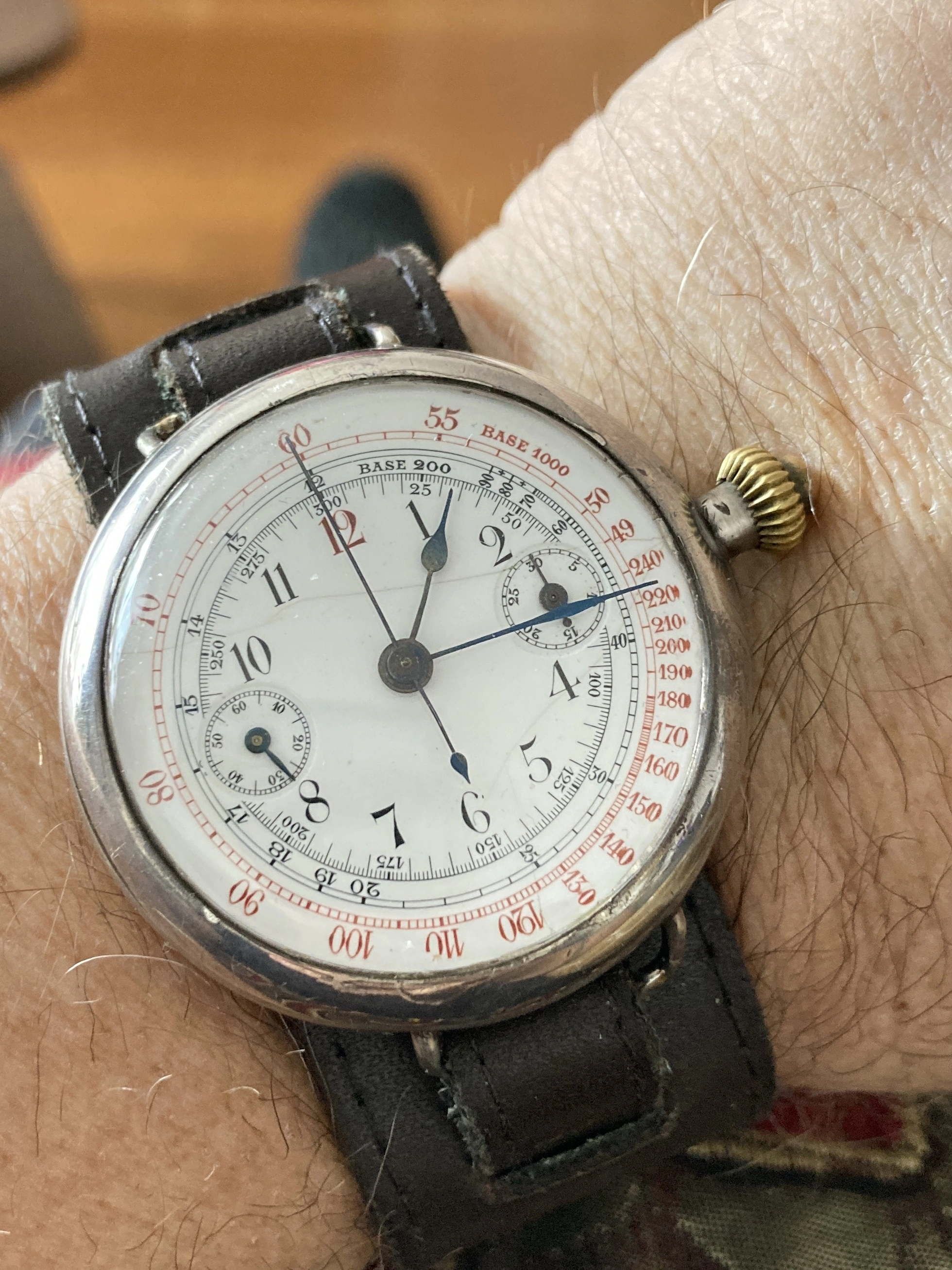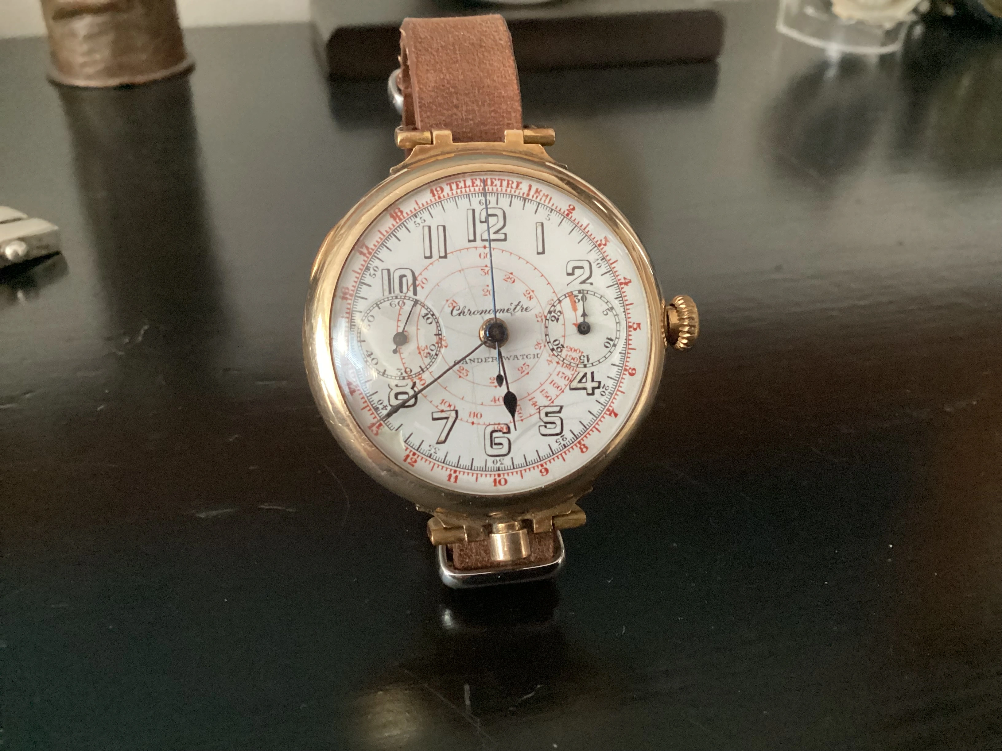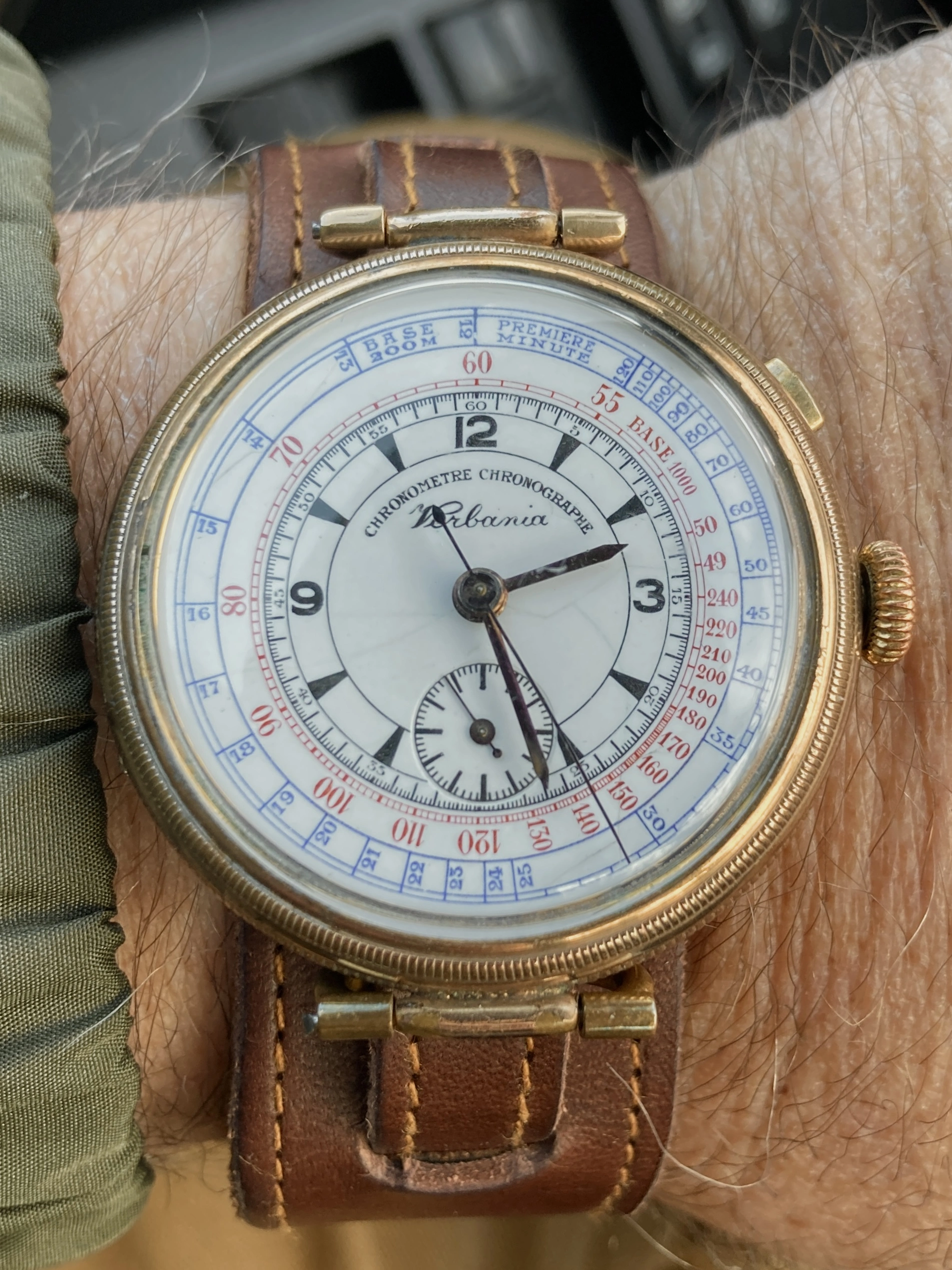 I fell in love with those 1930s and 1940s monopusher chronographs with snail-style tachymeters. I can’t explain it, but there is a consistent design across many different brands (UG, Longines, Landeron…). Yet, in a single brand, I can’t find two watches that are 100% identical as there will always be a more or less obvious difference: case size/style, typo, logo size or style, watch hands…
