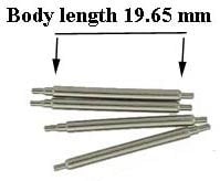 These two spring bars are advertised as being for pierced lugs. They have vey similar specifications, but one is shoulderless on both sides, whereas one has a single shoulder on one side: