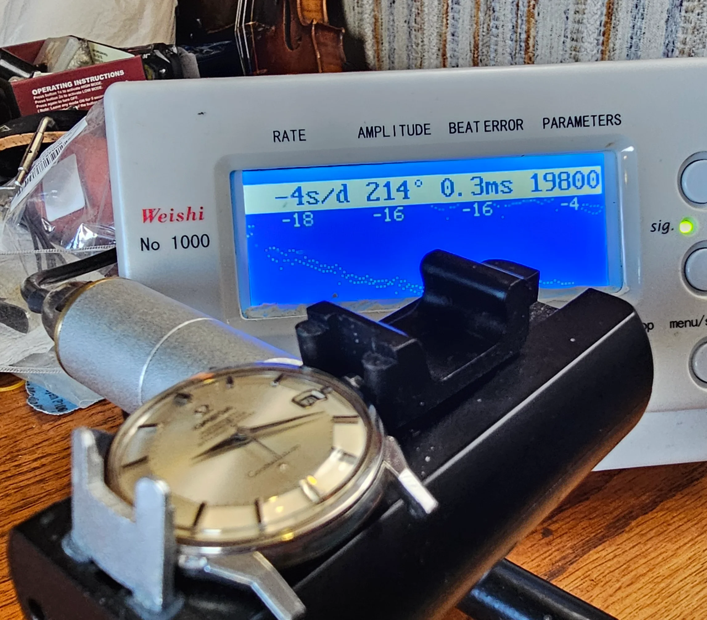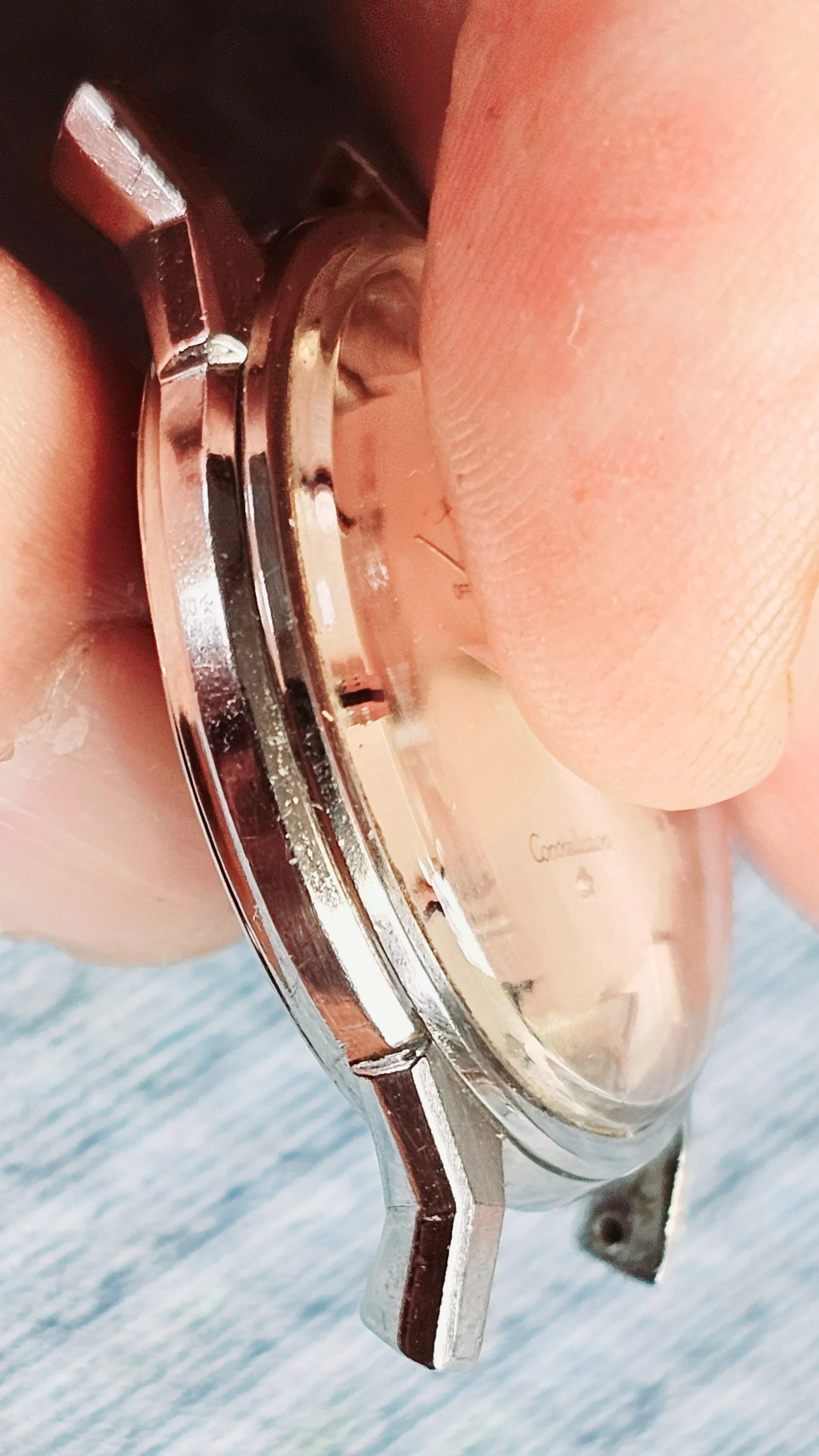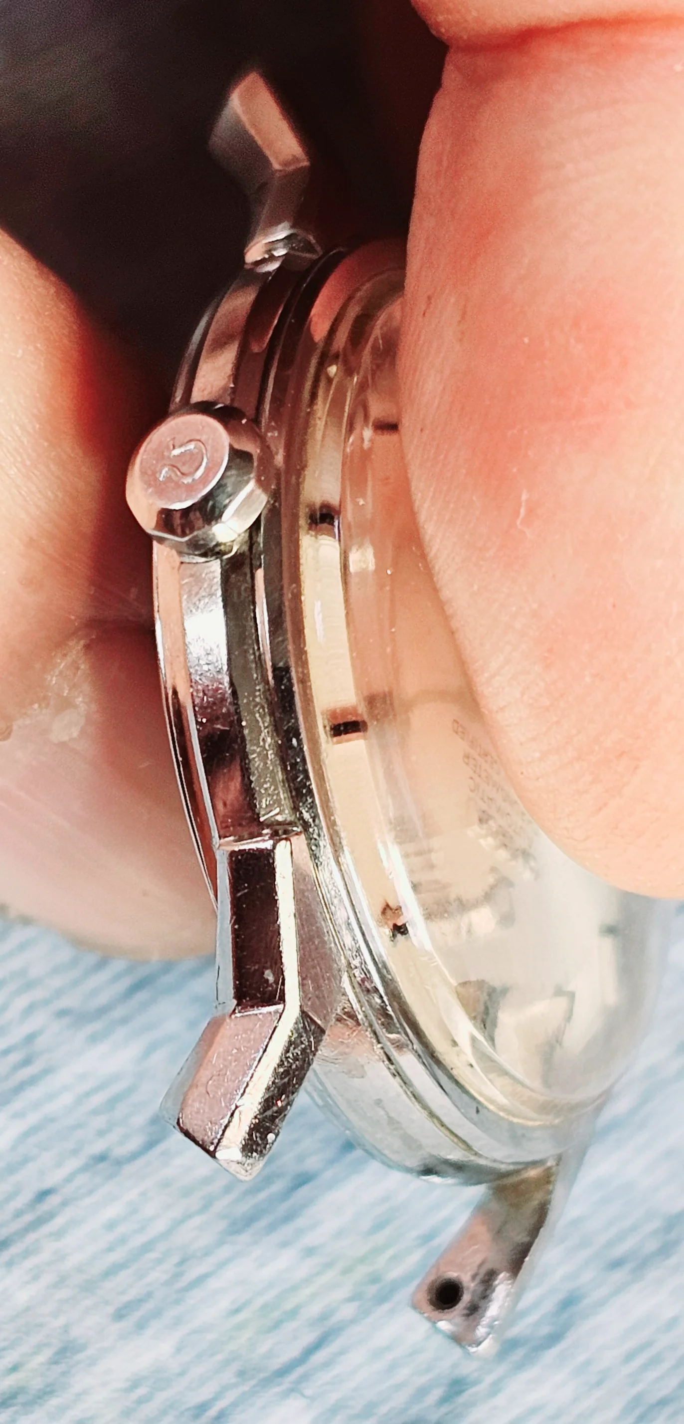It is running and keeping time but I think it needs a cleaning and lubrication soon. There is no sign of rotor touching the case back or anything. The old yellow gasket is still there and there is a small Omega logo in the middle of the crystal.