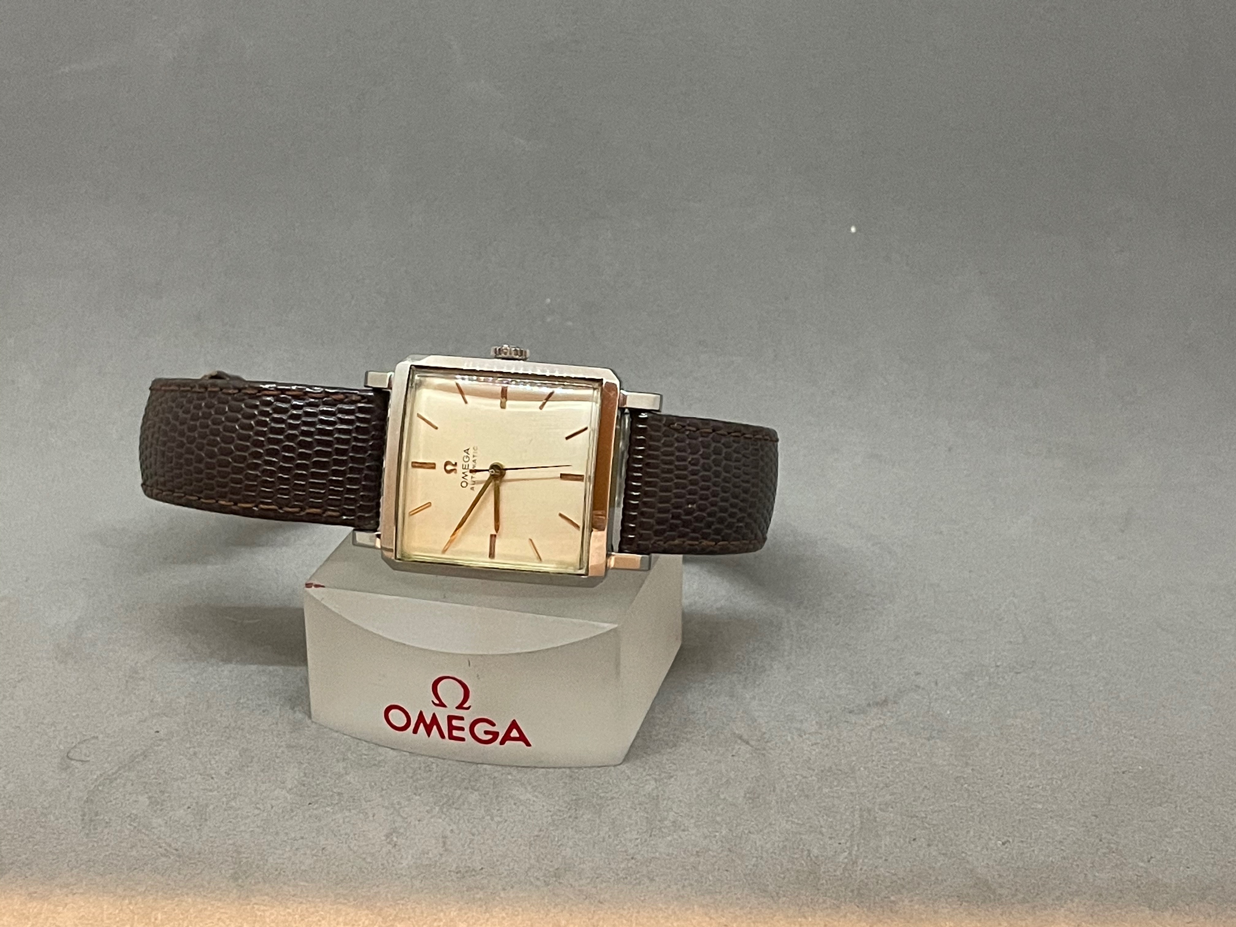 Case/dial/crown are all in excellent condition for a 65 year old watch, hands are showing their age a bit more. Strap is a brown textured leather with deployant buckle that "might" be something exotic.
