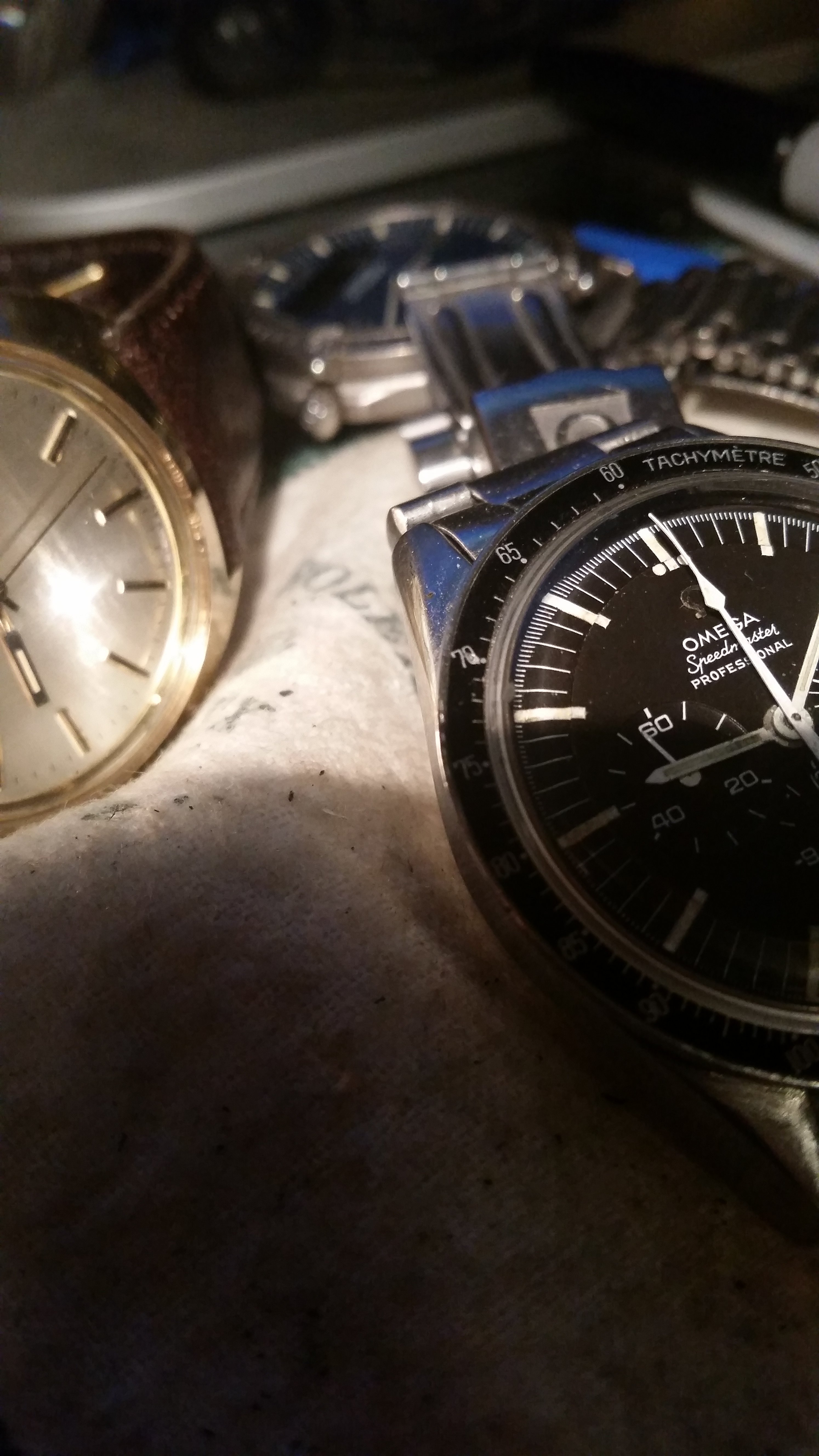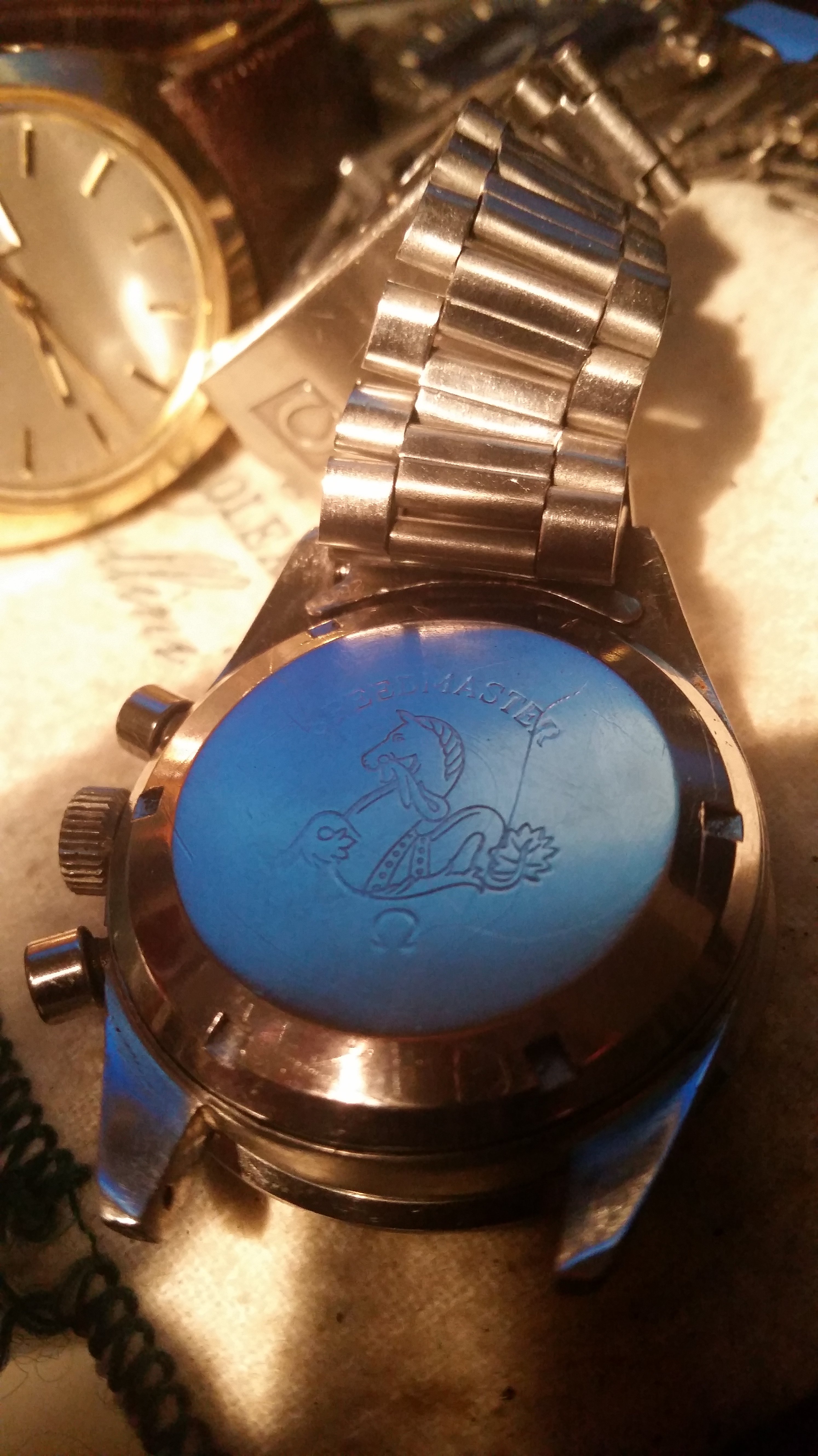 ·I own a Speedmaster ST105.003 serial number 25008349 which I believe was made in the 1964-67 period. Everything seems correct. Case has straight lugs and no crown guard. Bezel is dot over 90. Caseback is signed 105.003 HF. Dial has the applied Omega logo, and the hesalite cryatal has the etched logo. The only thing is that it has the word PROFESSIONAL under the word Speedmaster. I have heard different theories about this. One is that Omega was making both type of dials during that time and that the dial might, in fact, be original to the watch . Another is that the dial was replaced during a factory service that occurred sometime before Omega replaced the applied logo with the painted one. According to the Omegawatches.com site, the 105.003 was produced between 1963-69. This overlaps the production dates of the 105.0012 (1963), 145.0012 (1966), 145.0022 (1968). Most of the ED WHITE speedys that you see have the dial without the word PROFESSIONAL, but I am wondering if the dial on my watch could be authentic?