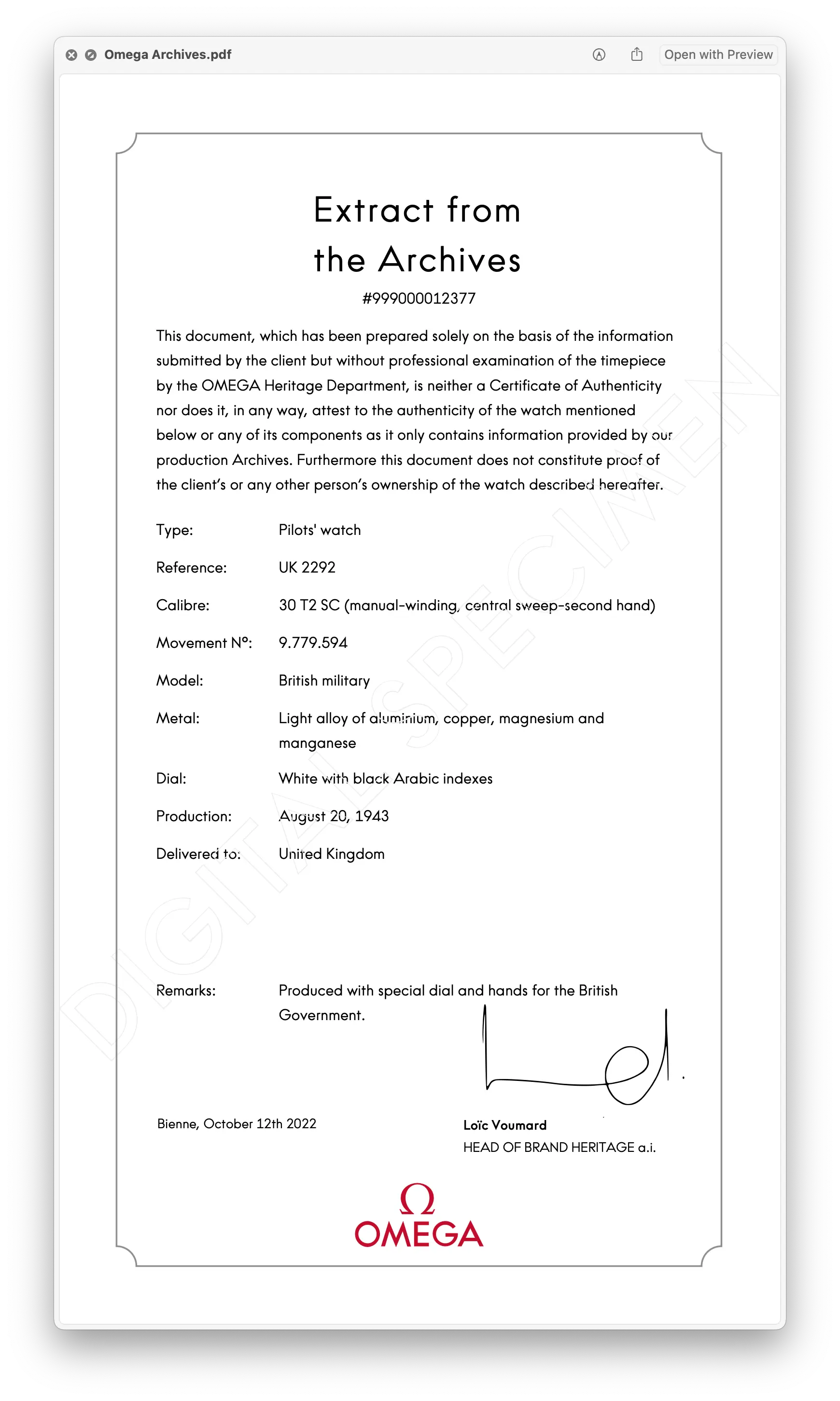 Does it mention spitfires, I thought the 2292 was a navigator timepiece, with the spitfire watch having a hack facility, but there are a lot of posts online which describe the 2292 as a spitfire pilots watch, either for romantic embellishment or simply by mistake.