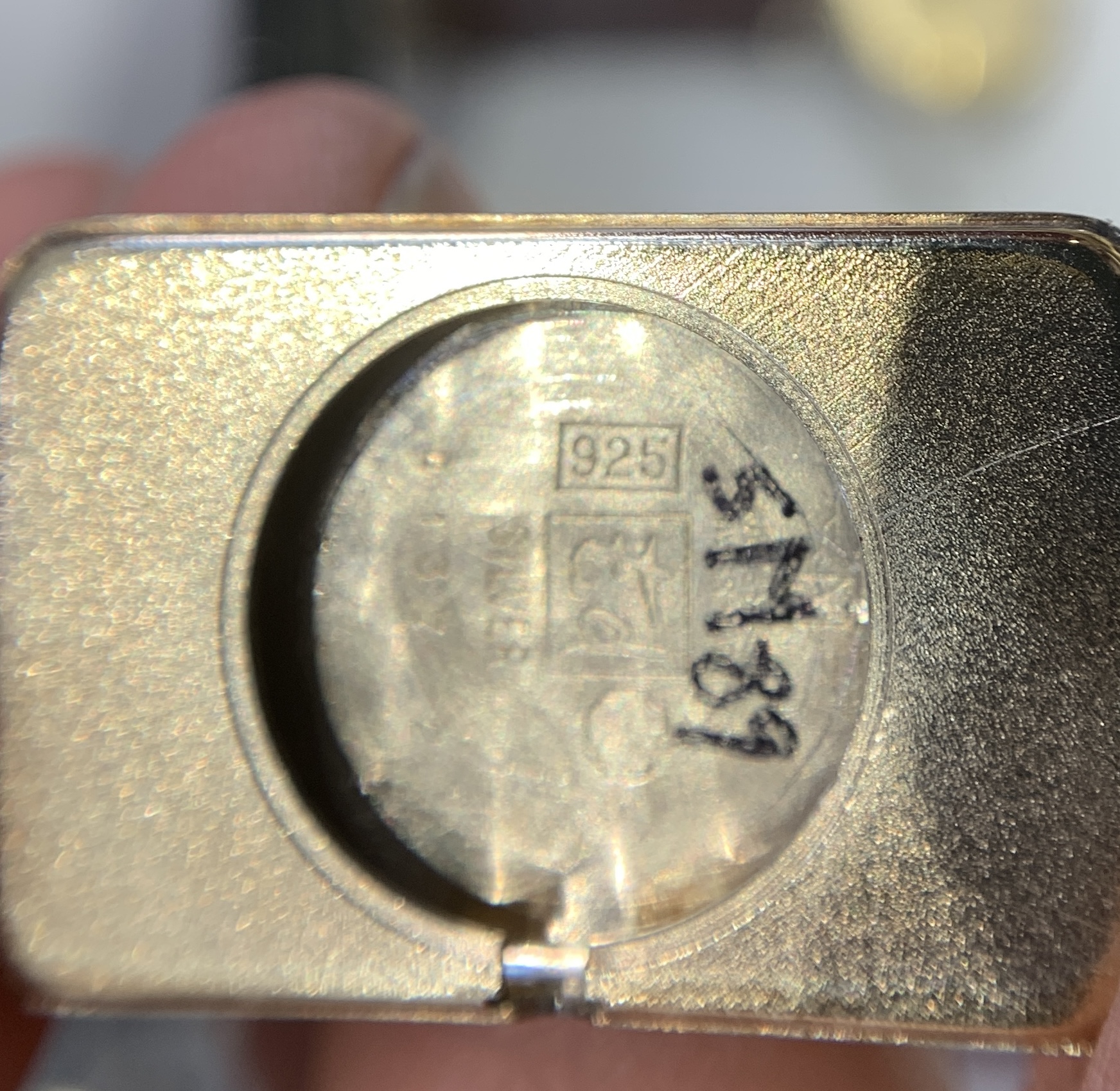 They did this one in solid sterling silver, then similar to Cartier, plated gold overtop. Wear/fading as you can see, but gives it a cool look and still very presentable I think. Macro of the silver hallmark, French swan: