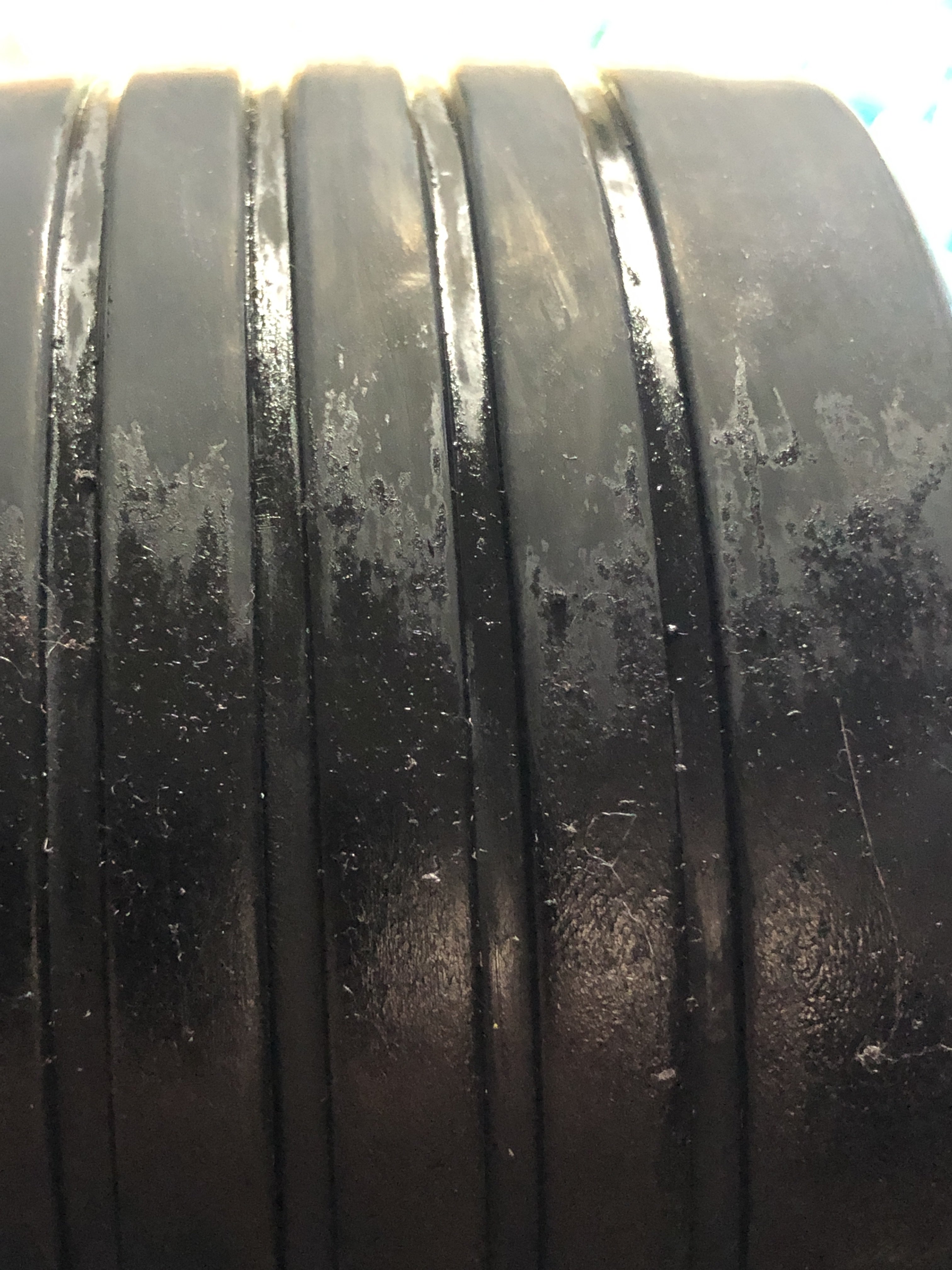 I simply used an old watch cleaning cloth and after about 15 mins, the "tyre" was back to normal.