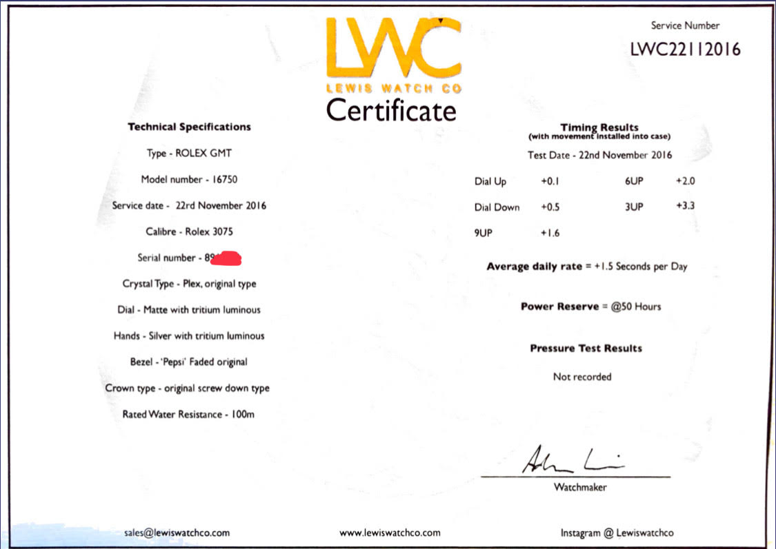 Comes with certification of originality from authenticity and service from Lewis Watch Co (2016), a very reputable watchmaker based here in Australia.