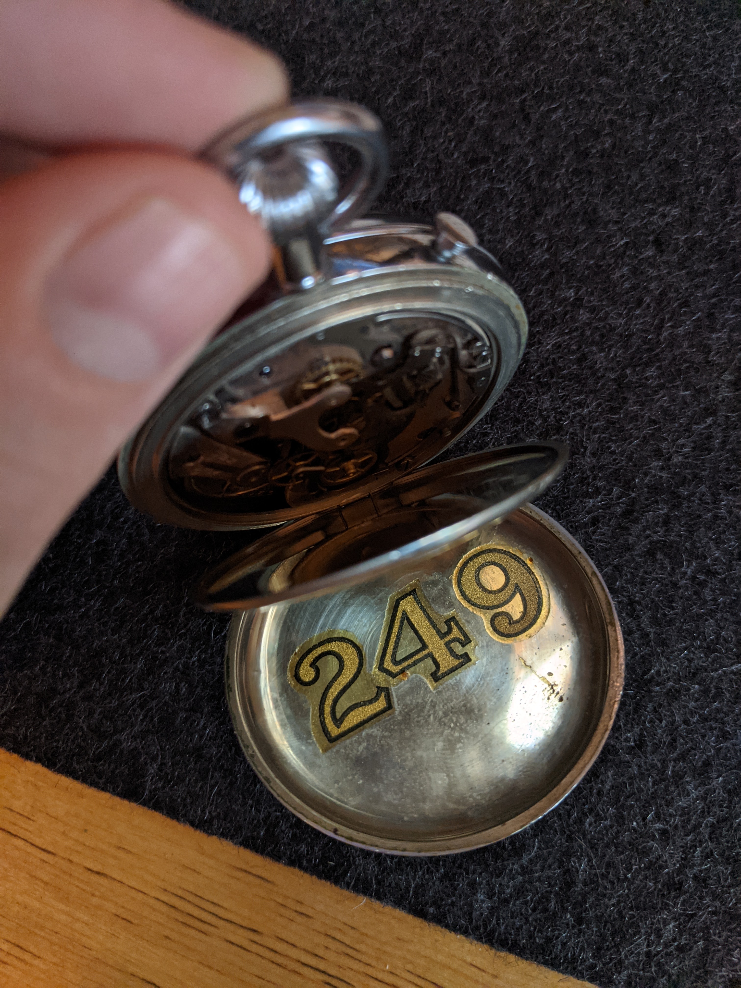3. There are two layers of chassis covering the internals. Both were impossible to open by hand. The first layer has a large sticker with the numbers 249. They don't represent anything specific about my grandfather but am I right in assuming this is not from the manufacturer? In the internals there is a small engraving of the numbers 386033 almost like a serial number.
