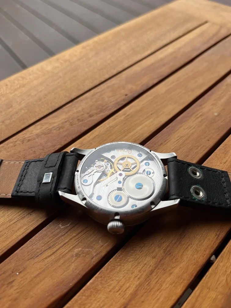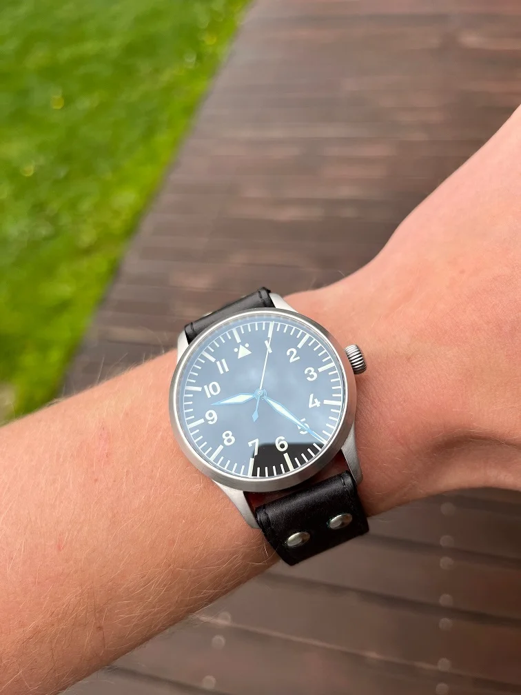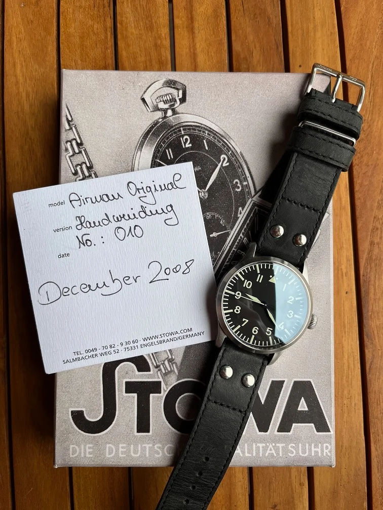 The 80 Stowa Flieger Original LE (FOLE) were sold out in minutes. In addition, there were also very small quantities of the watches without the ‘golden bridge’ but with the swan-neck fine adjustment. This is exactly the version we are talking about here - Flieger Original FO1. It is estimated that only 70 FO1 watches were made, so they are rarer than FOLE.