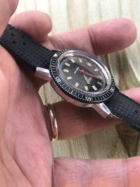 Next is these two vintage divers that look almost NOS. The Waltham has it's nice super soft and flexible original rubber dive strap too. Stunning looker and runs like a champ.