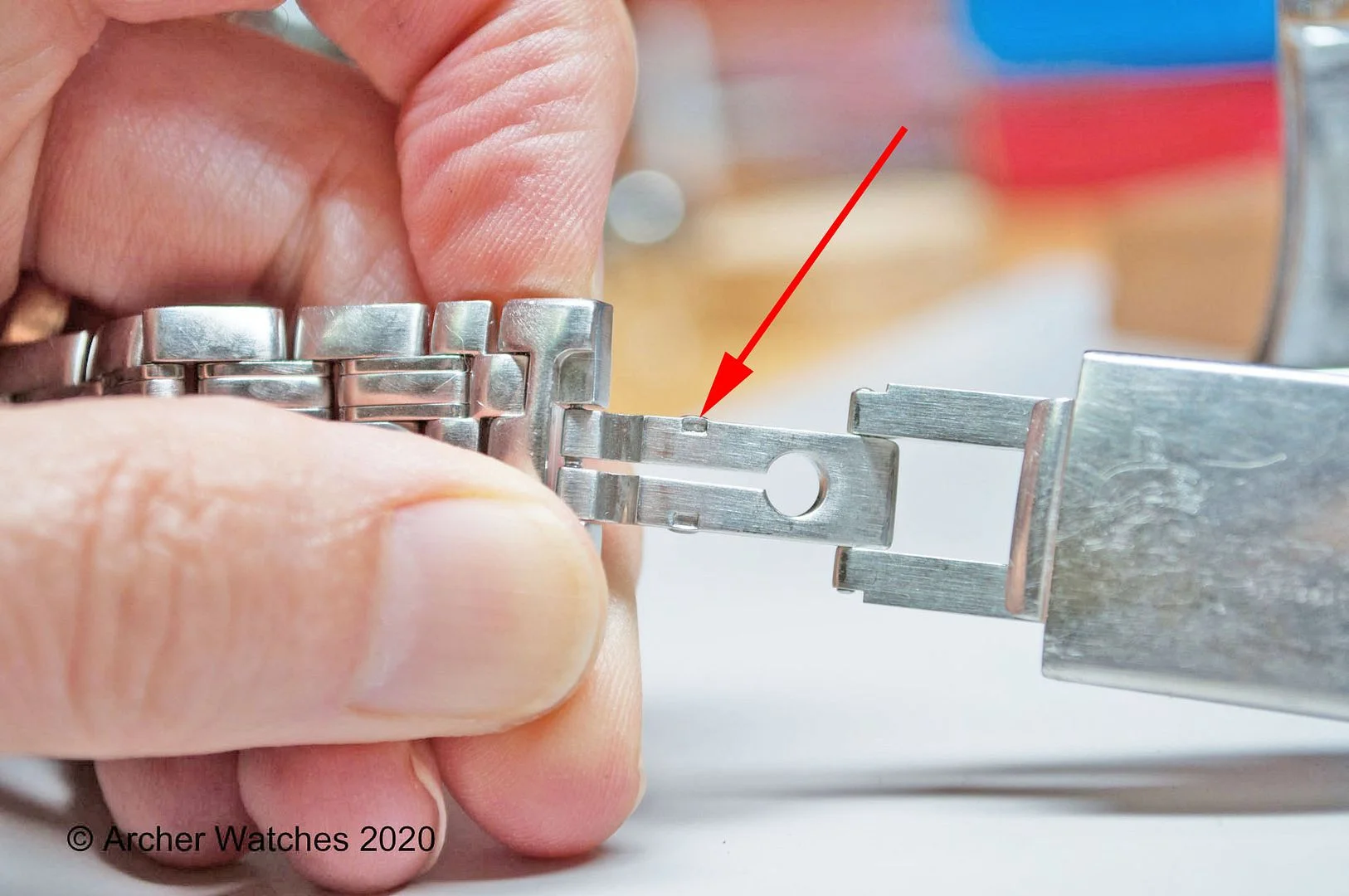 1. Laser engraving: I've never seen it on models like this. It has 825 engraved on the end links, some engraving on the clasp, and 23 S HBE on one of the end links.