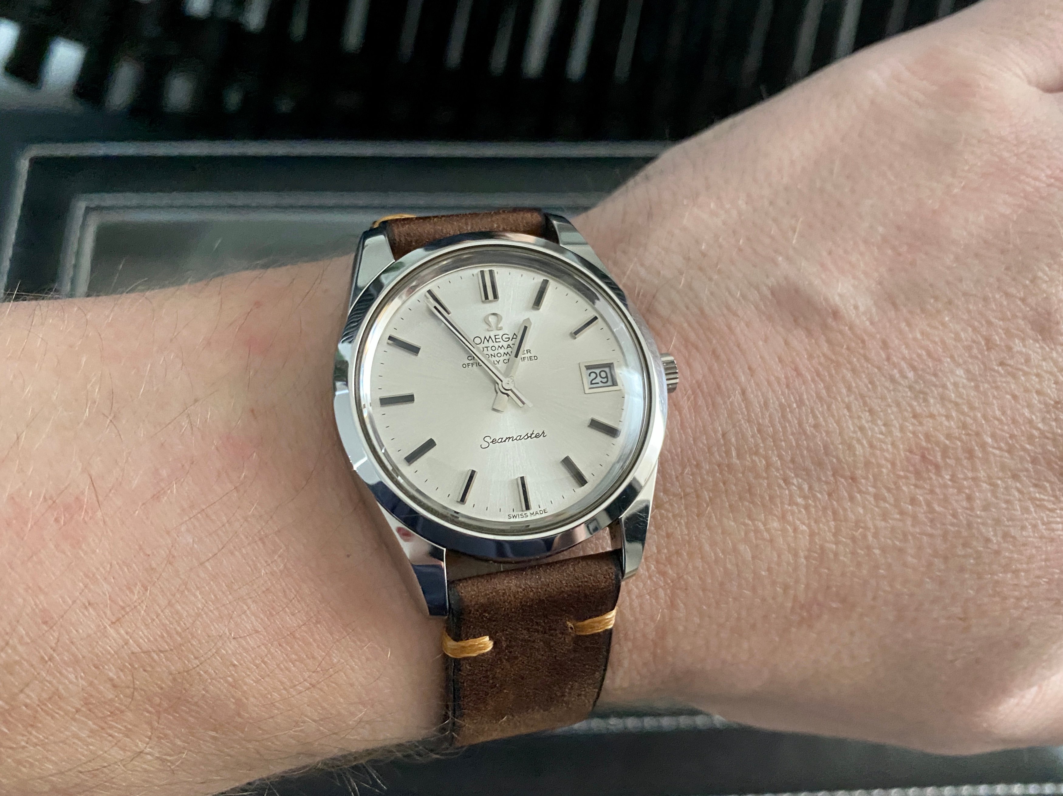 I am looking for a watch strap to suit the attached watch that I have purchased recently off the forum as the strap isn't included (not received the watch yet but hopefully won't be too long!). The watch will be sent for a full service once received to bring it back to it's former glory.