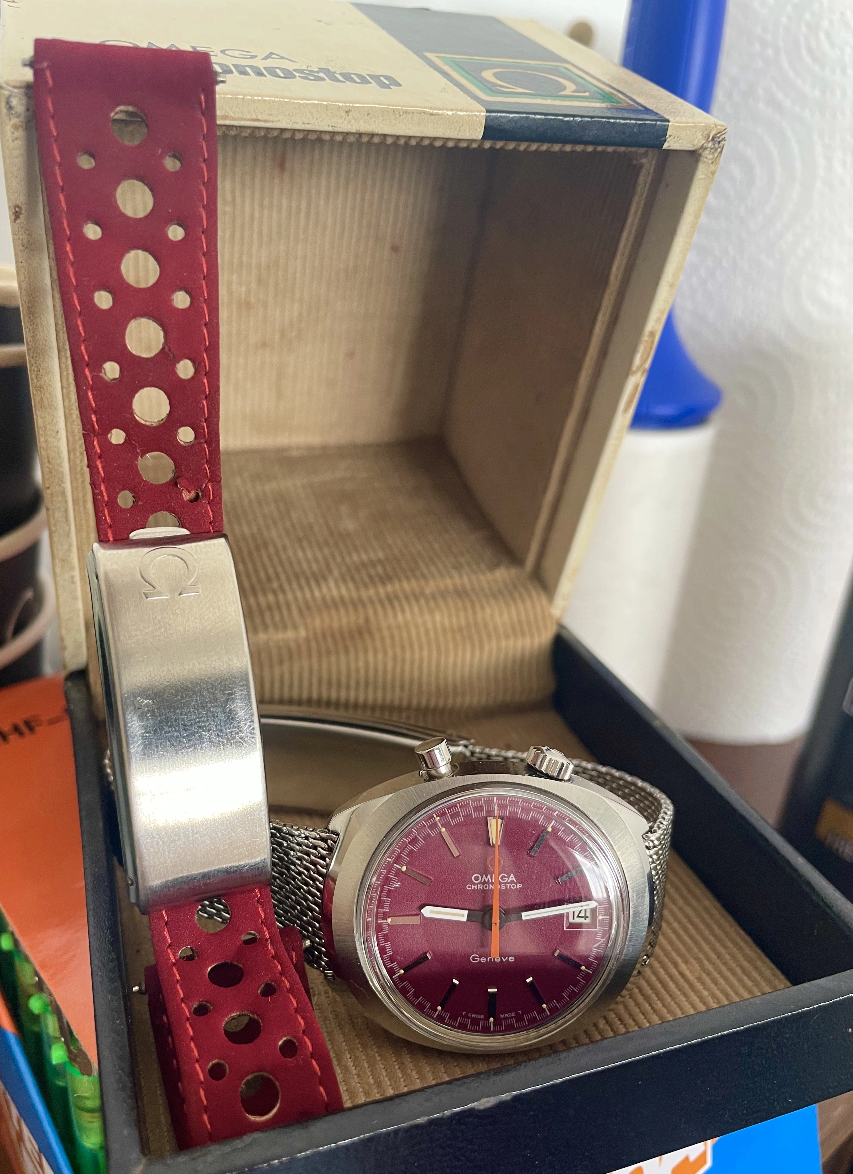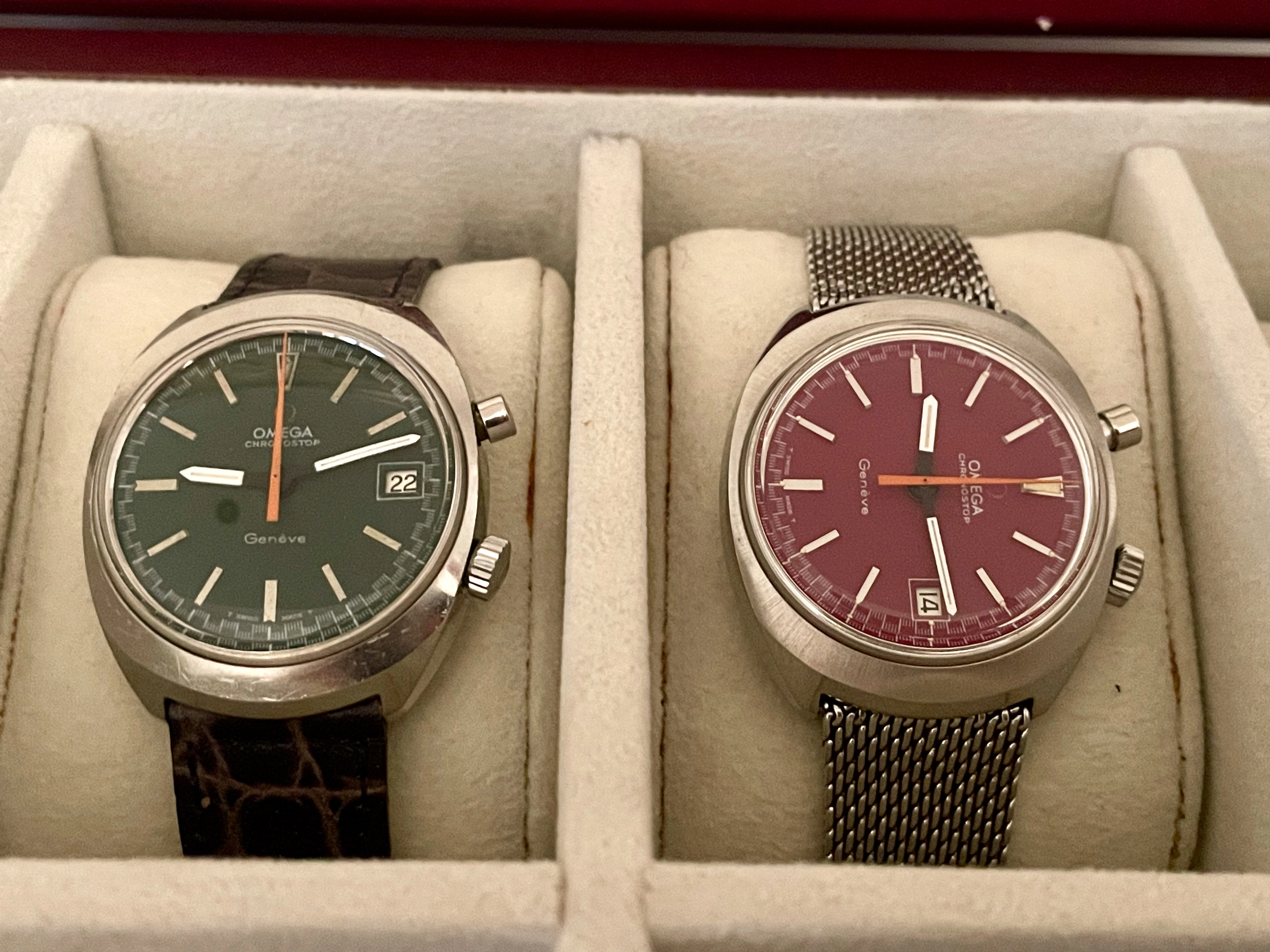 I have an almost mint Chronostop 145.010 with a red dial which came with its original strap - red suede rally style and i really like it's design .