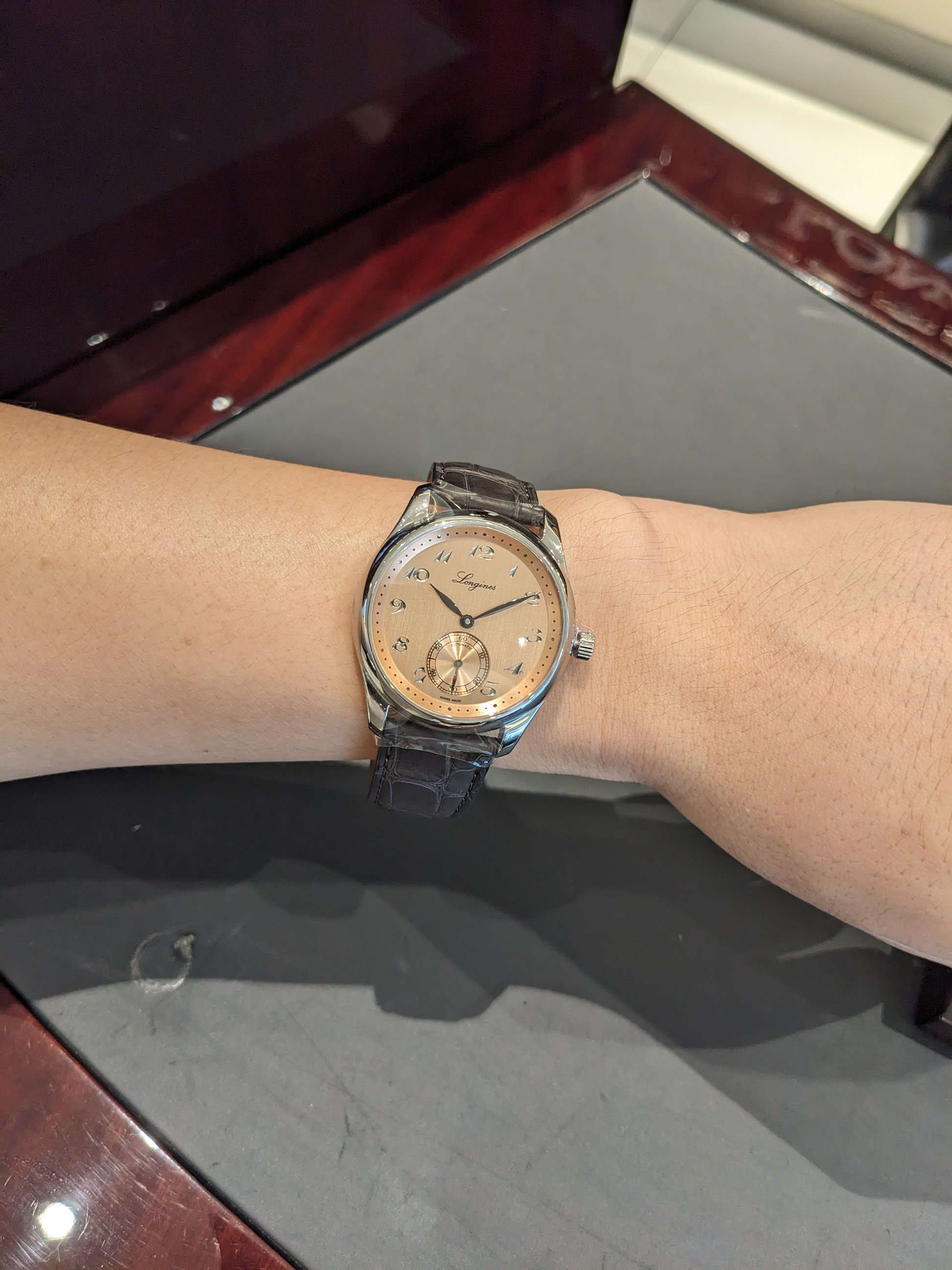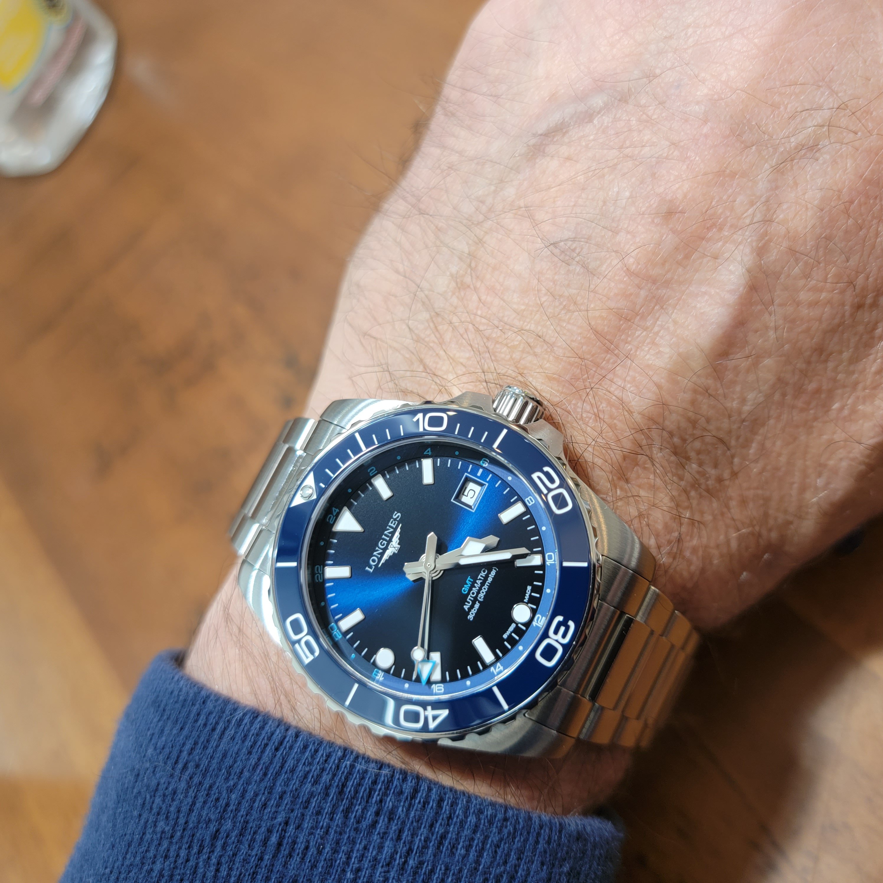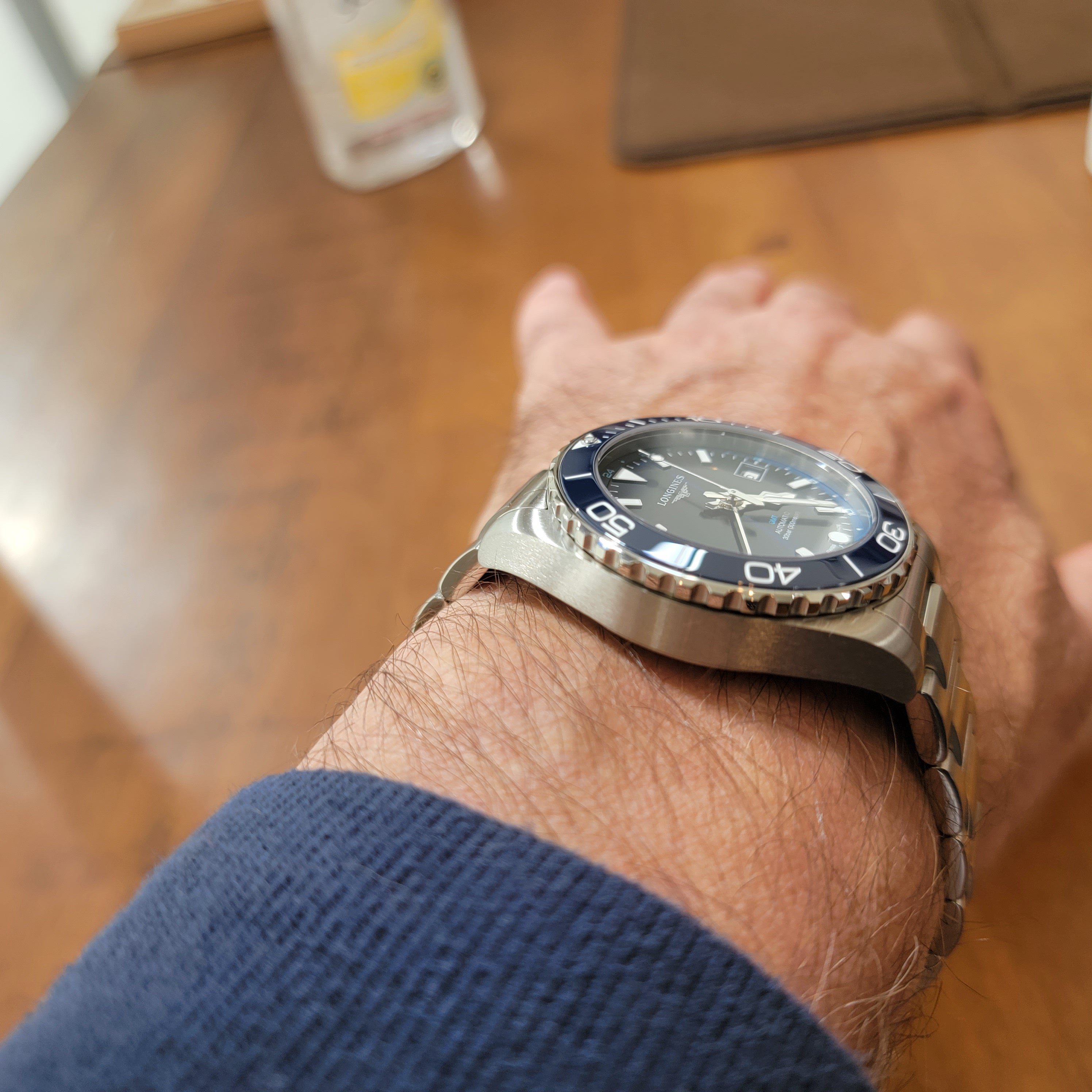 Longines changed a lot in this, which tends to support the idea that the company is not stuck to its conservative past. Besides the dial and the hour markers, the lugs are more curved. I haven't tried one on yet but I am hoping the case is not so long across the wrist. It's also relatively slim for a GMT.