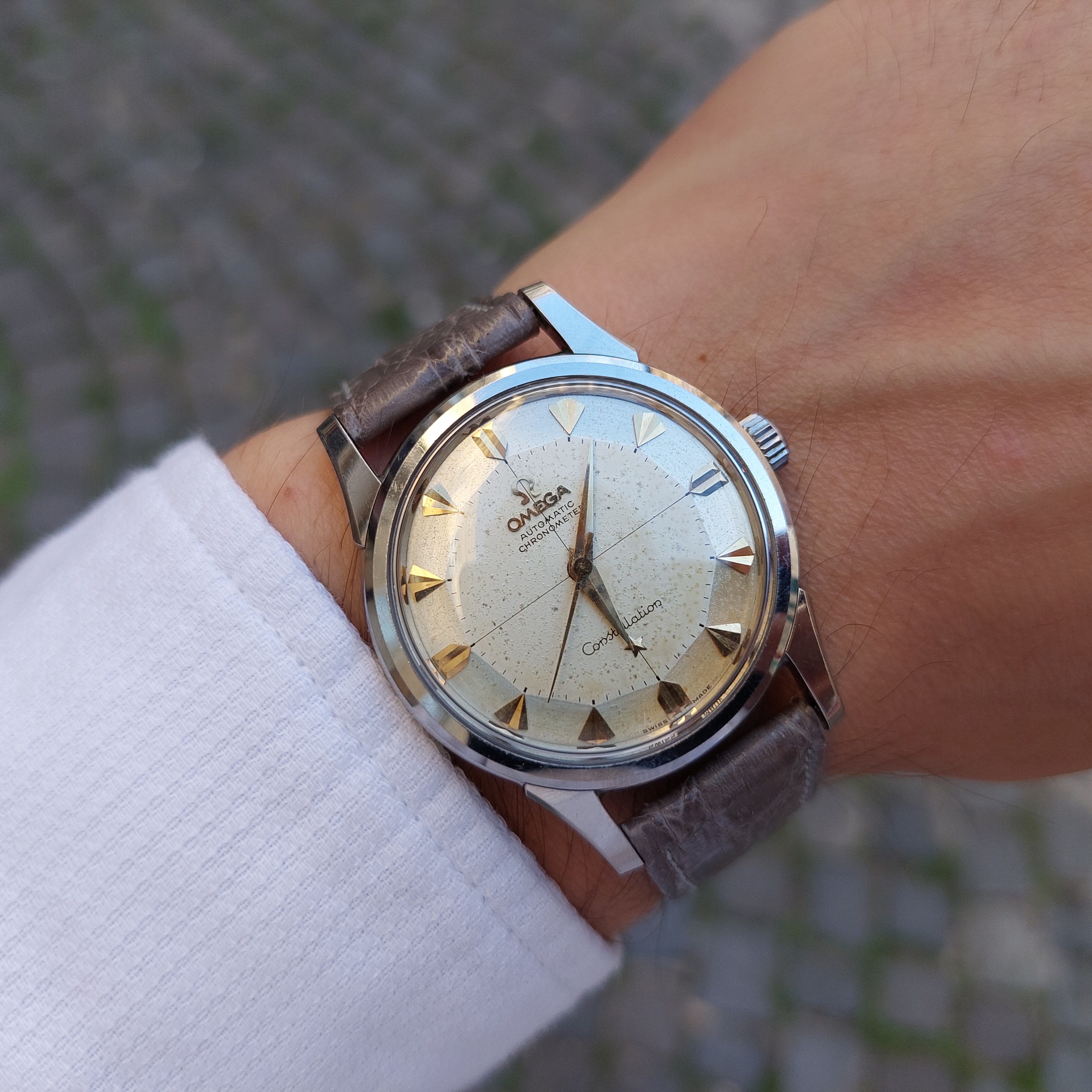 So I guess you may be right in that once adjusted for popular arrowhead dials etc, a direct comparison between later lyre lug Connies and early dog legs with the same dial type would result in a closer call.