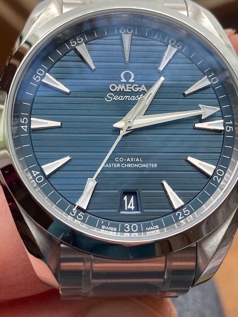 Following this thread and everything else I could find online relative to AT colors and size choices, I bought a BLUE 38 Aqua Terra on the bracelet last Friday morning. “We” also bought a ladies Aqua Terra, size 34, with a mother of pearl dial and diamond indices.