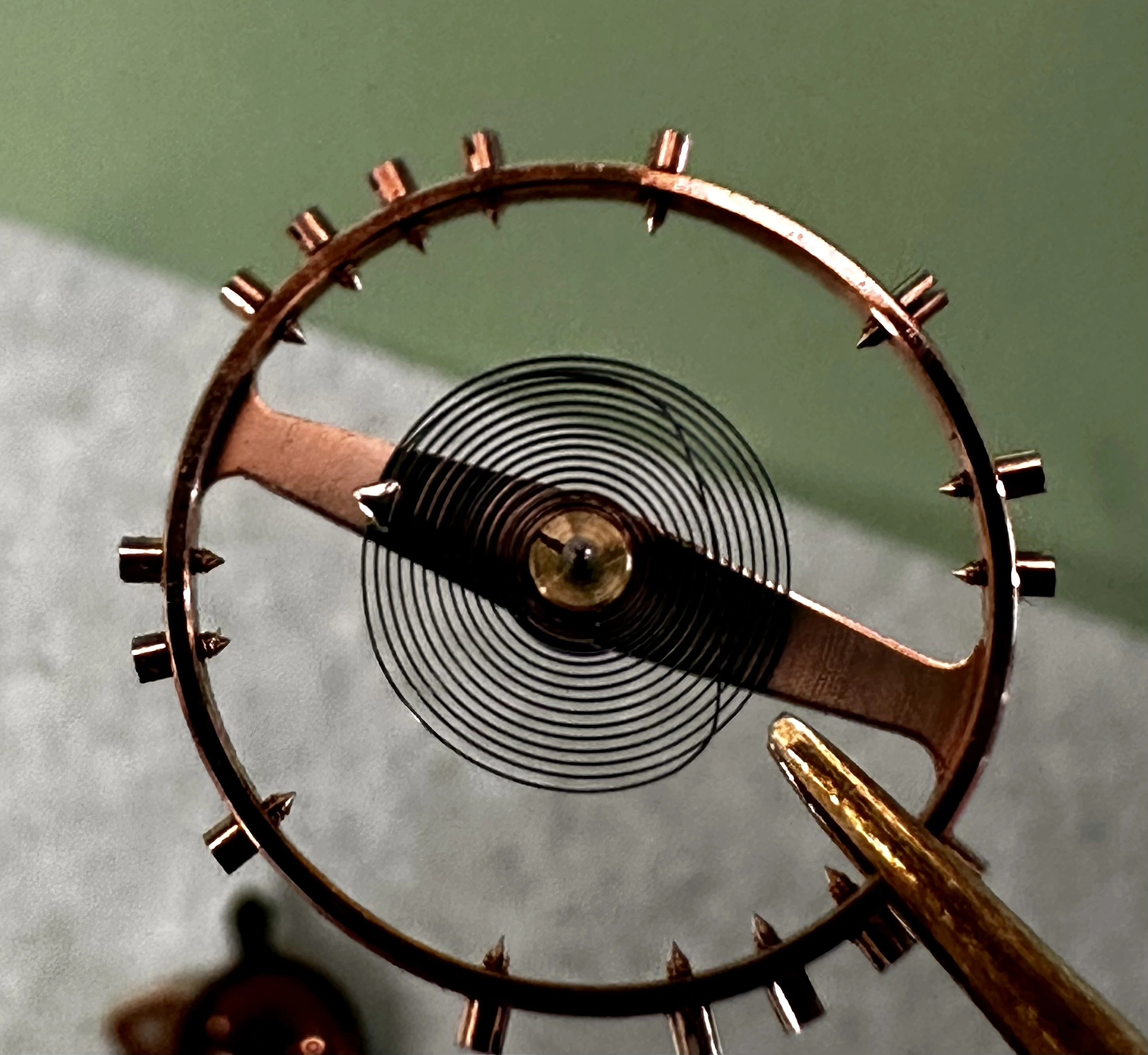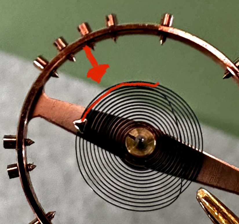 ·Having trouble sorting out this 30T2 PC. To start I’m a hobbiest. Narrowed down the problem to the hairspring (I think). Was a non-runner to start. Inspected and cleaned everything. The gear train is running smooth and the pallet snaps back and forth nicely. But when I install the balance it doesn’t want to run. Pivots are good. I’ve had it running just barely with hardly any amplitude and oiled it but I just barely turns over. The hairspring looks perfect when I have it off the balance cock. When installed it seems to foul. Looks off center and has the outmost coil touching the 2nd outermost coil. Almost looks like its dragging on the spokes of the balance wheel. I’ve cleaned the balance in lighter fluid twice and demagnetized it. Any ideas?