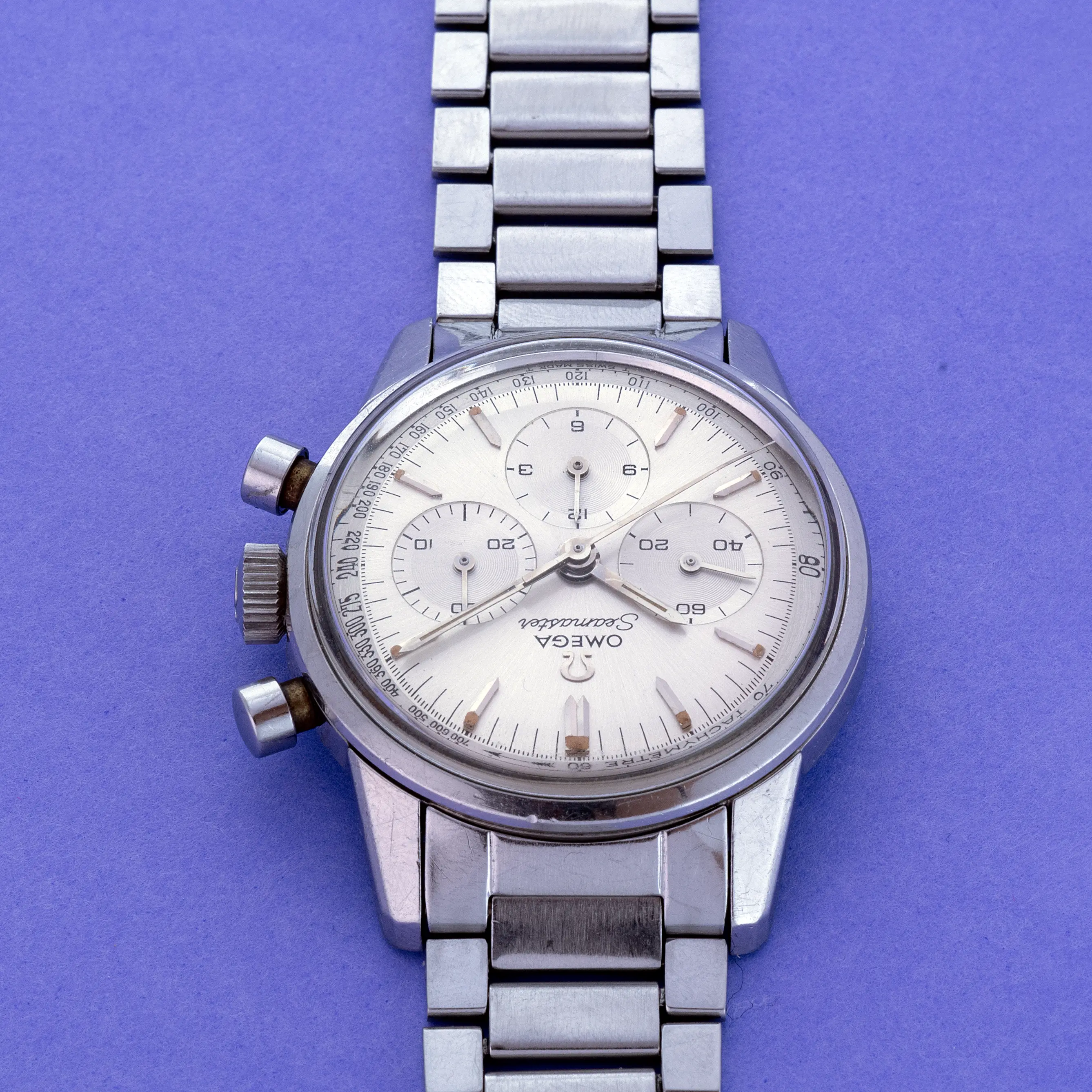 - Original crown, crystal, and pushers