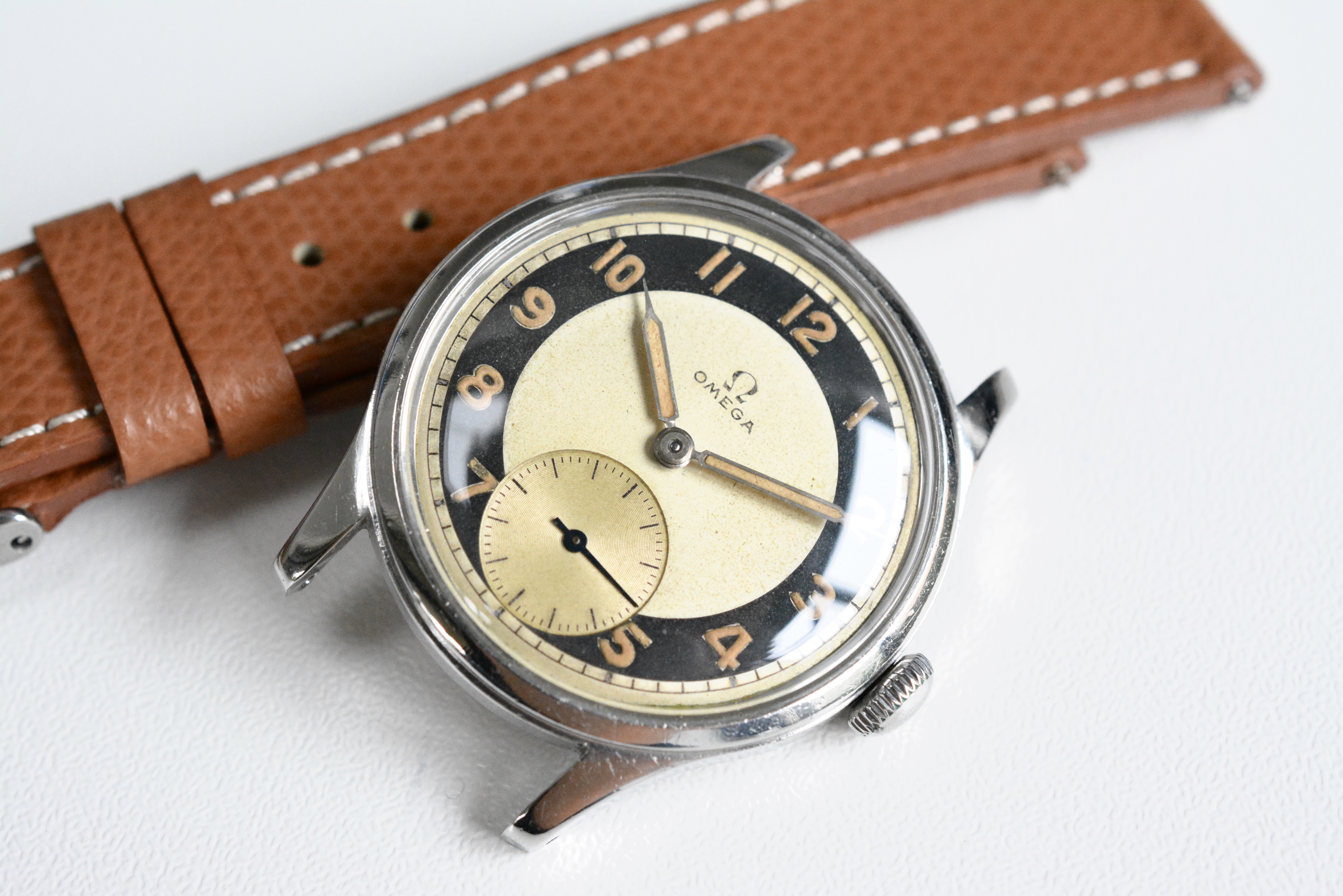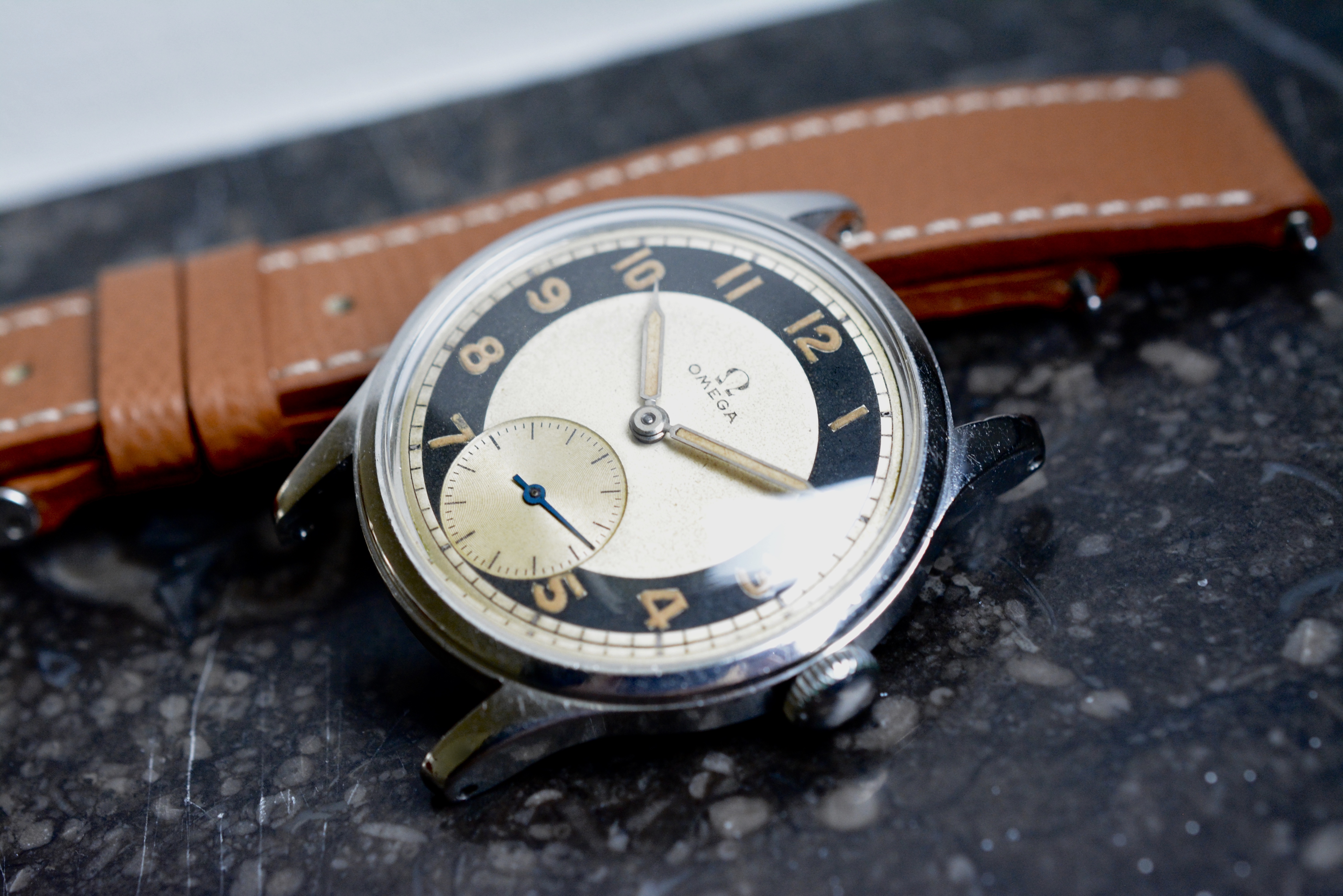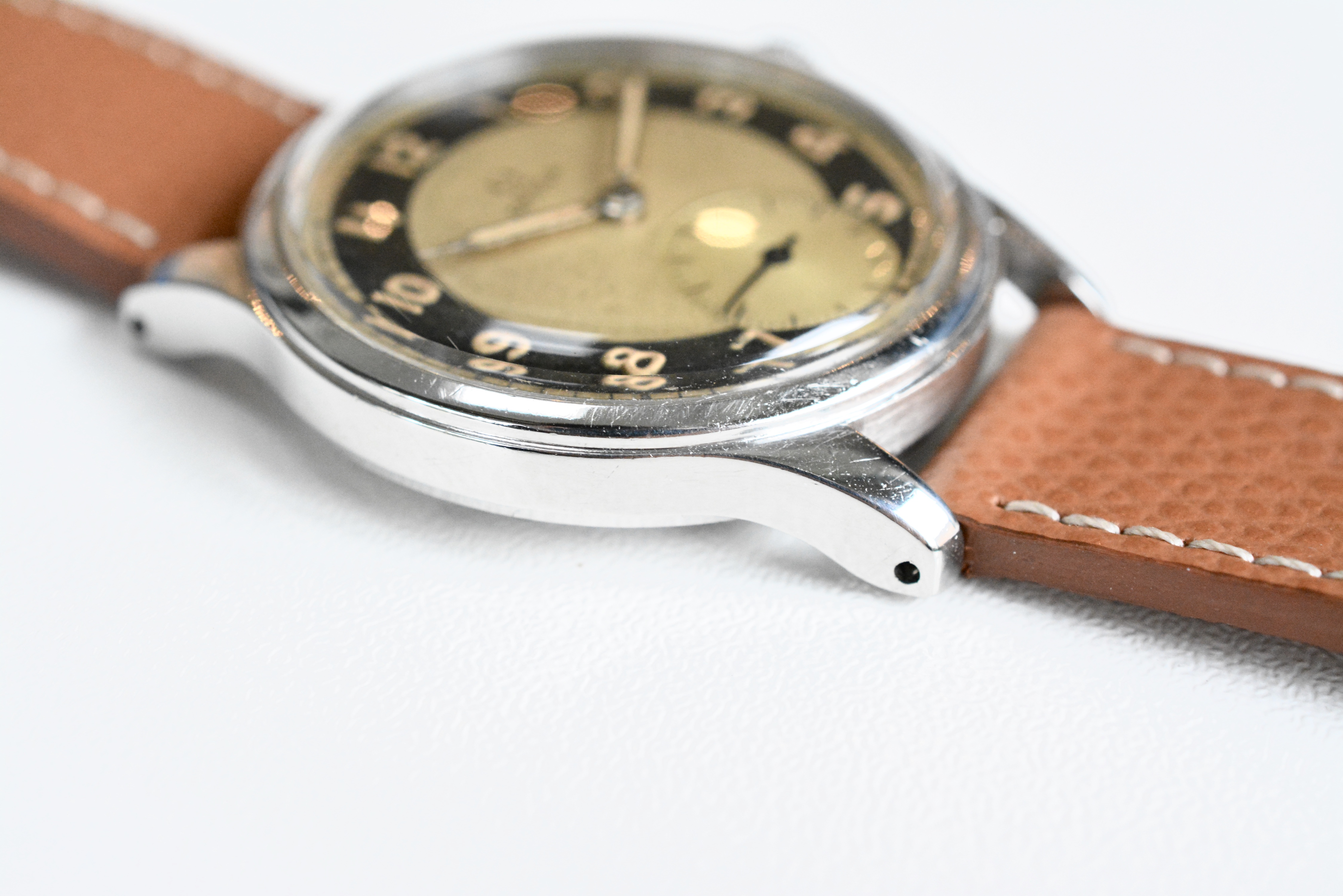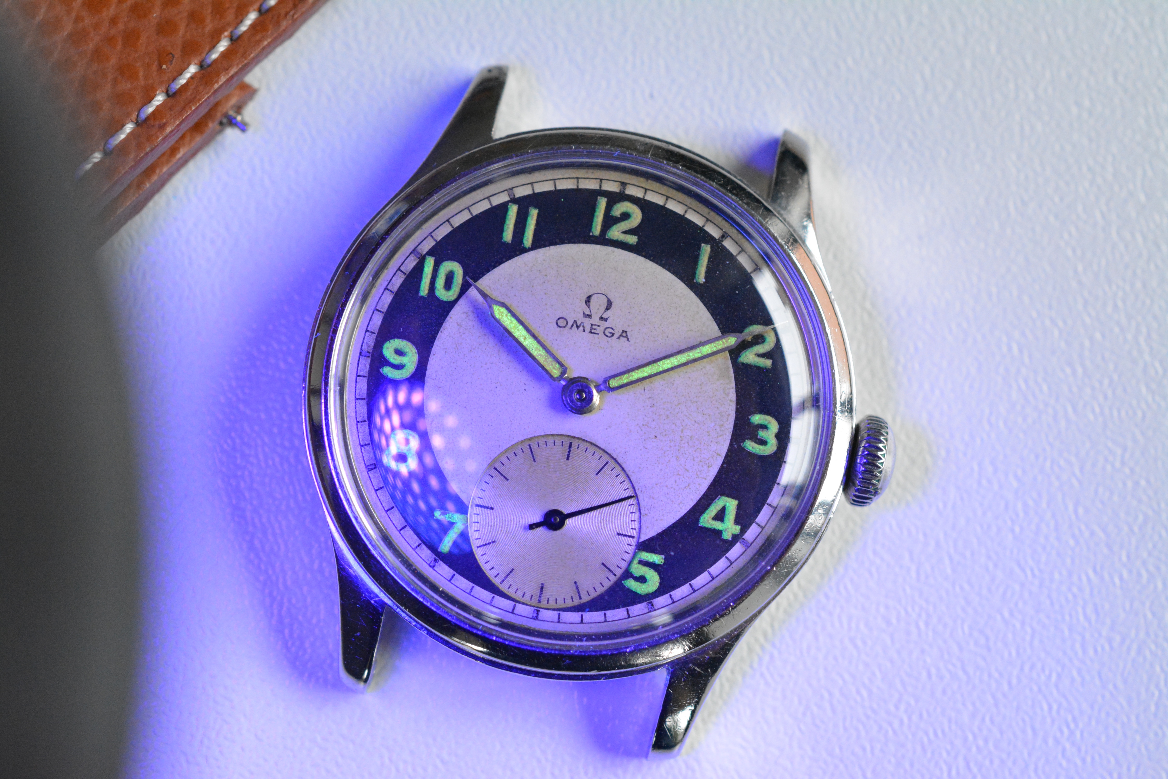 The bullseye dial is in stunning condition with a very nice and even patina. Same goes for the color of the hands and indices. I included a picture taken under UV. As said this dial version is certainly the most sought after. So it's not only very rare but also very collectible.