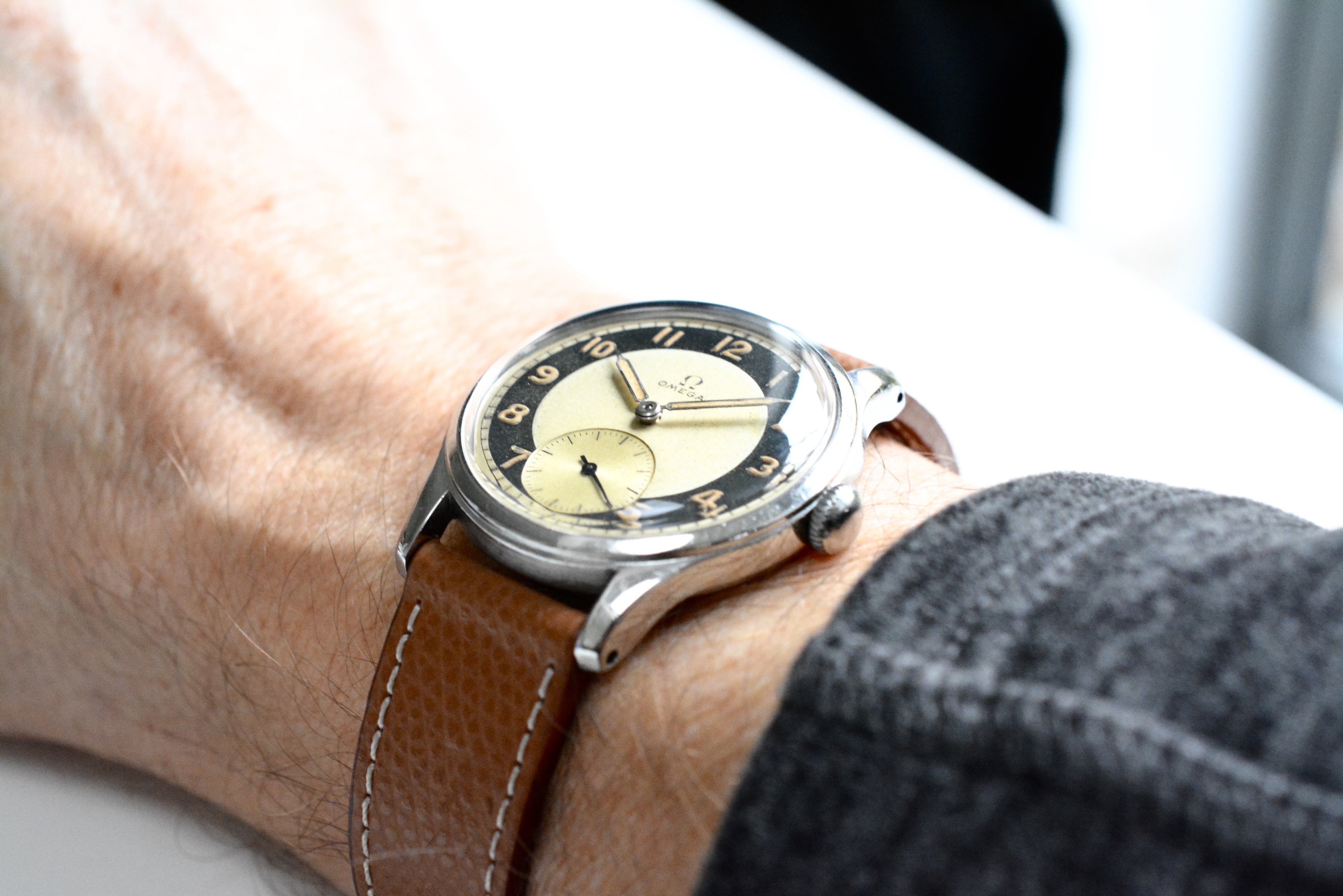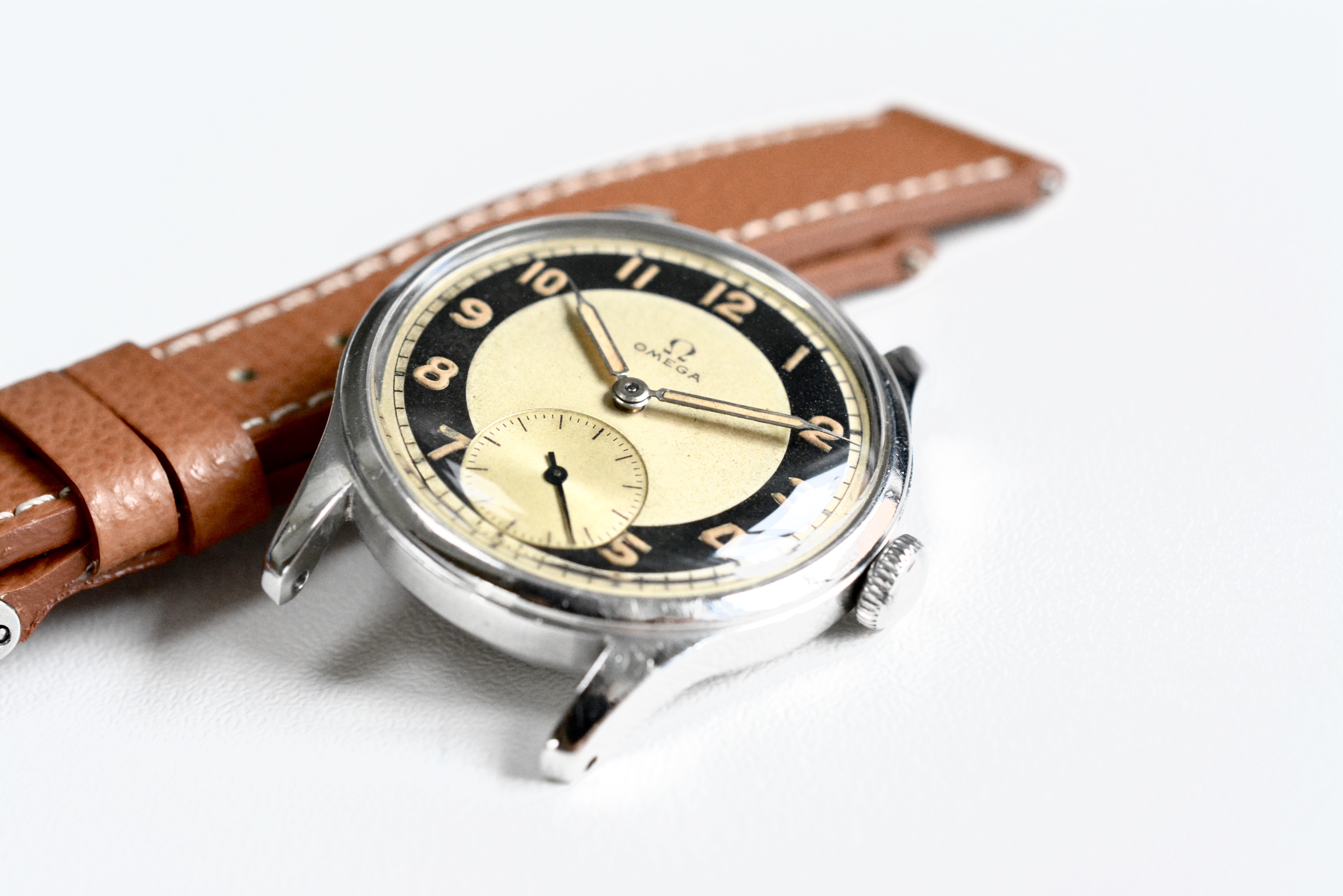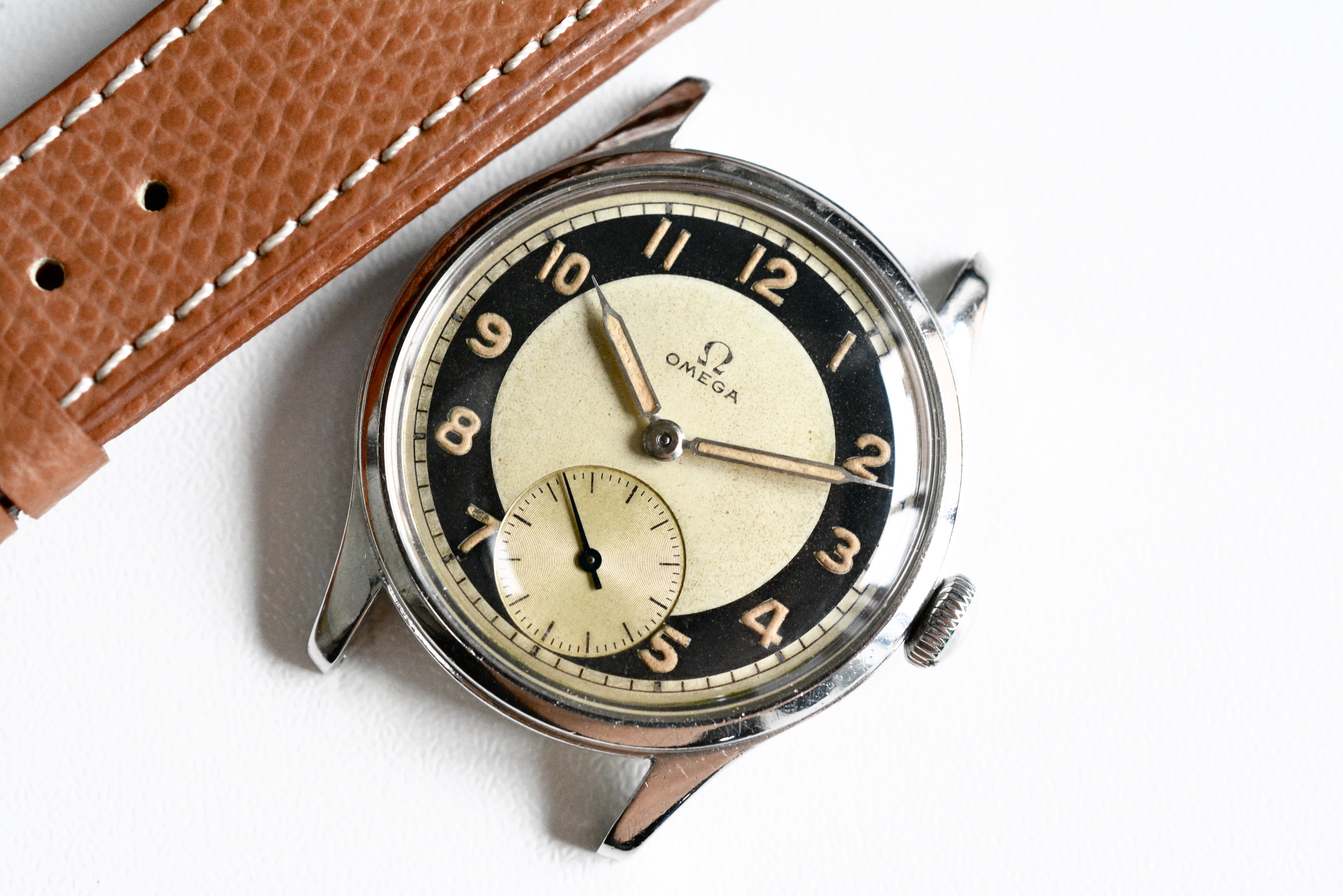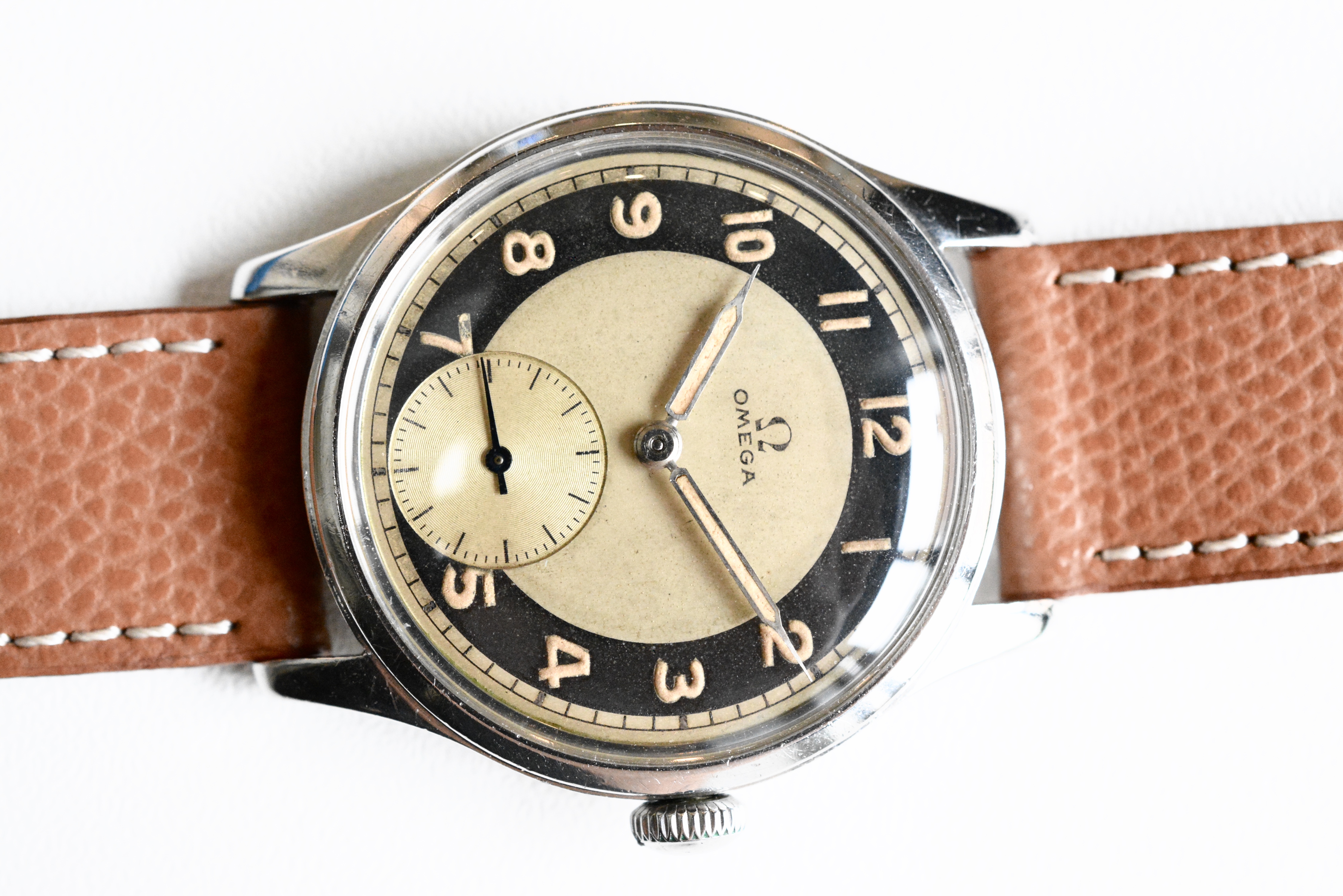 The bullseye dial is in stunning condition with a very nice and even patina. Same goes for the color of the hands and indices. I included a picture taken under UV. As said this dial version is certainly the most sought after. So it's not only very rare but also very collectible.