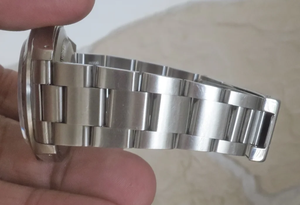 Il bracciale ha dodici maglie, ma ne ho tolte dovute per adattarlo al mio polso. 脠 un po' largo, ma credo sia normale per un orologio di ventisei anni.